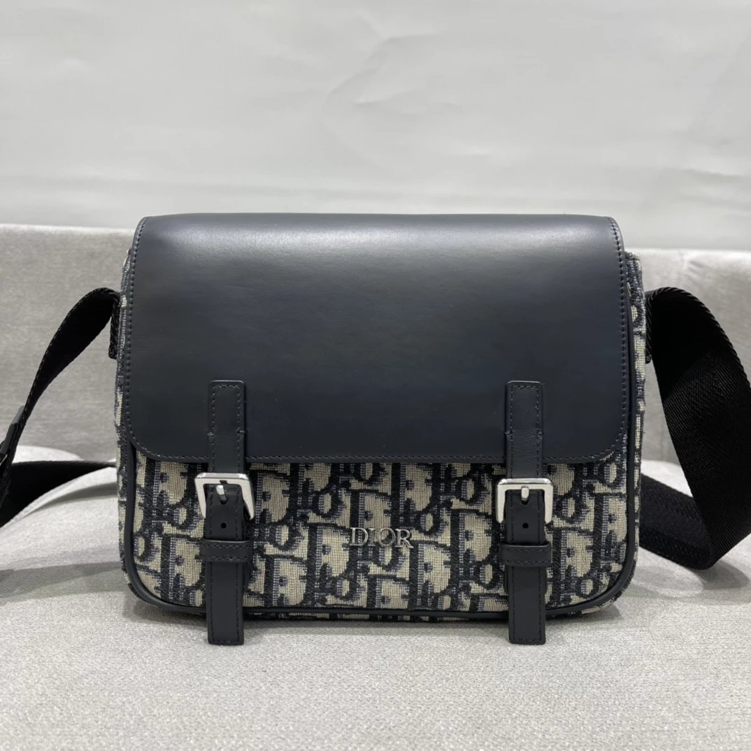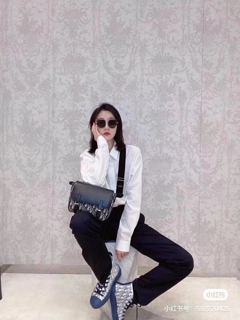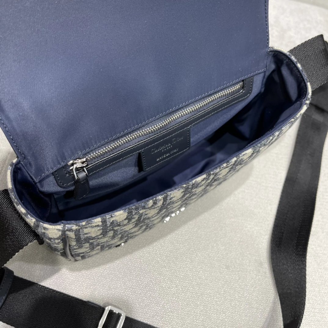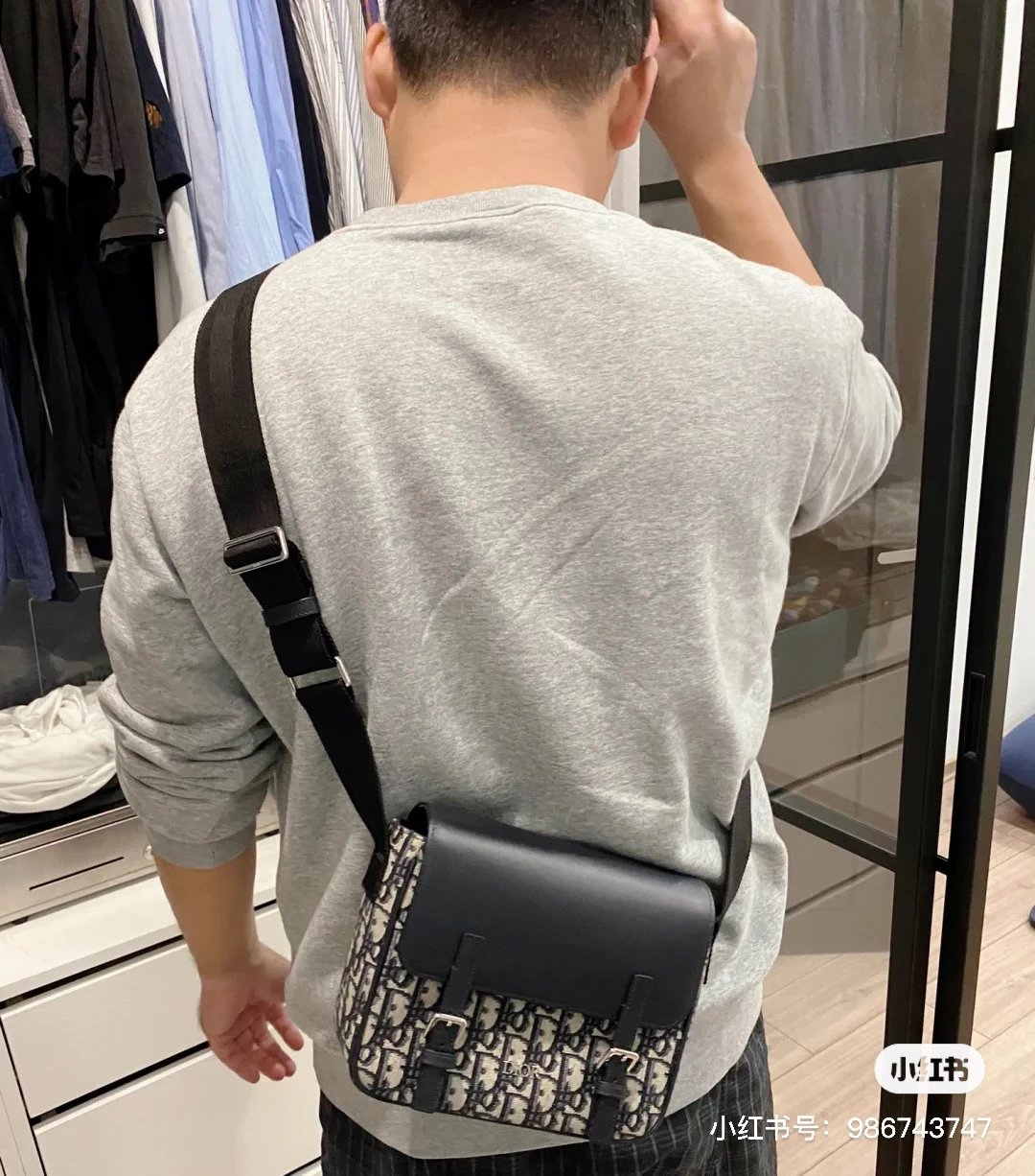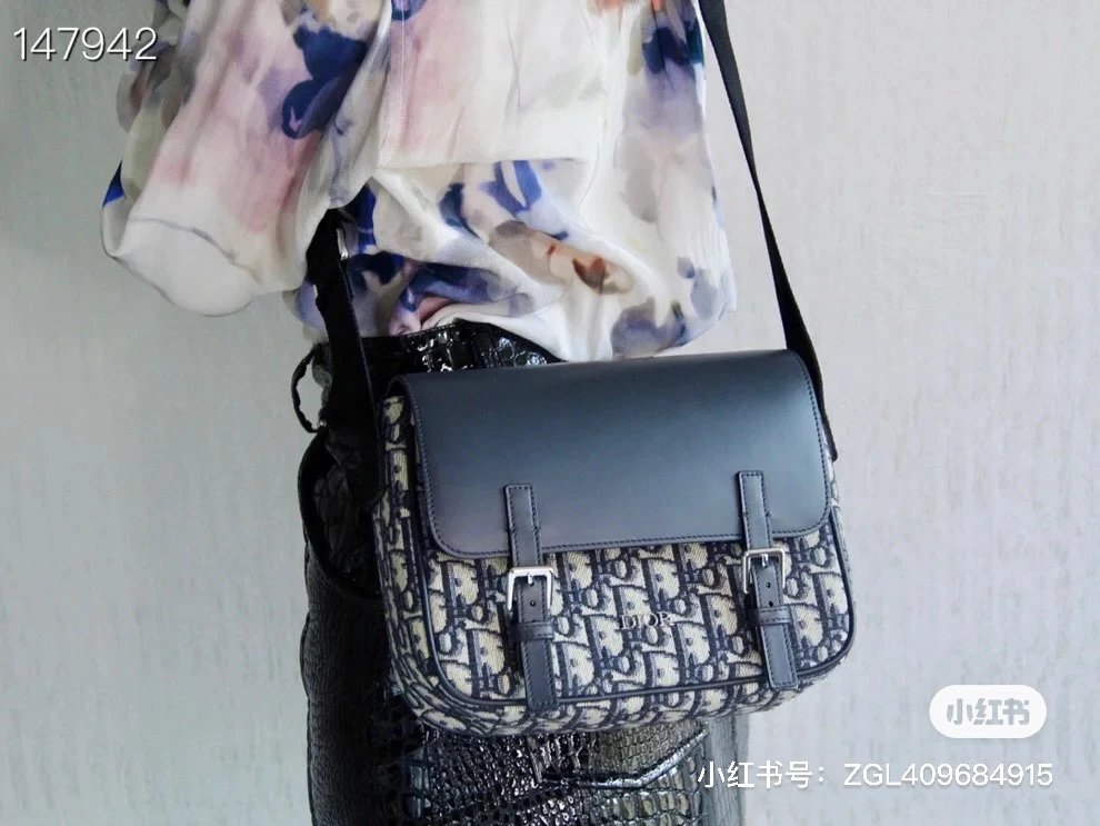D1or 这款信使包可甜可盐,男女同款。实用的手袋内部空间宽敞,设有小口袋,适合存放各种小件学习物品。蓝色 Oblique 印花帆布和牛皮革