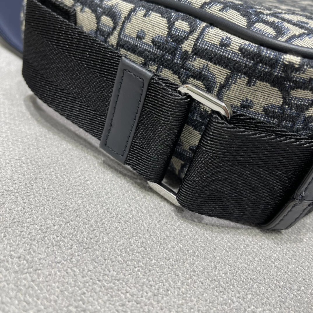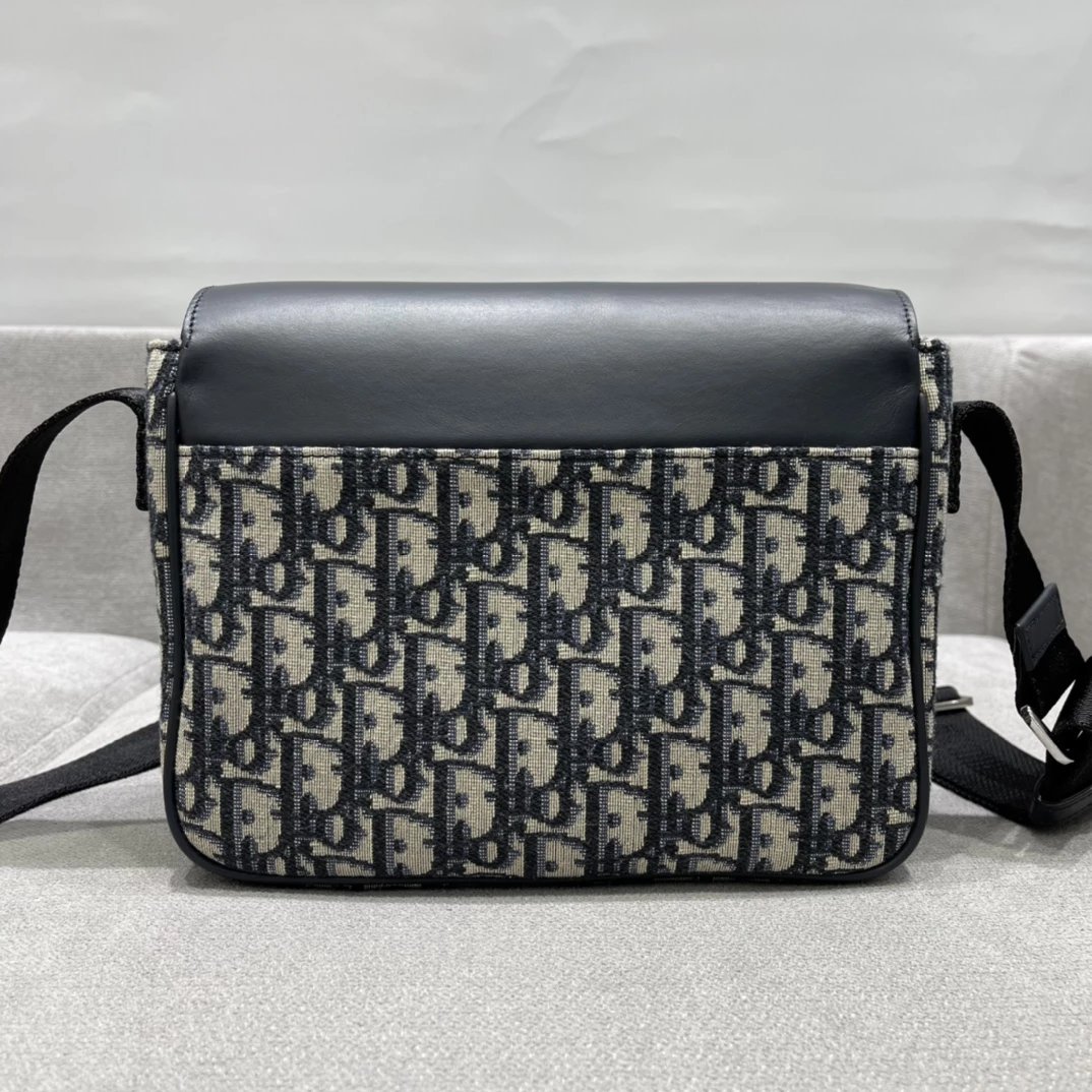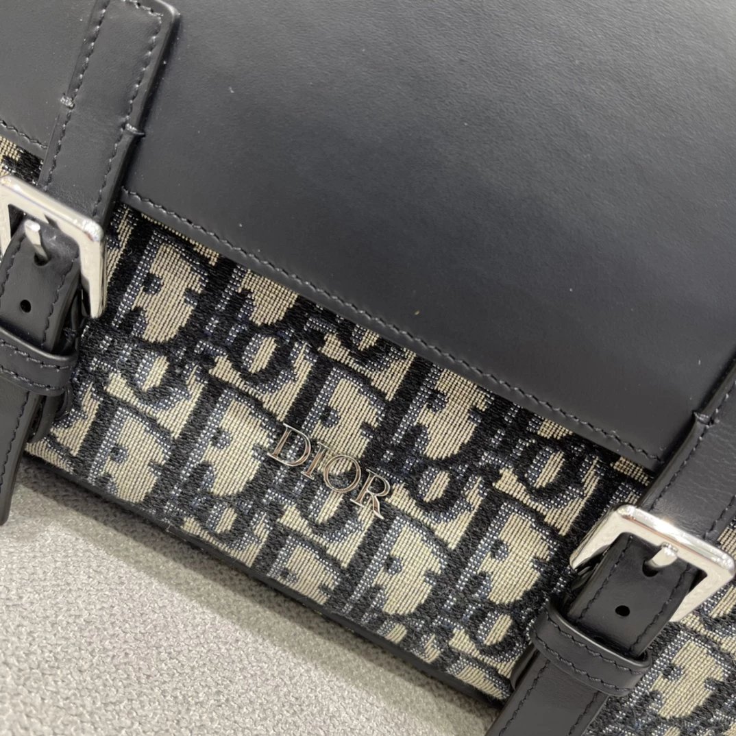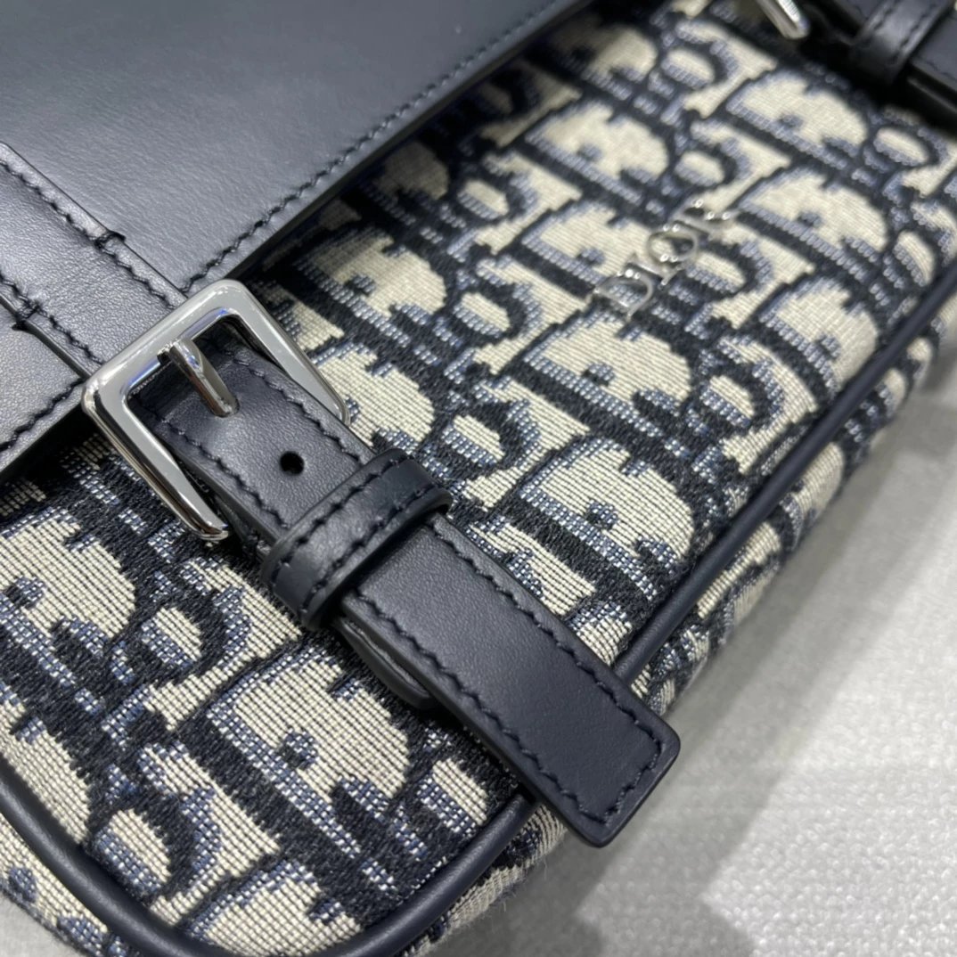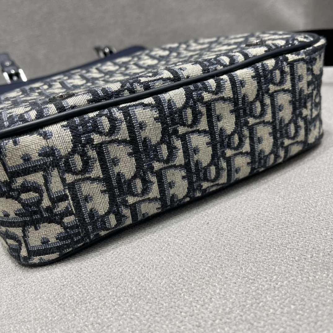 D1or 这款信使包可甜可盐,男女同款。实用的手袋内部空间宽敞,设有小口袋,适合存放各种小件学习物品。蓝色 Oblique 印花帆布和牛皮革