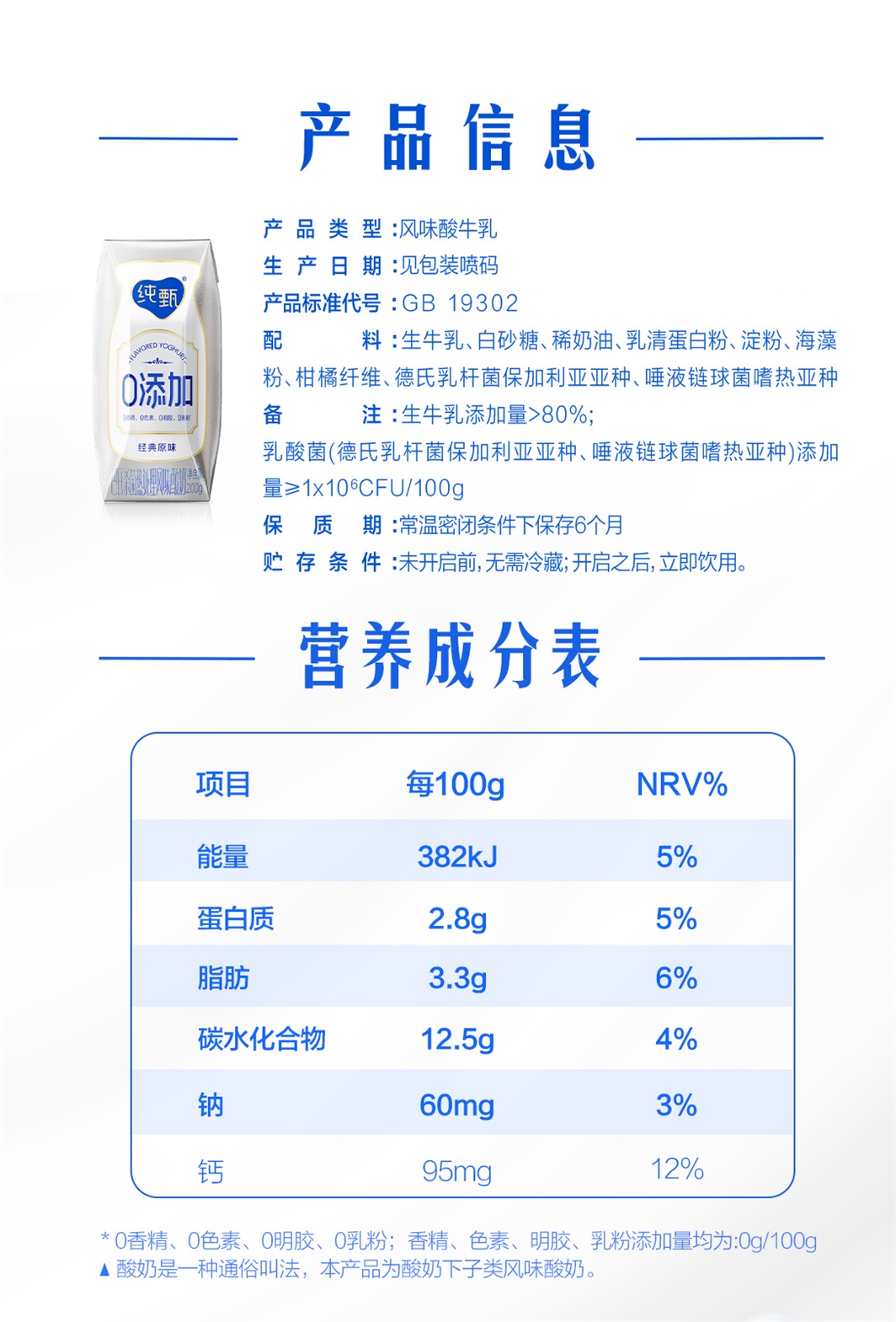 纯甄0添加原味风味酸牛乳利乐钻200g×10包