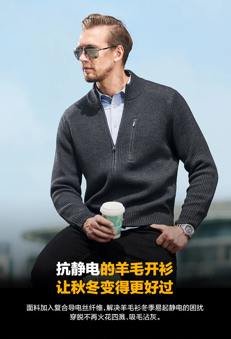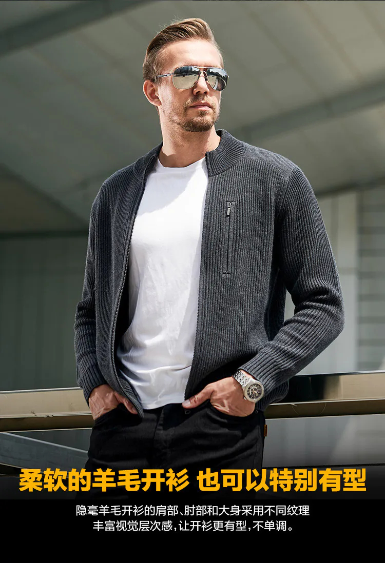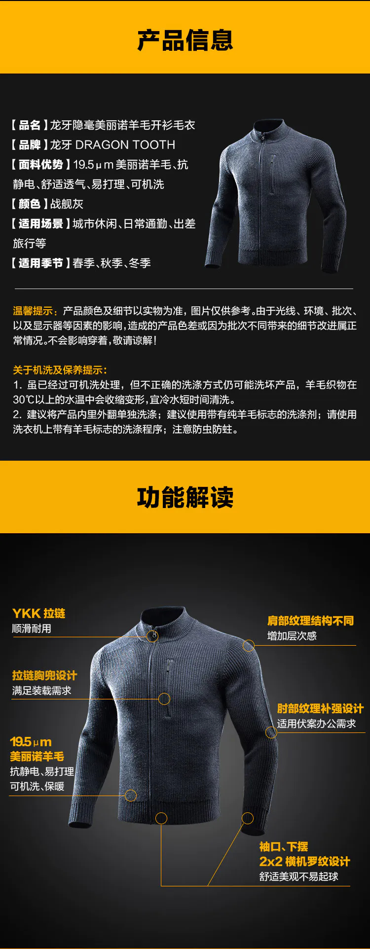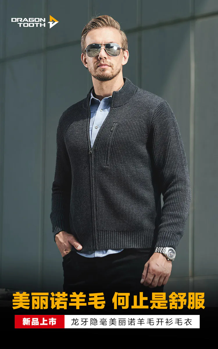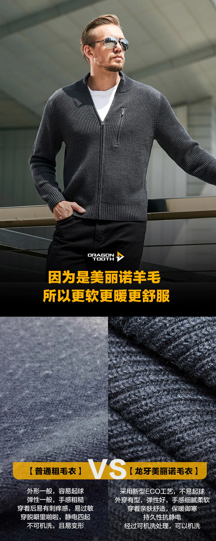 龙牙隐毫美丽诺羊毛开衫毛衣
