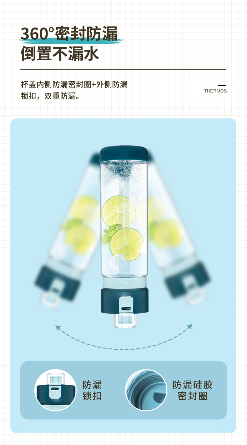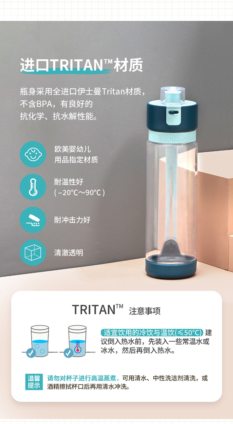 膳魔师(THERMOS)塑料杯水杯660毫升男女士Tritan时尚随行杯子 TSK2-660 AGR