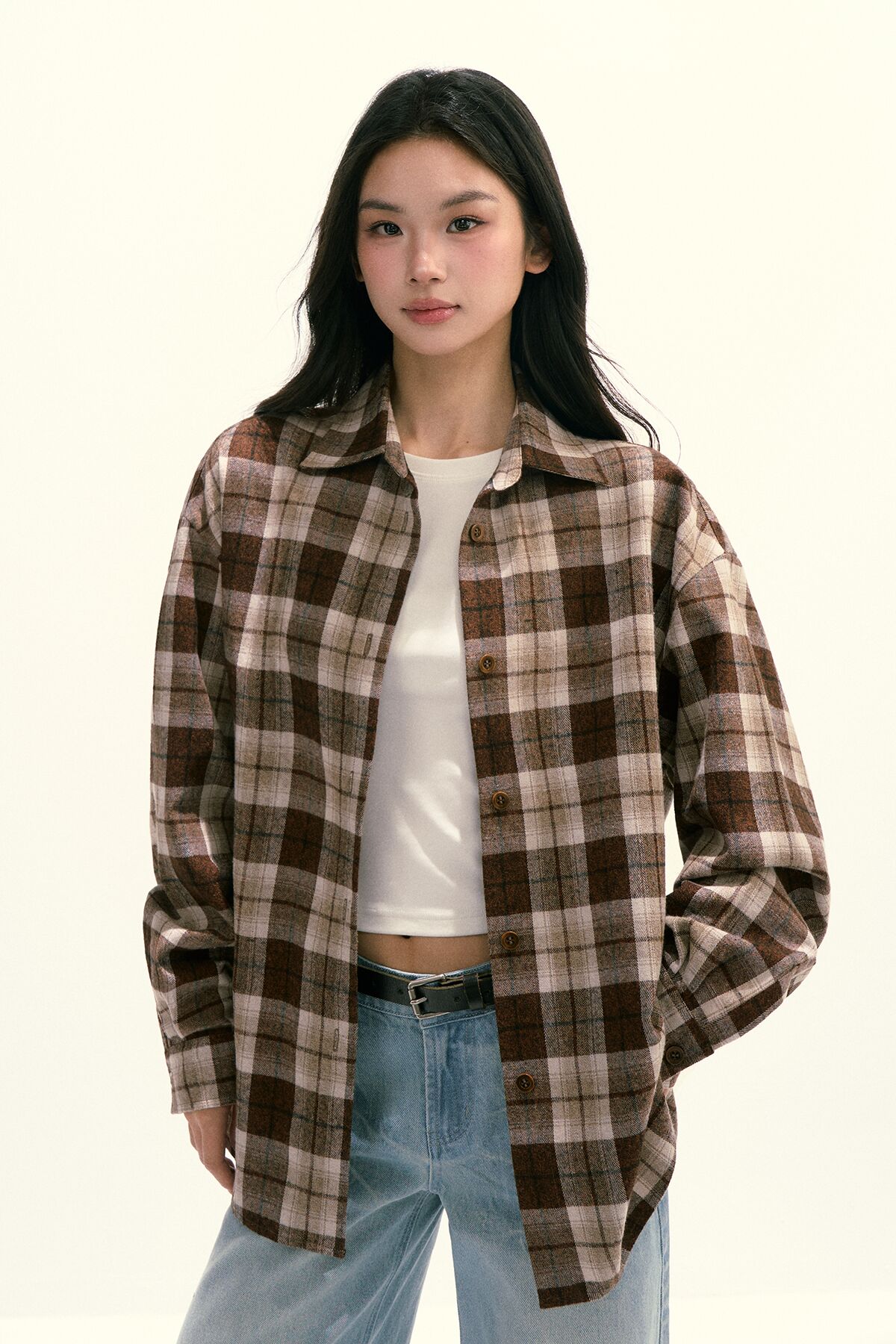 Ariseism 美式复古设计感宽松大格子衬衫女秋季新款长袖上衣
