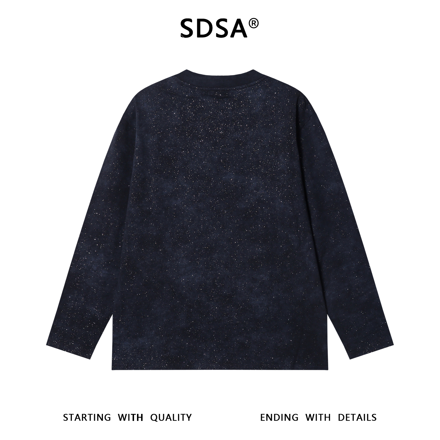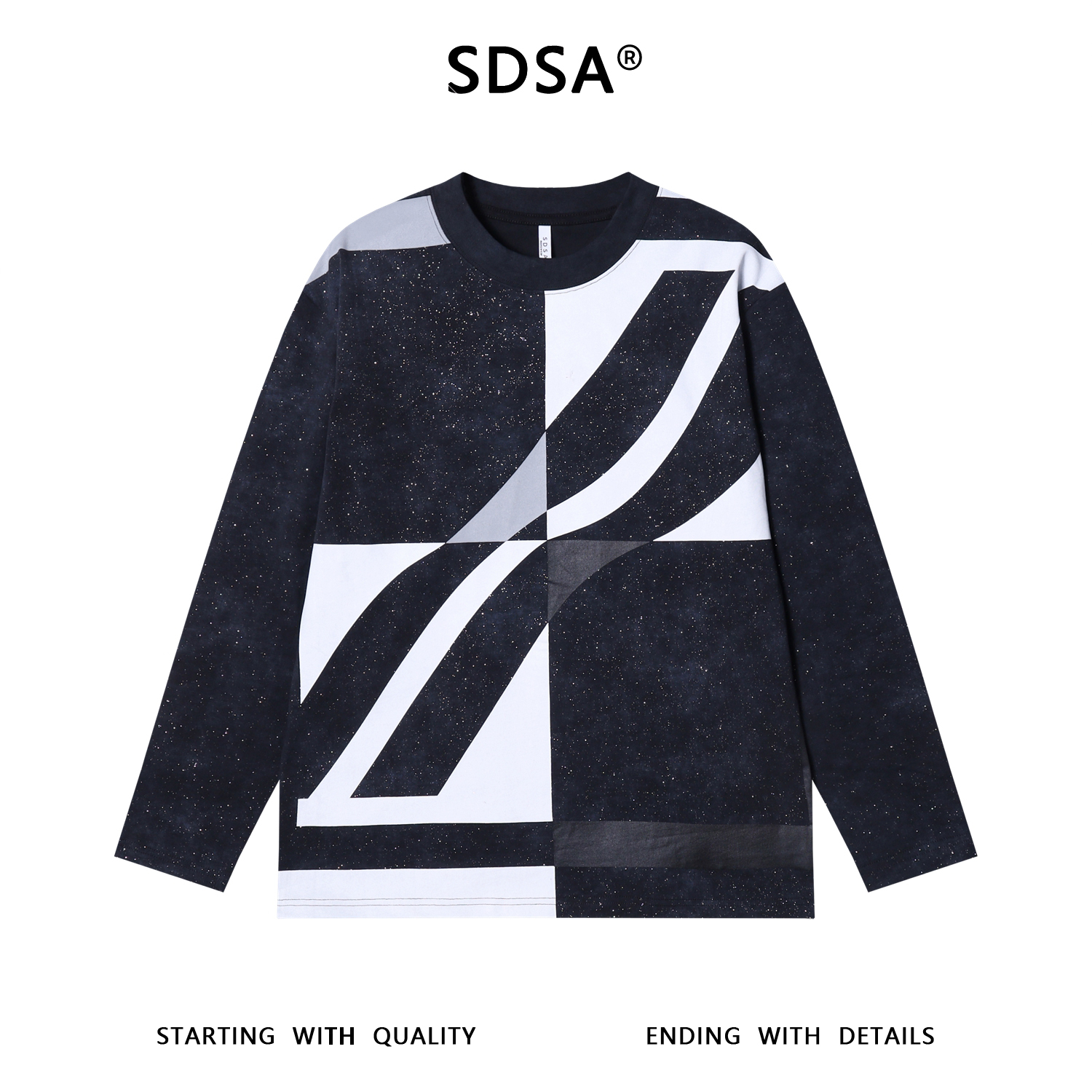 T4794秋季高级感新款男士潮牌满天星撞色拼接设计长袖T恤痞帅圆领上衣