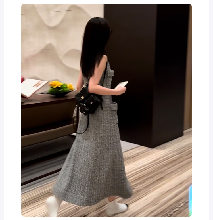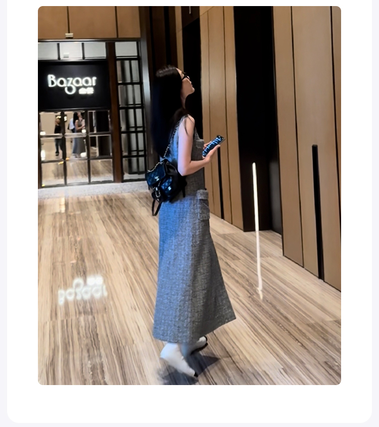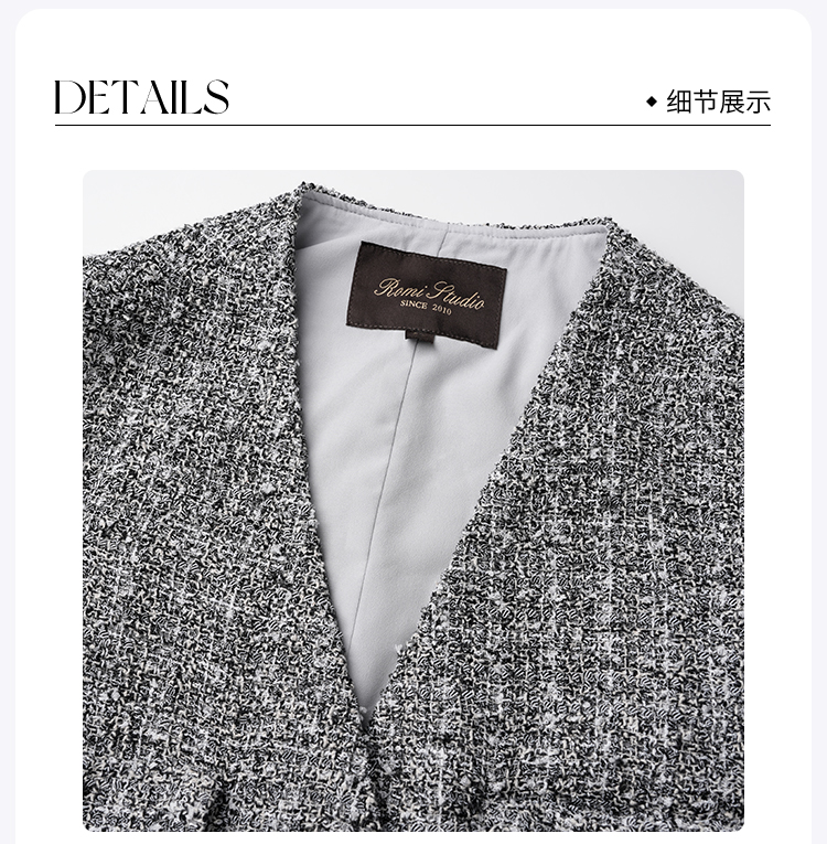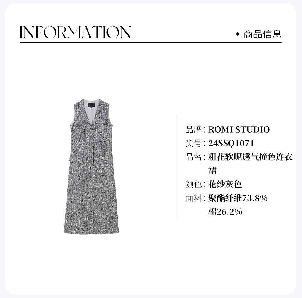 ROMI STUDIO“香榭丽舍”粗花软呢透气撞色交织无袖连衣裙24SSQ1071