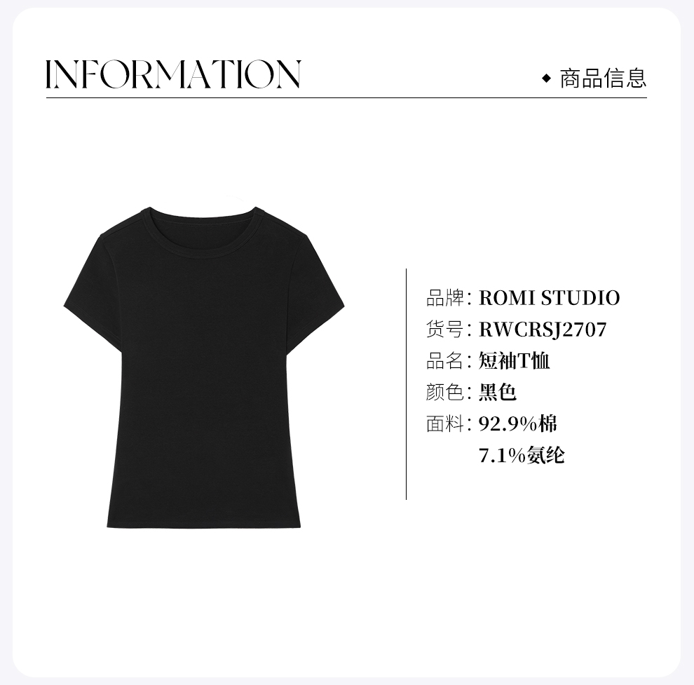ROMI STUDIO“简约随性”精梳赛锣棉弹力修身圆领短袖T恤RWCRSJ2707(现货)