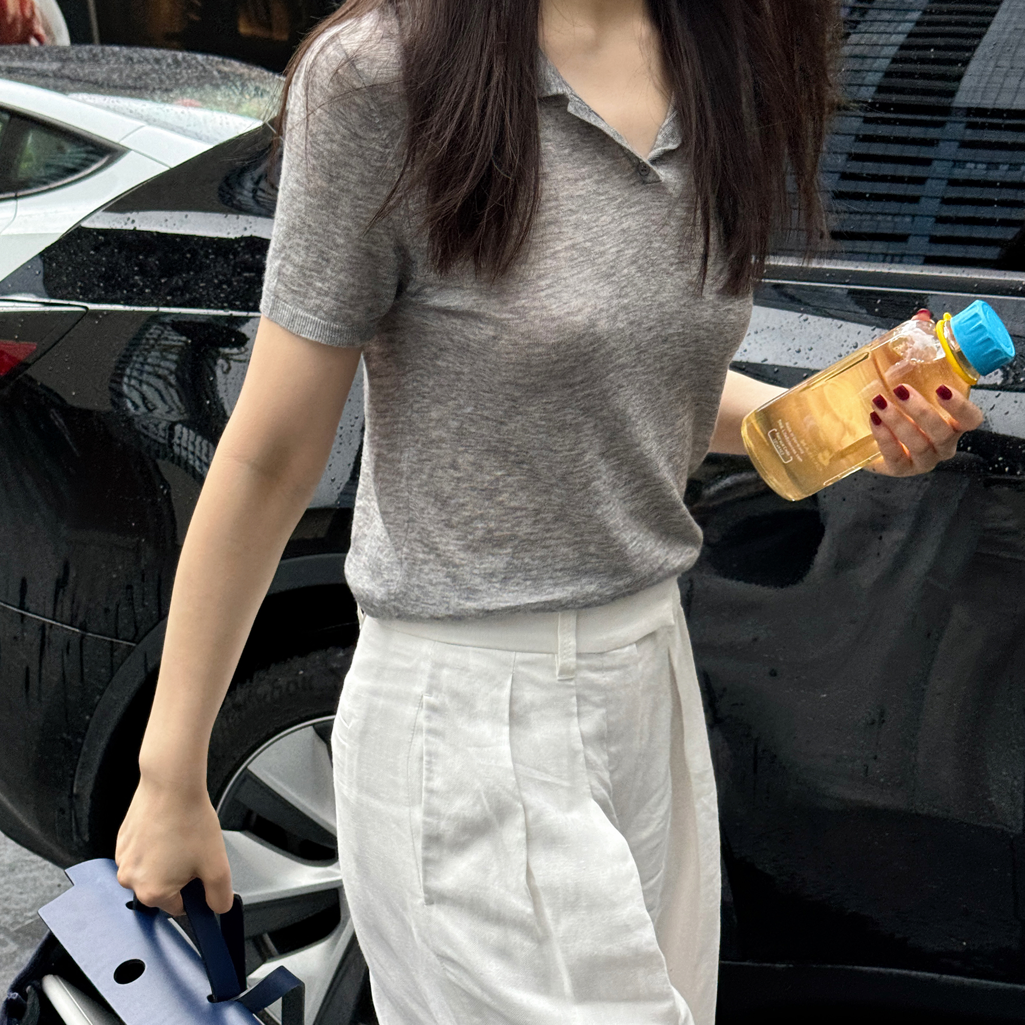 ROMI STUDIO“格雷高知”100%超细支水溶羊毛软糯Polo领T恤421T6102