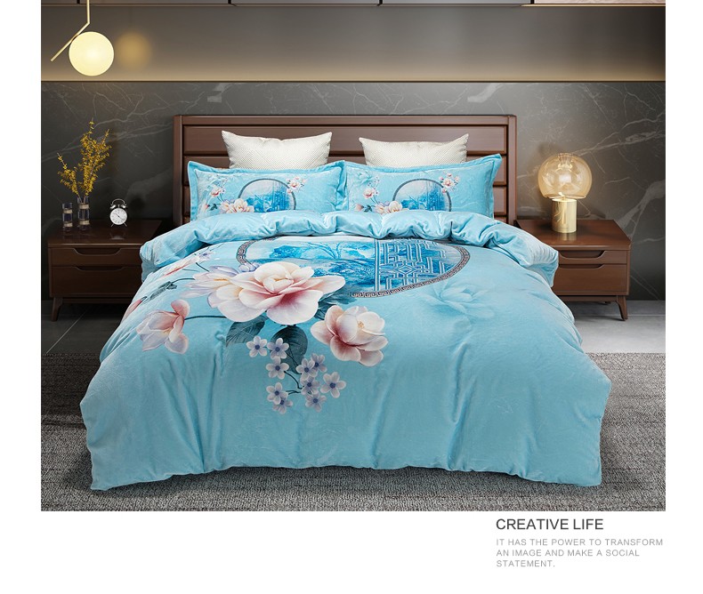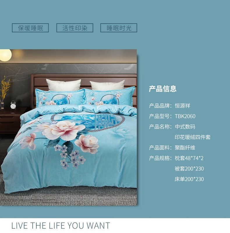 恒源祥礼业TBK2060中式数码印花暖绒四件套 中式数码印花暖绒四件套 200*230cm