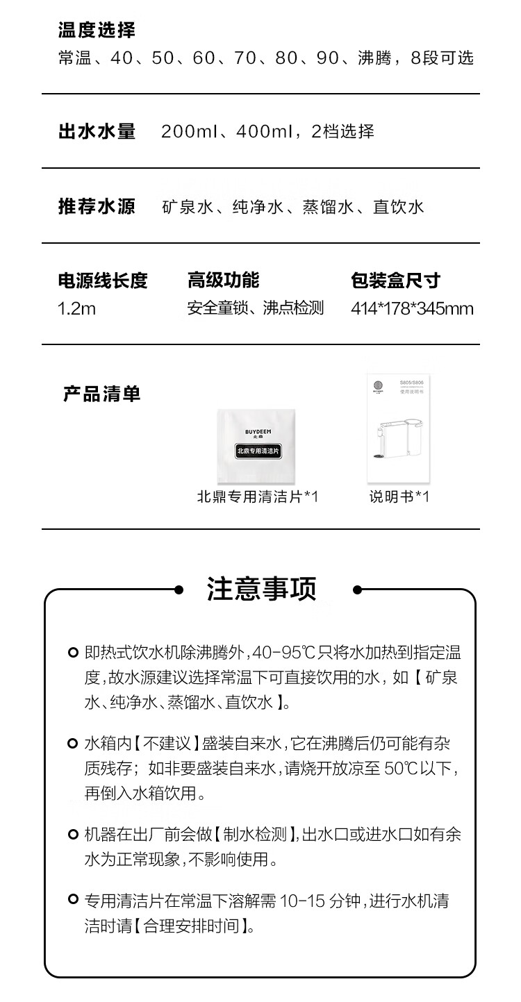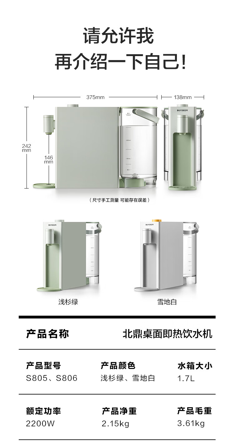 北鼎(Buydeem)即热式饮水机办公室桌面速热饮水器家用小型智能迷你泡茶机S805/S806