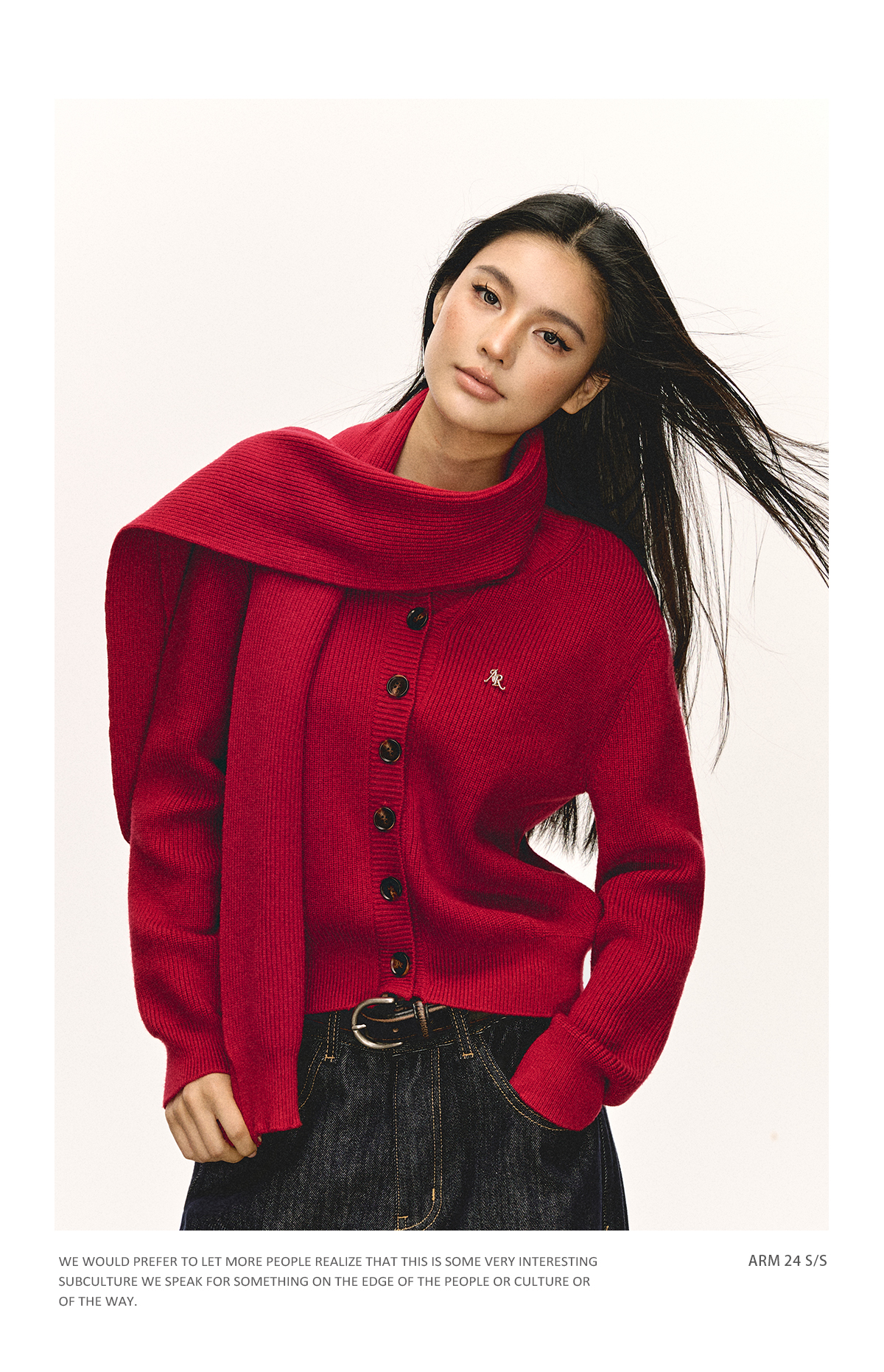 Ariseism 美式复古舒适宽松短款开衫毛衣女春秋新款红色上衣