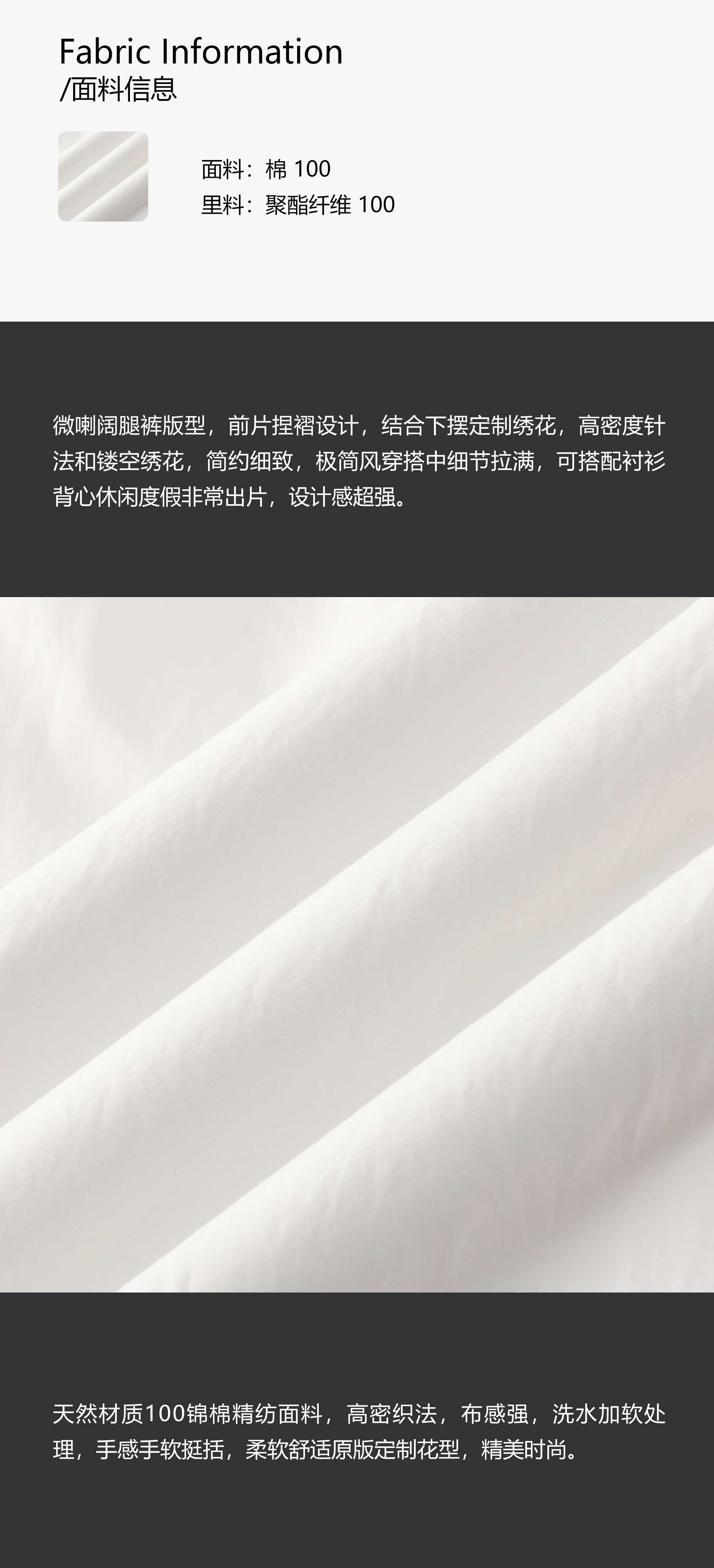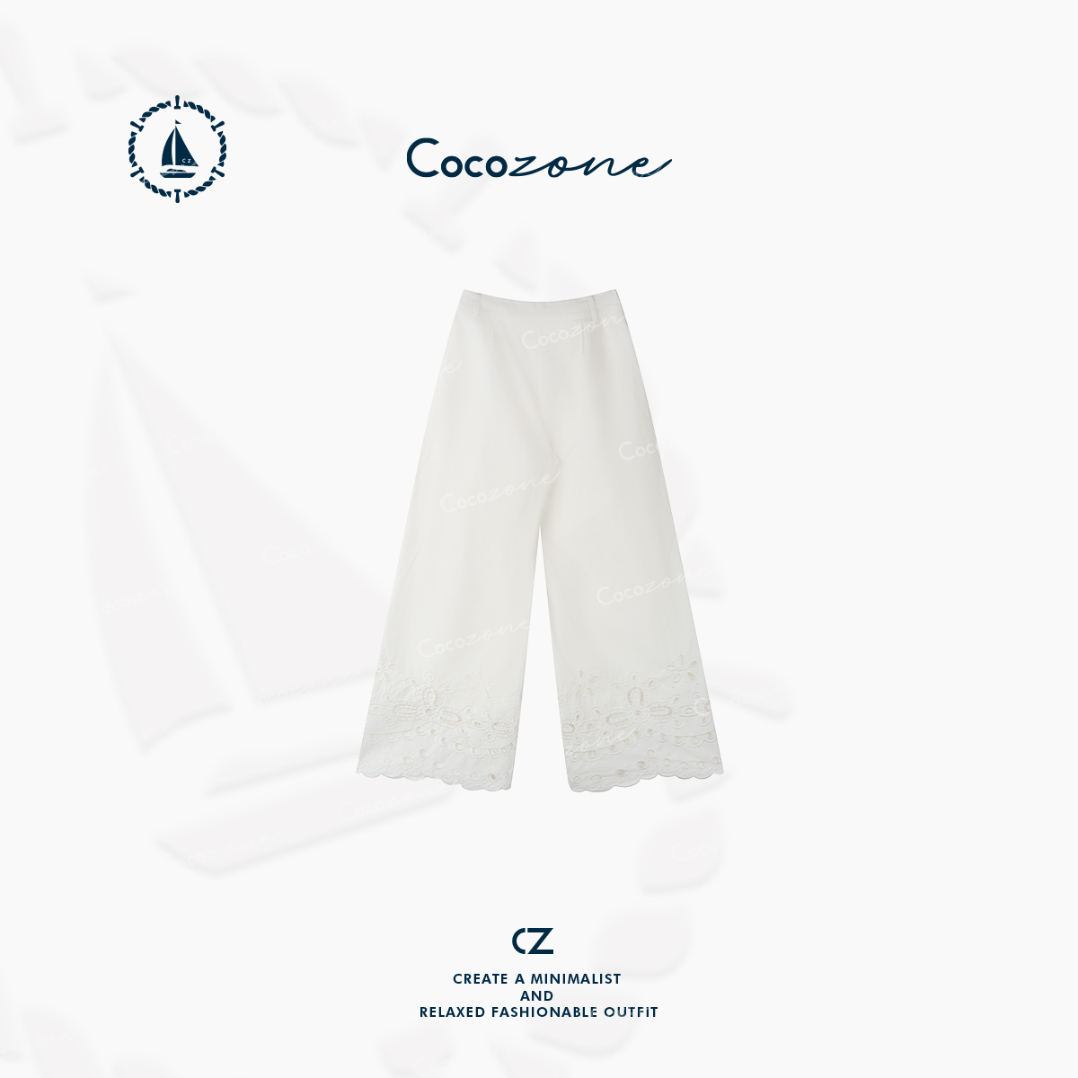 COCO ZONE 刘一一 100棉法式设计感镂空直筒休闲裤CD2A0276