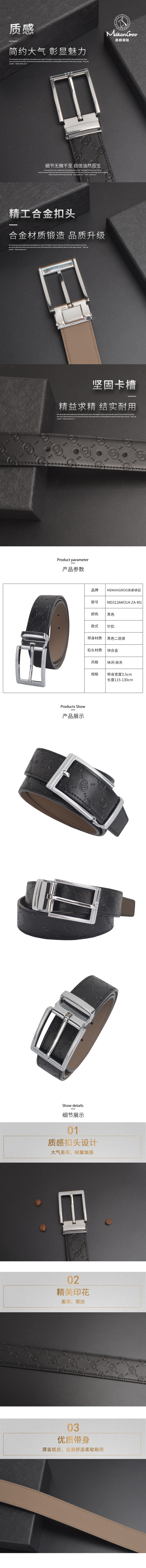 美都袋鼠/MDKANGROO时尚通勤百搭男士针扣皮带MD313AM314-ZA-M1