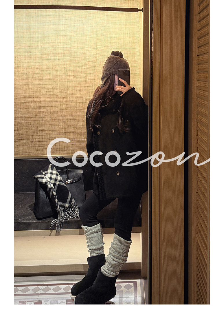 COCO ZONE 刘 一一 “暖暖”100羊毛立领双排扣外套 CD2A2707