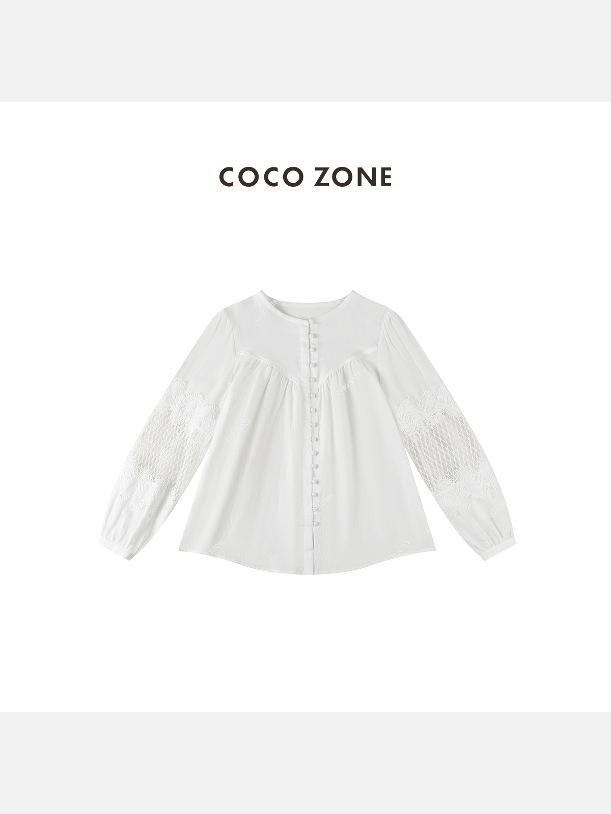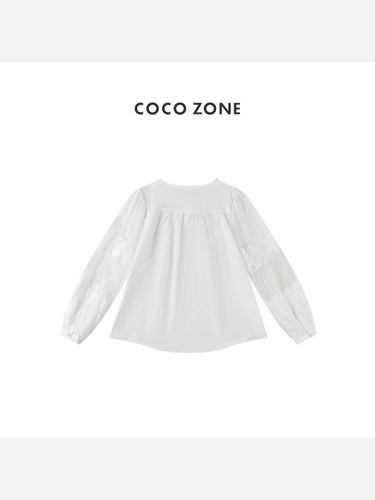 COCO ZONE 法式复古长袖楼口设计上衣前幅收褶衬衣 23C18754