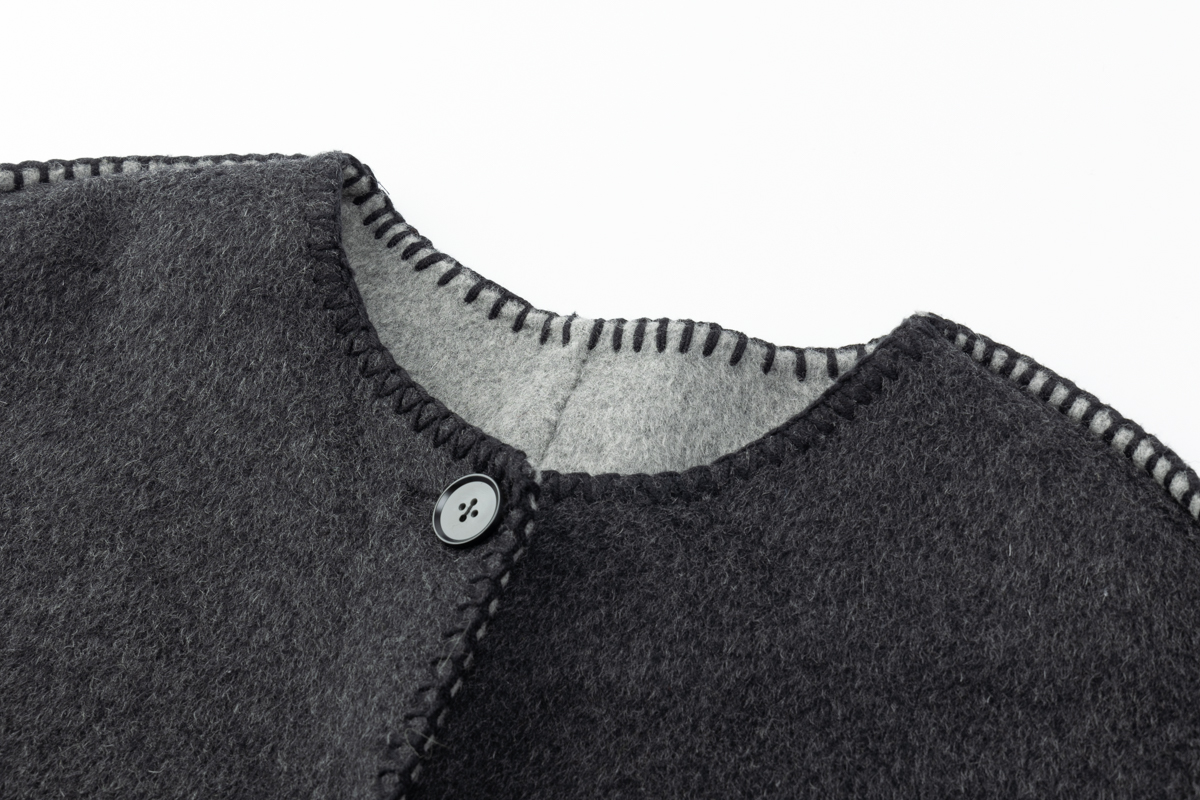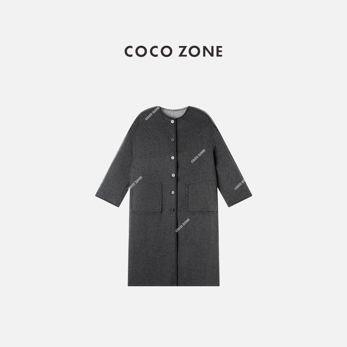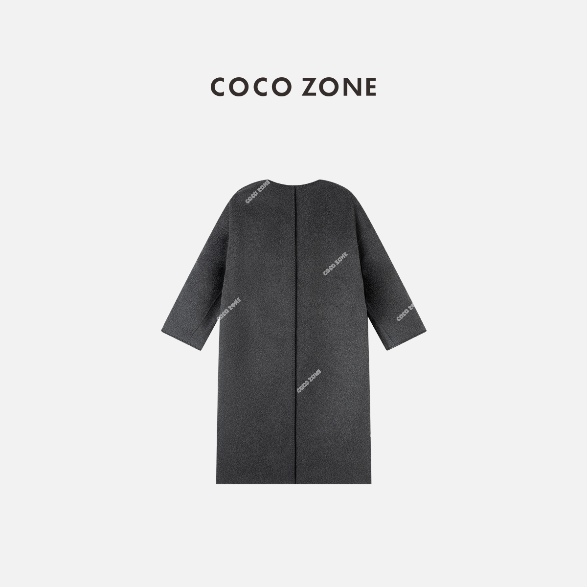 COCO ZONE 秋冬设计感圆领单排扣长款毛呢外套CC2D2522