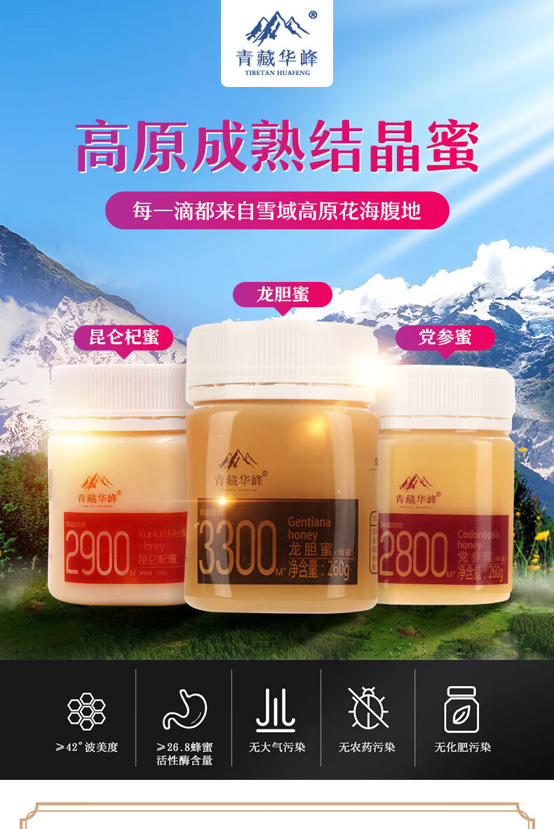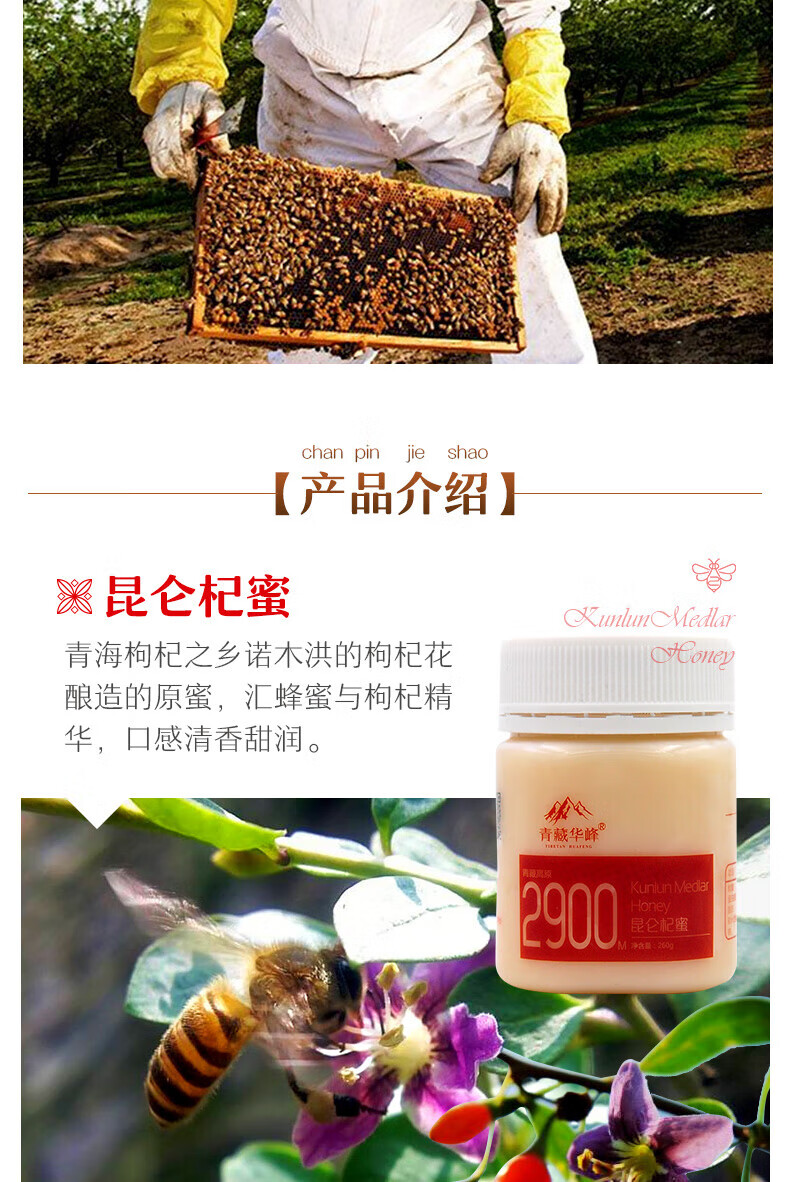 【青海优品】青藏华峰青藏高原纯正枸杞/党参/龙胆蜜农家自产天然结晶蜂蜜土蜂蜜260g