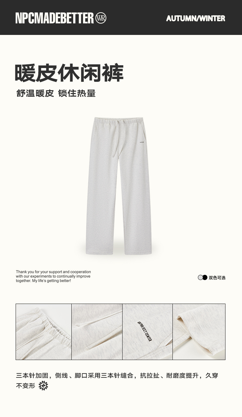 潮牌三本针7A抗菌舒温暖皮休闲裤针织抽绳保暖直筒裤NP5BSP17