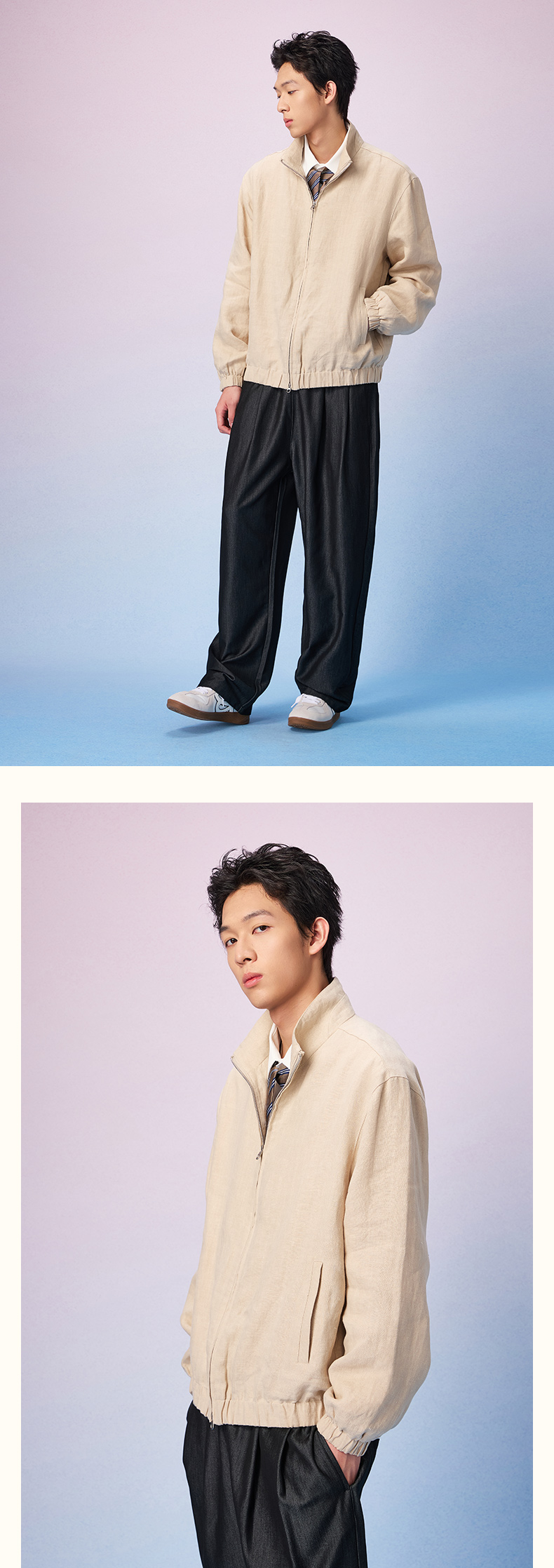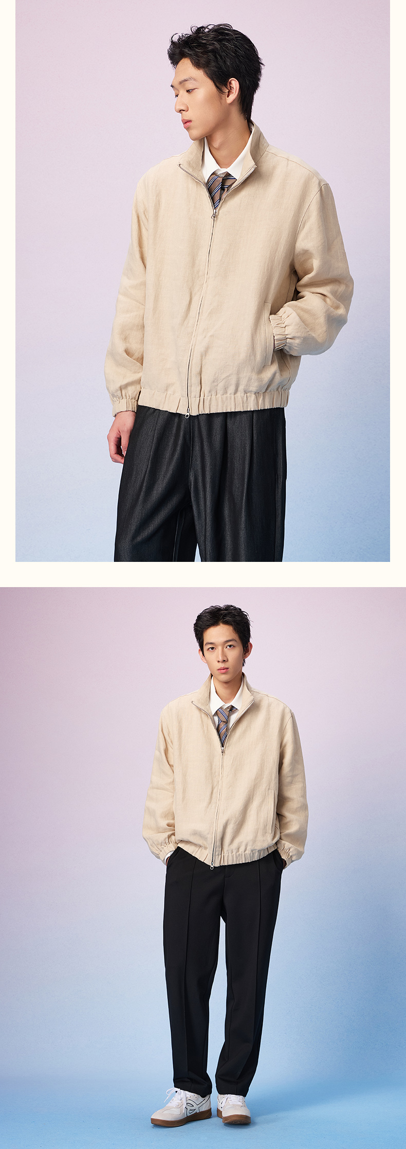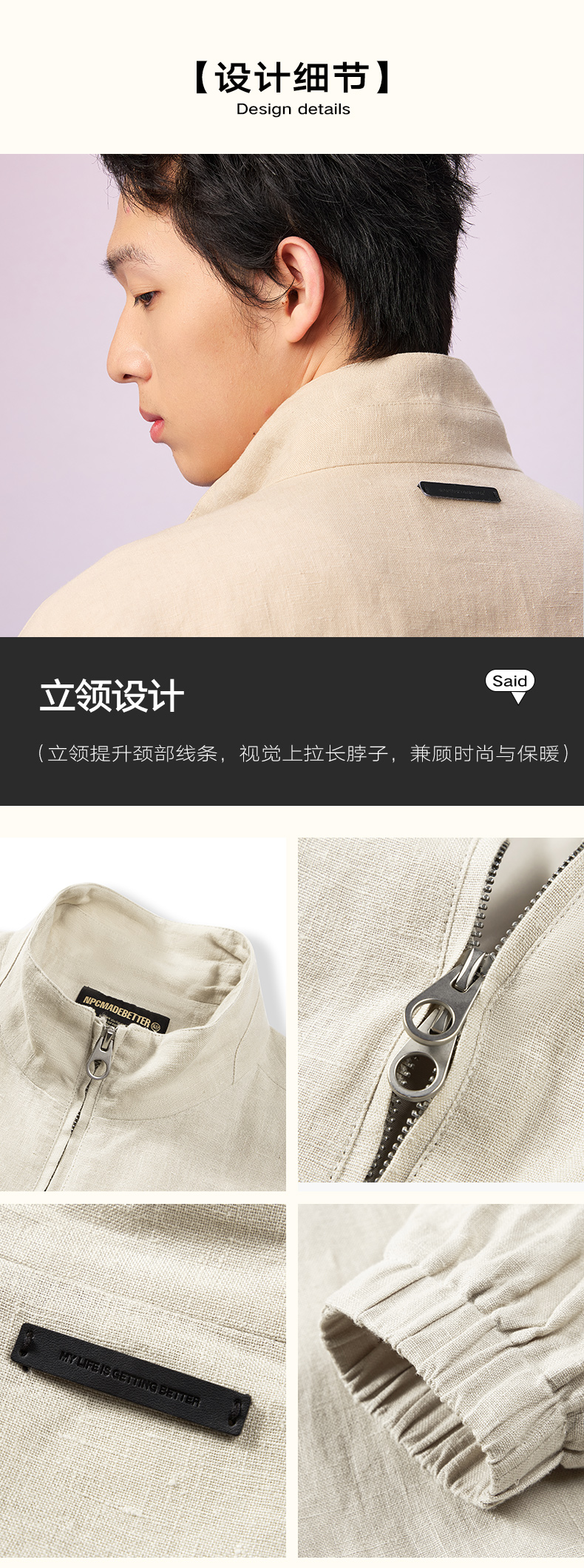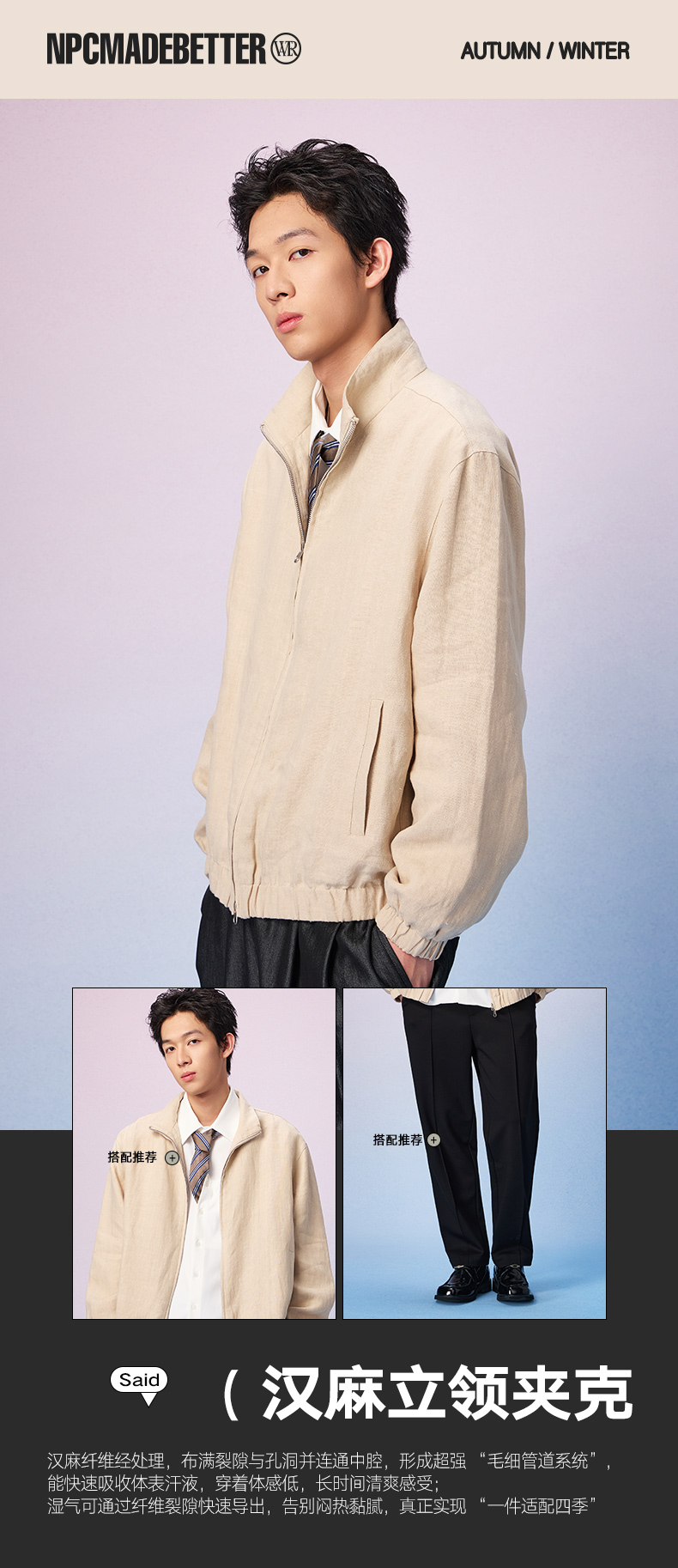 NPC潮牌复古老钱100%【汉麻】立领落肩夹克男双头拉链男秋NP57TJ28
