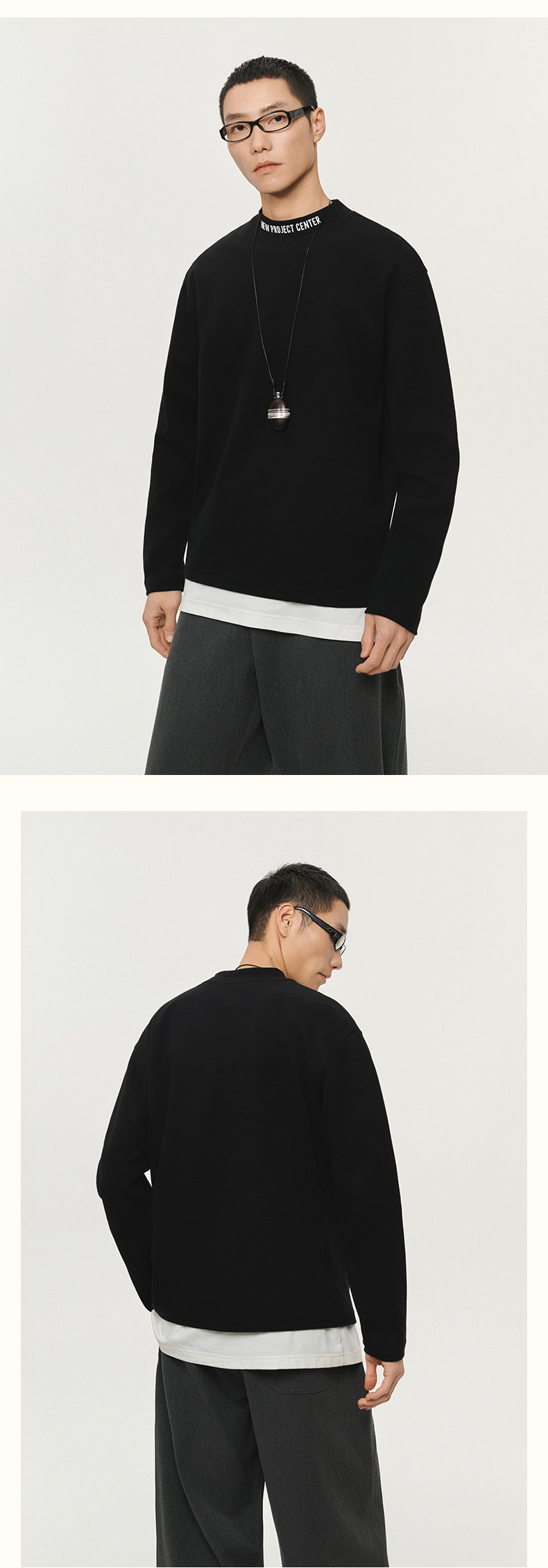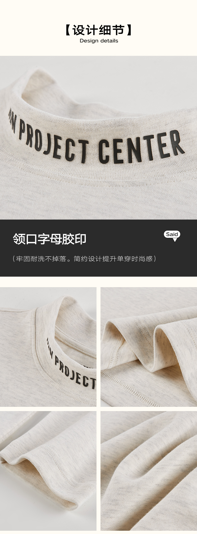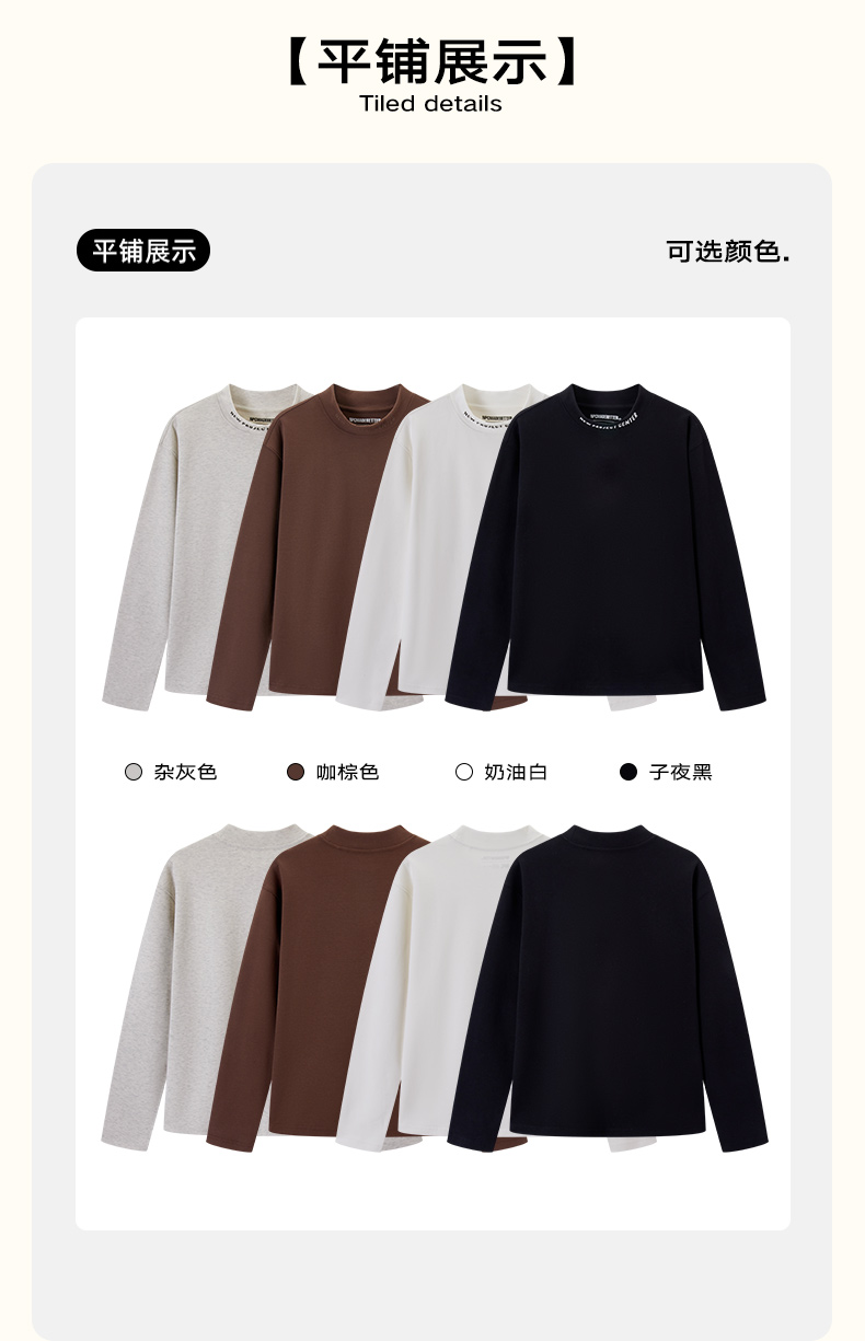 潮牌碳素磨毛领口印花半高领长袖T恤舒温保暖多色可选NP5BTL13