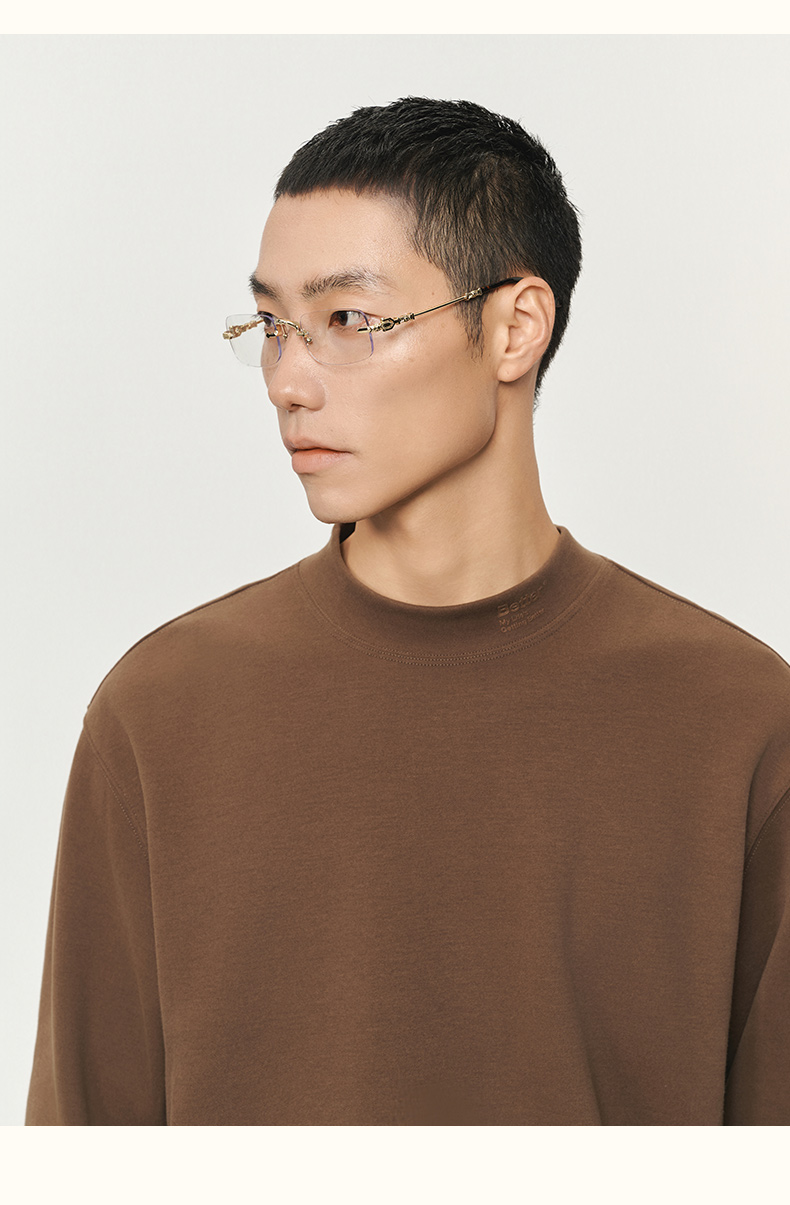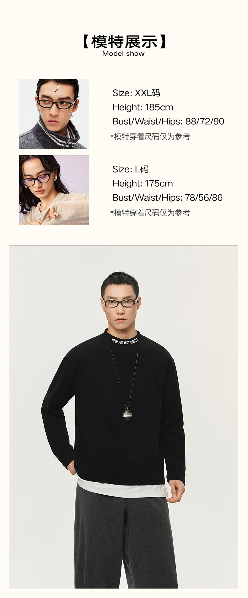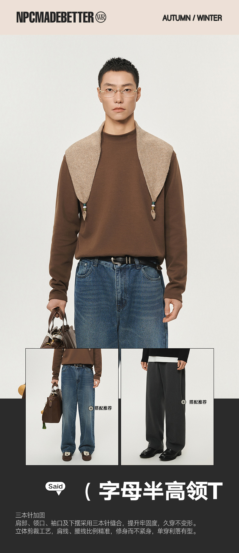 潮牌碳素磨毛领口印花半高领长袖T恤舒温保暖多色可选NP5BTL13