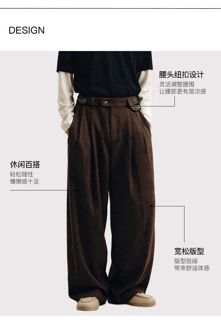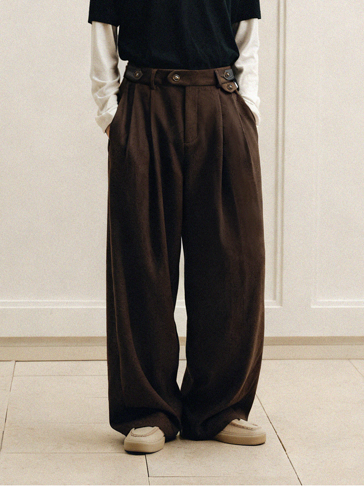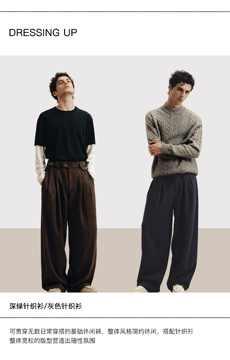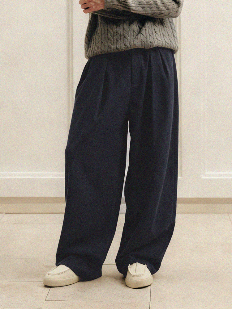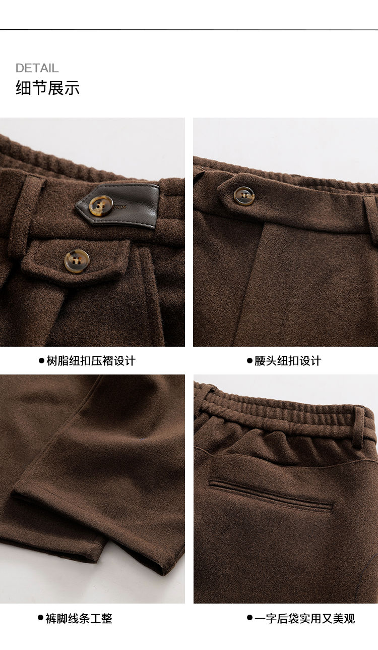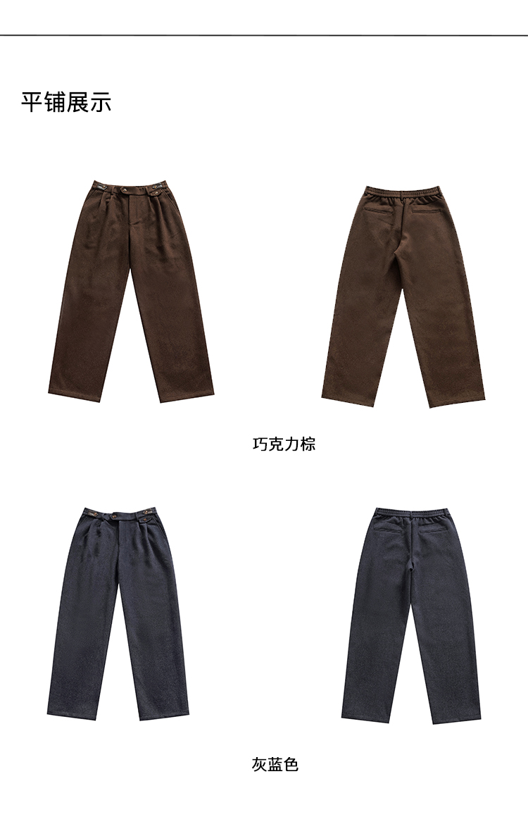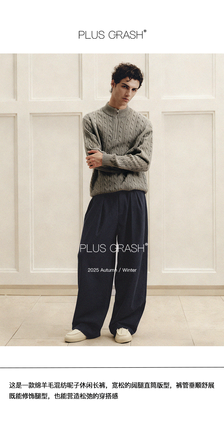 PLUS CRASH冬季加厚保暖老钱风奢雅羊毛混纺休闲长裤宽松男女同款