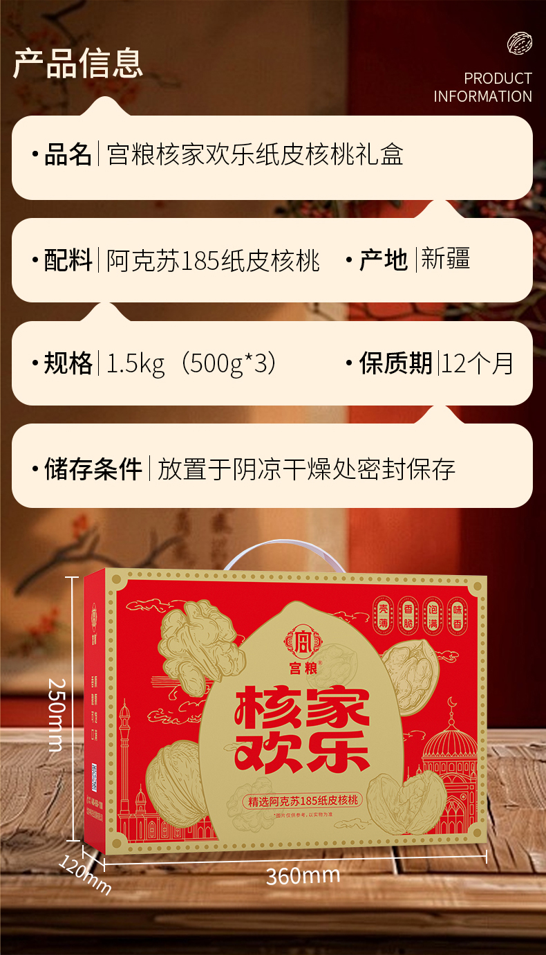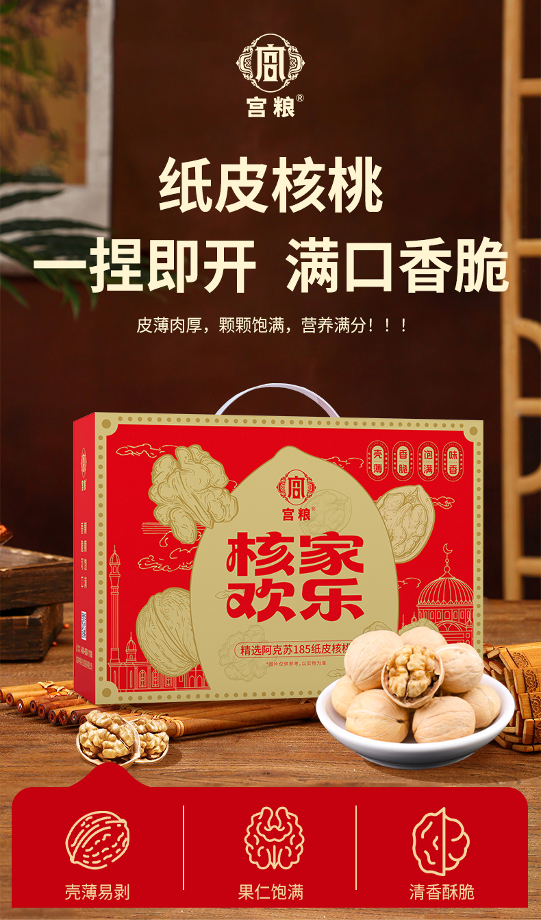 宫粮核家欢乐纸皮核桃礼盒1.5kg