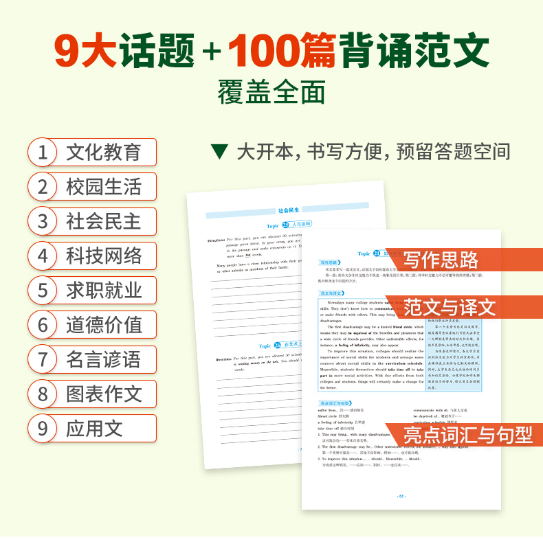 4. 英语四级作文话题全面,范文易于模仿背诵;