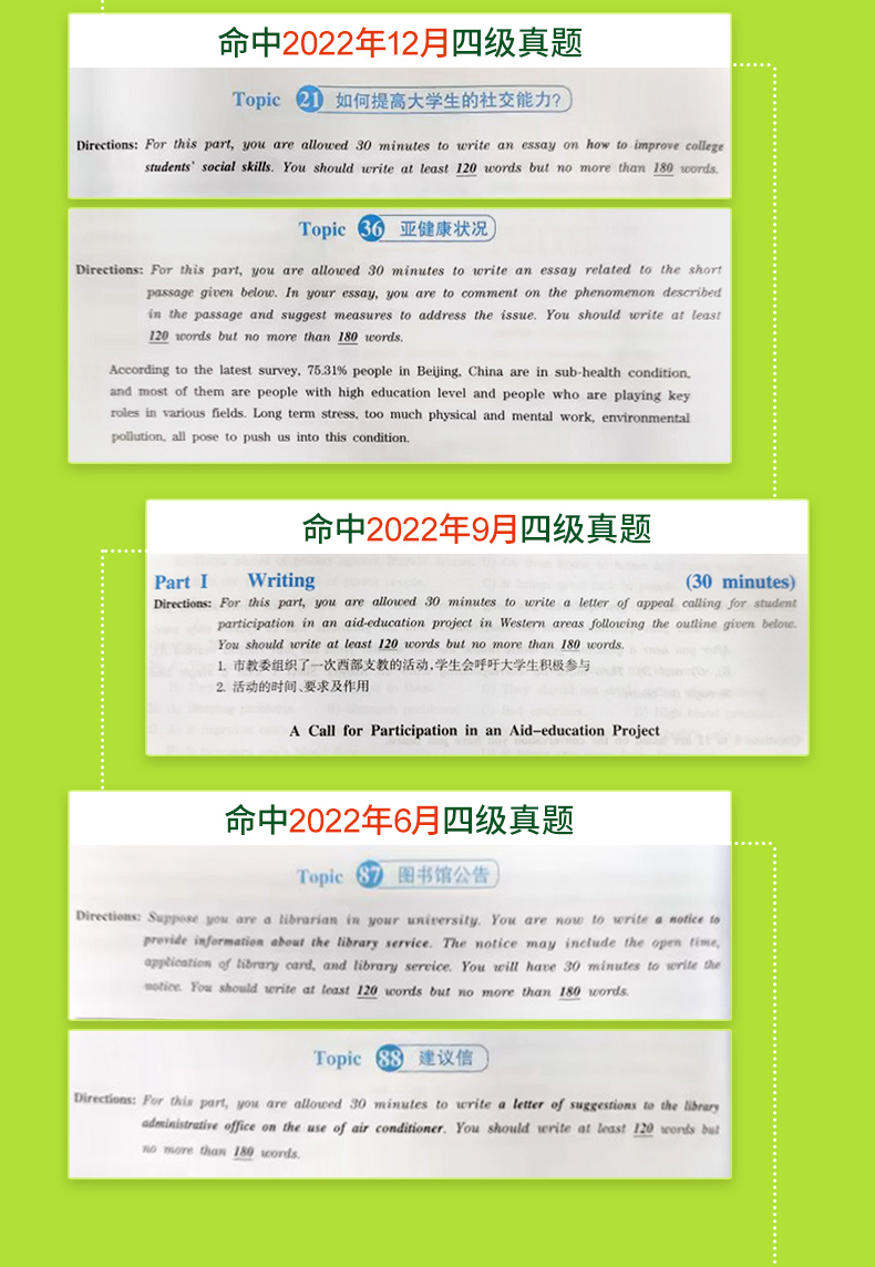 1. 参照近年四级真题作文命题,把握命题趋势,备考针对性强;