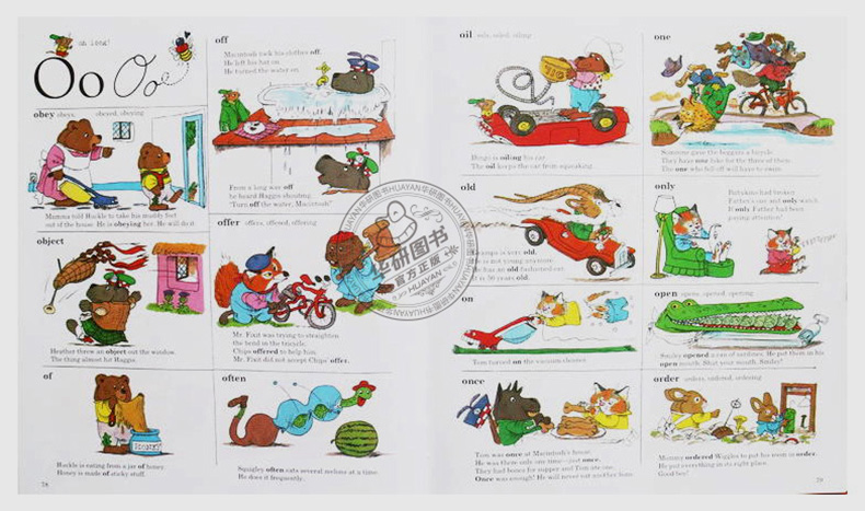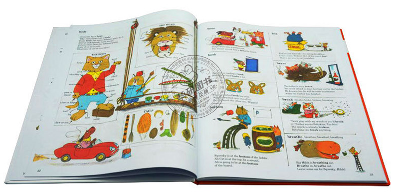 Richard Scarry's Best Picture Dictionary Ever《斯凯瑞儿童图解词典》是一本有趣的「图片式字典」,延续了斯凯瑞的童书风格,将小动物拟人化;全书包括2500个以上的英语词汇、以及超过1000张生动的彩色插图。此外,每个词汇都附有简单易懂的例句,让孩子能够更好地理解,活学活用。本词典帮助孩子们记忆、理解日常英语词汇,也可用于家长辅导孩子学习。