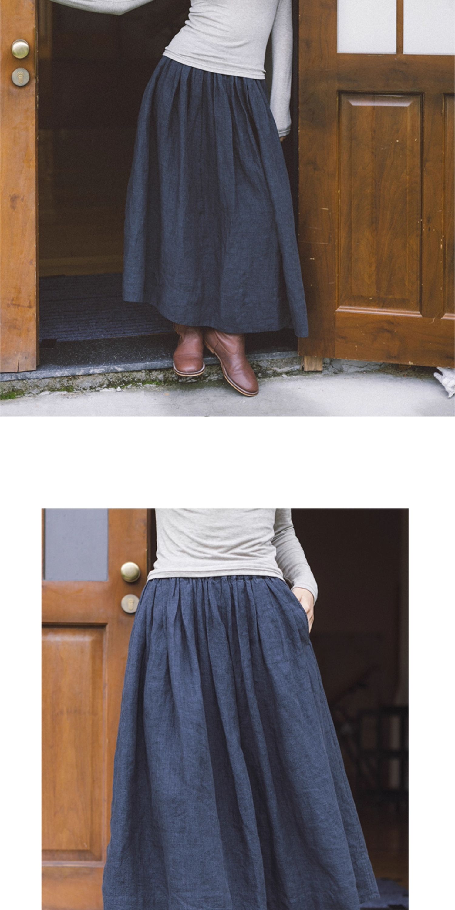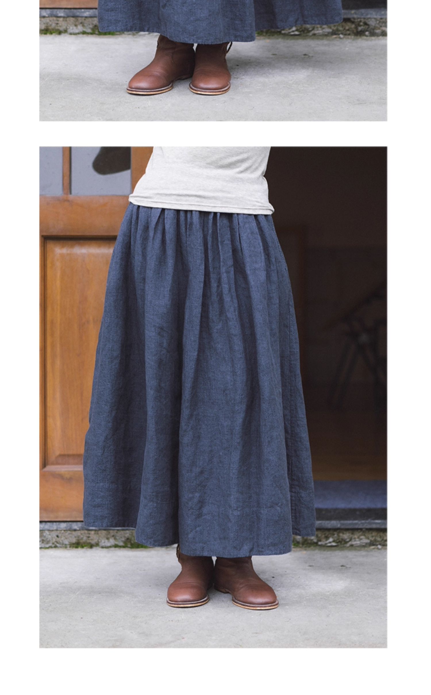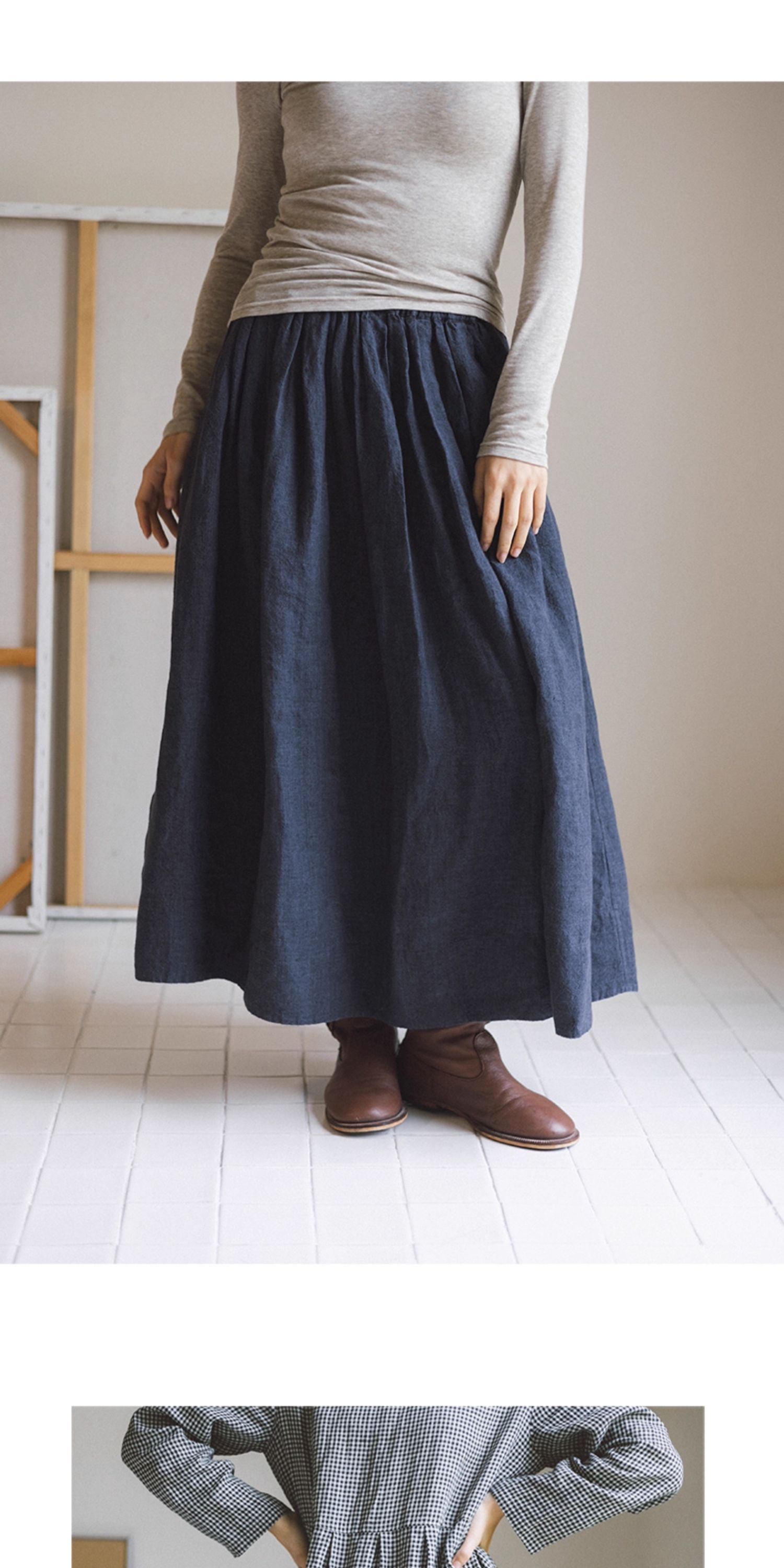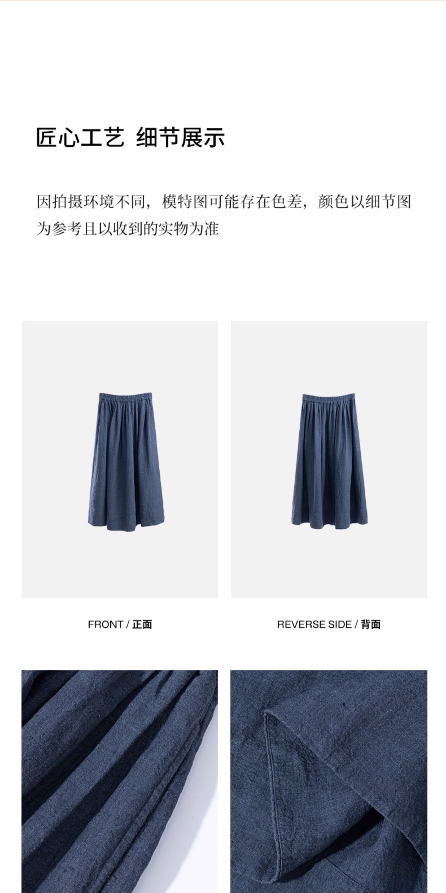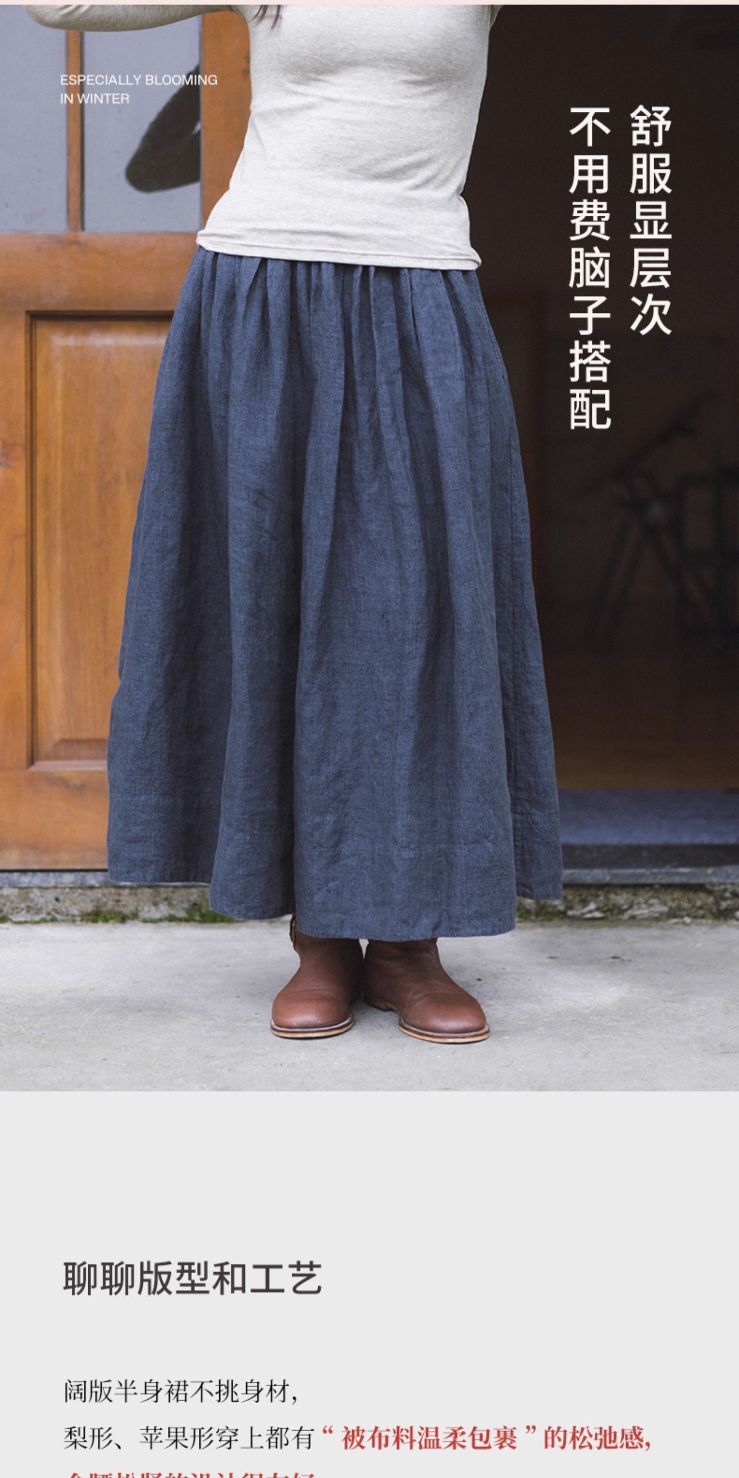 绽放791朵/超适配长半裙·色织亚麻碎褶半身长裙女文艺百搭半身裙