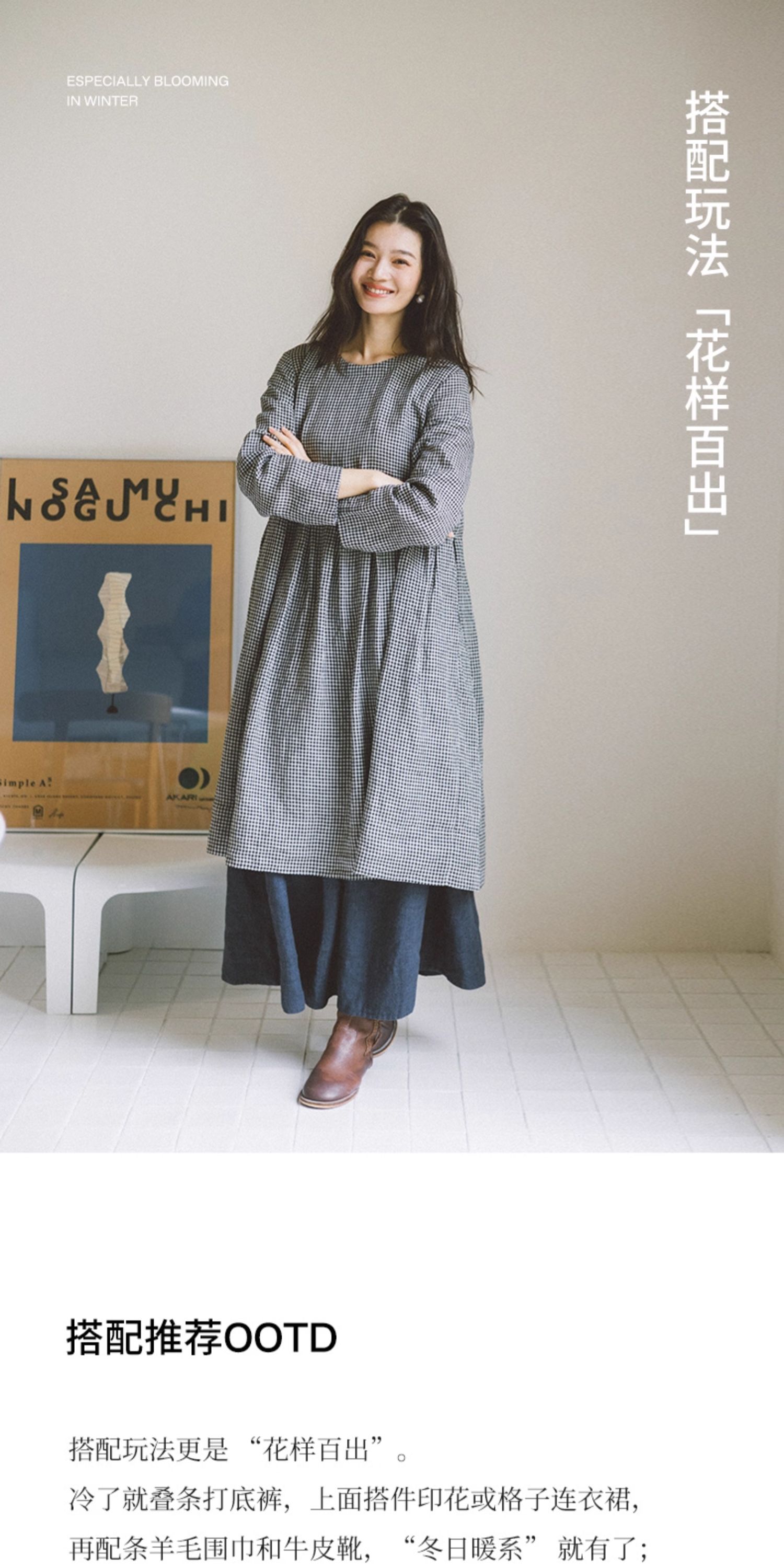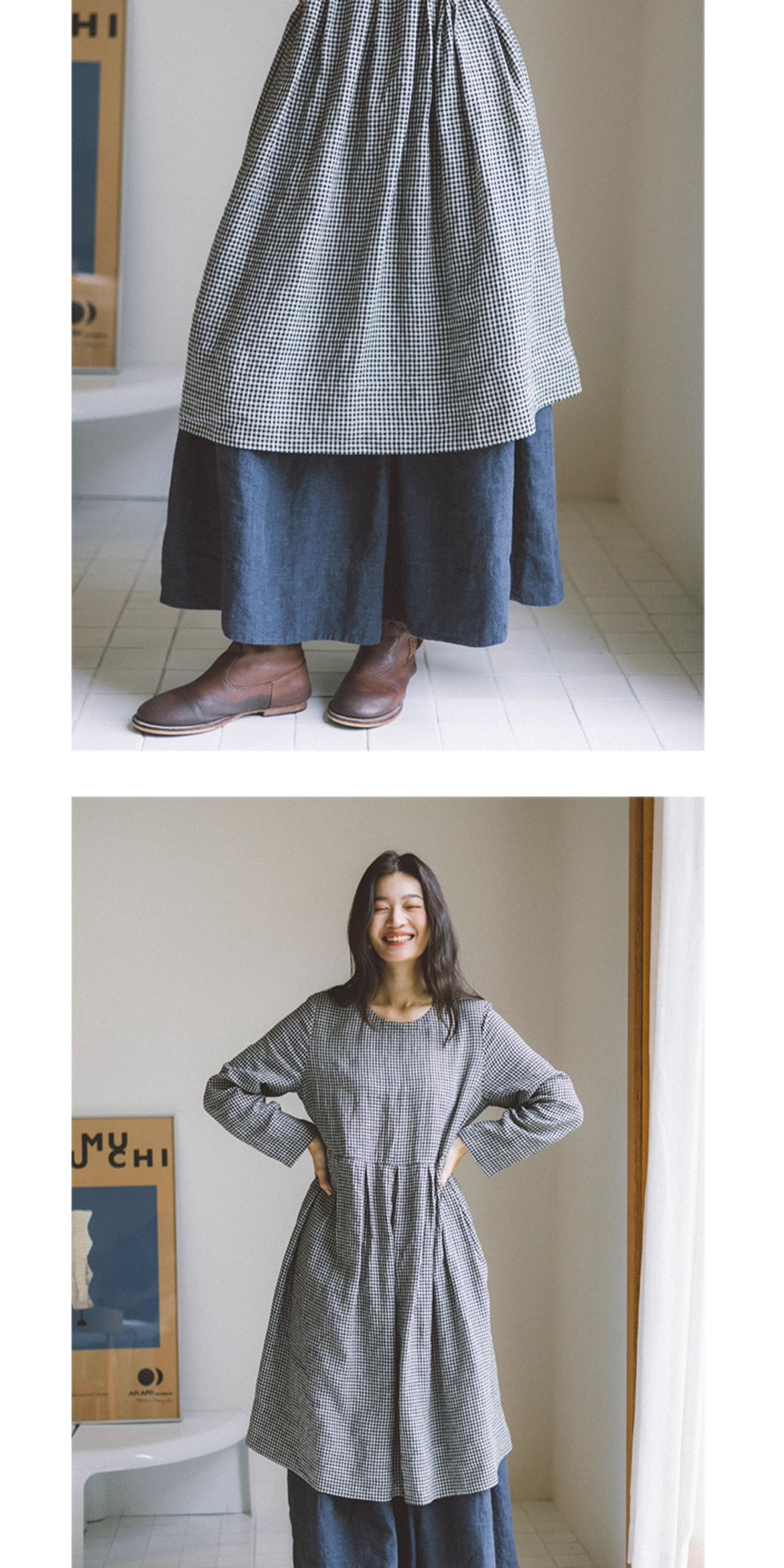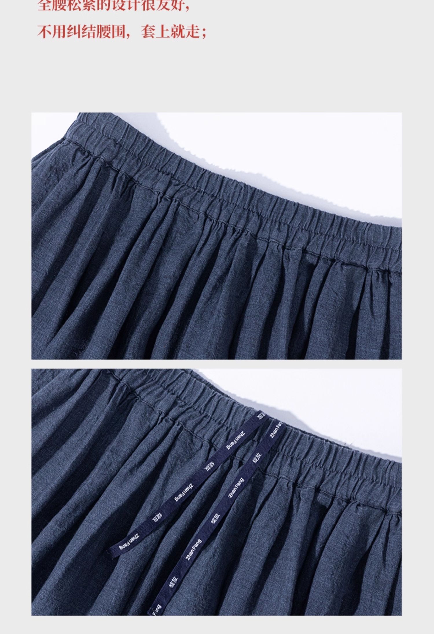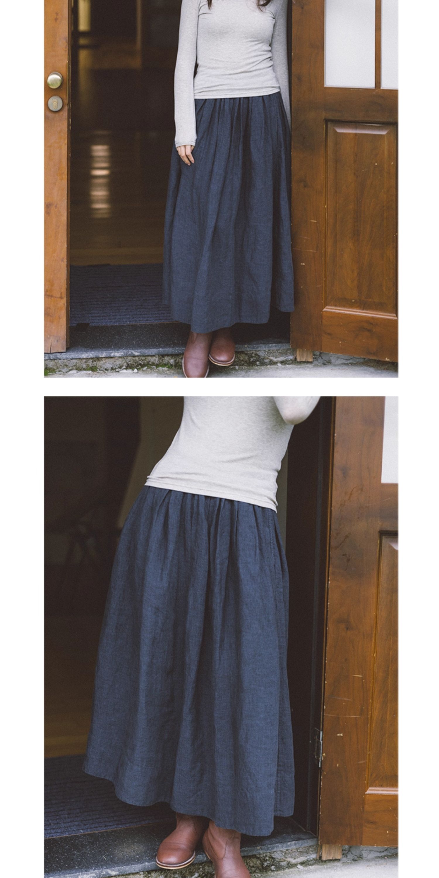 绽放791朵/超适配长半裙·色织亚麻碎褶半身长裙女文艺百搭半身裙