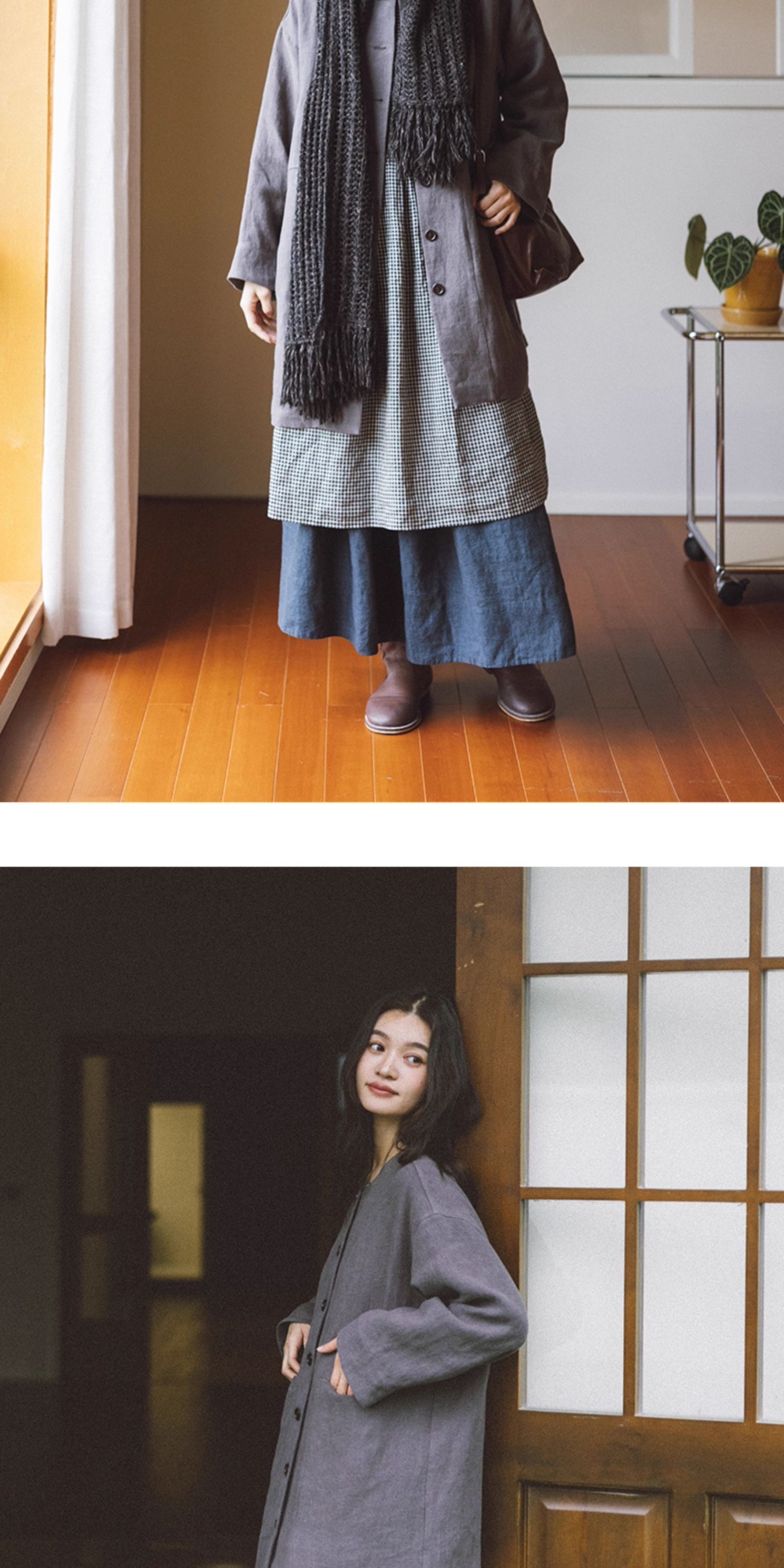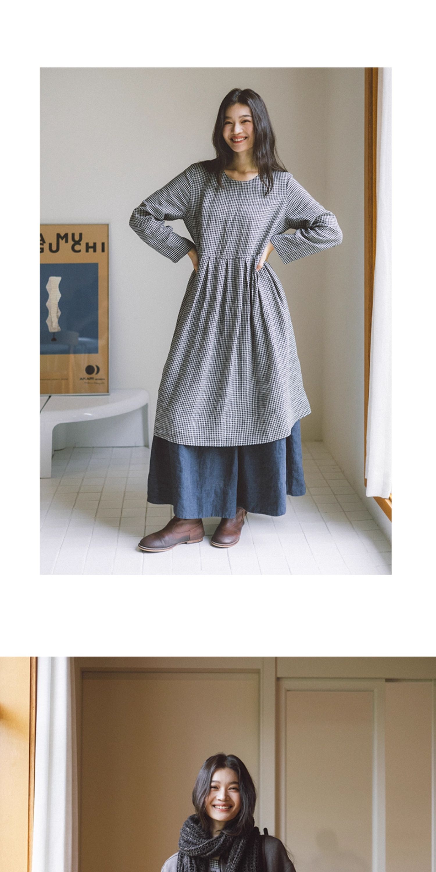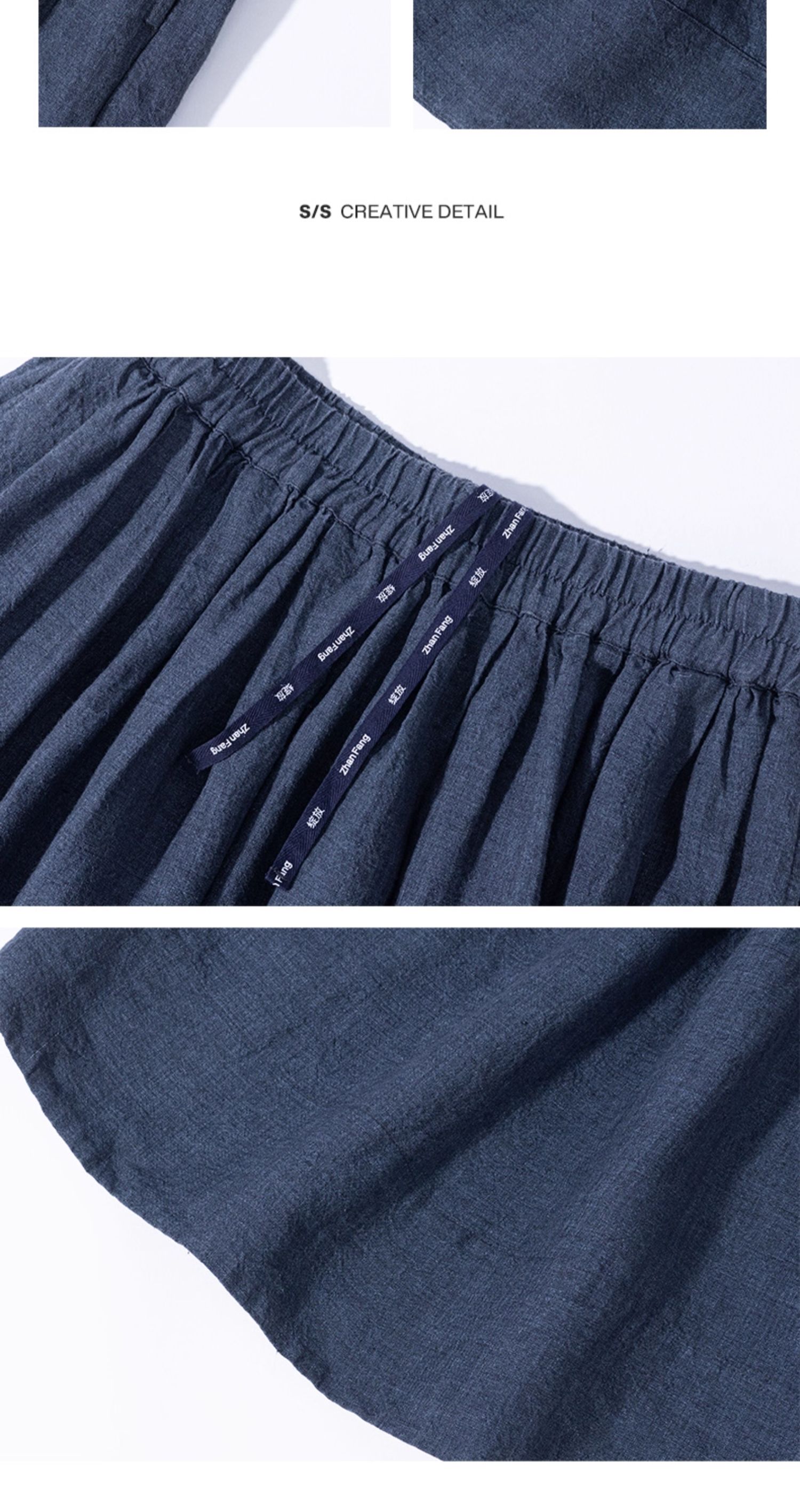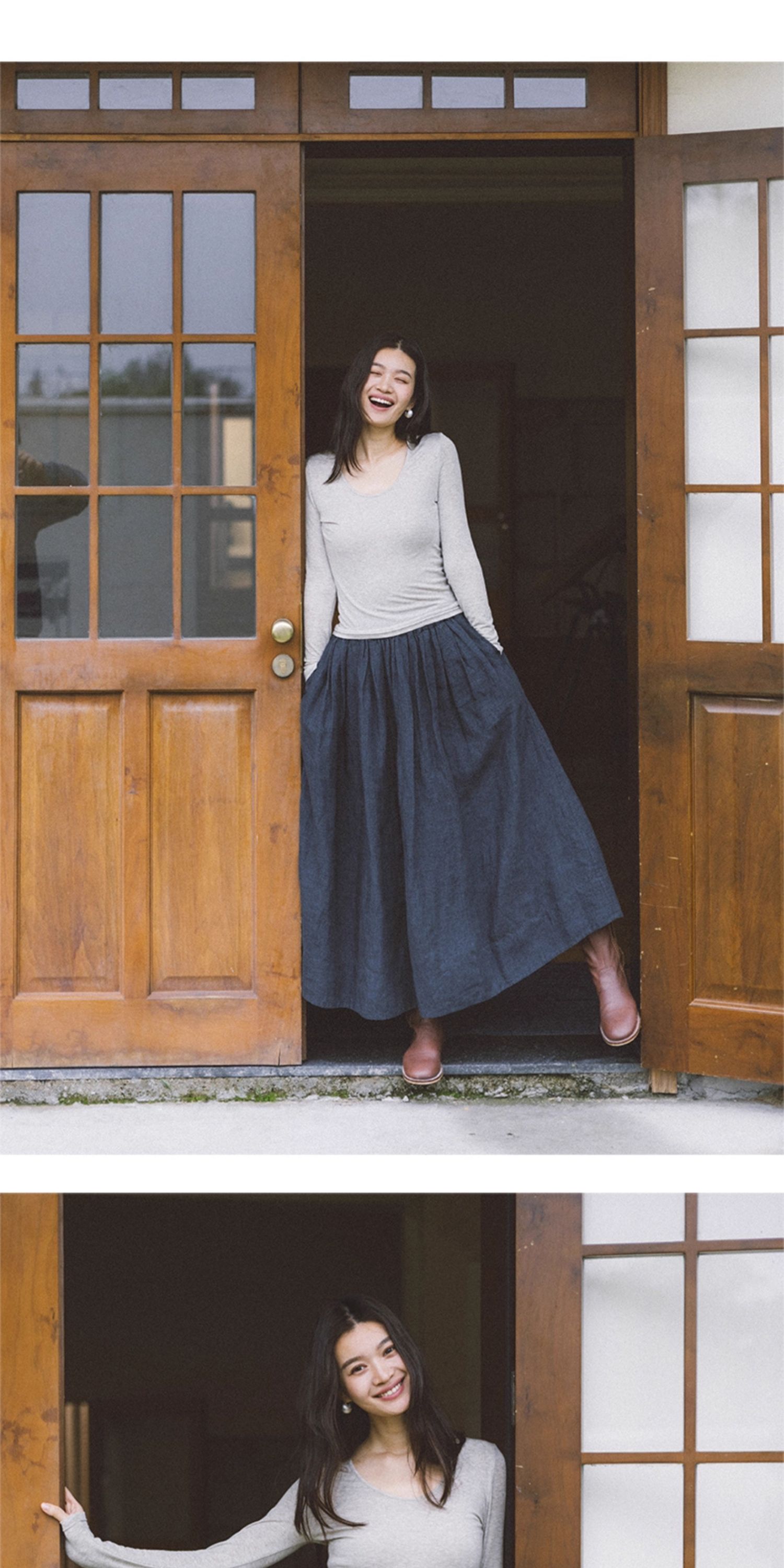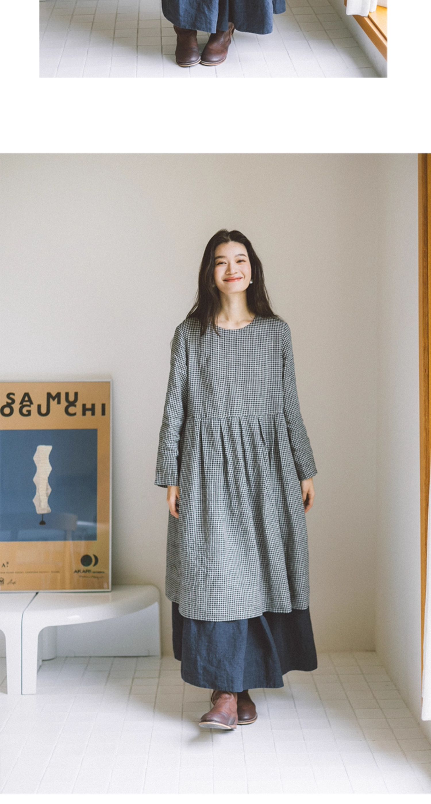 绽放791朵/超适配长半裙·色织亚麻碎褶半身长裙女文艺百搭半身裙