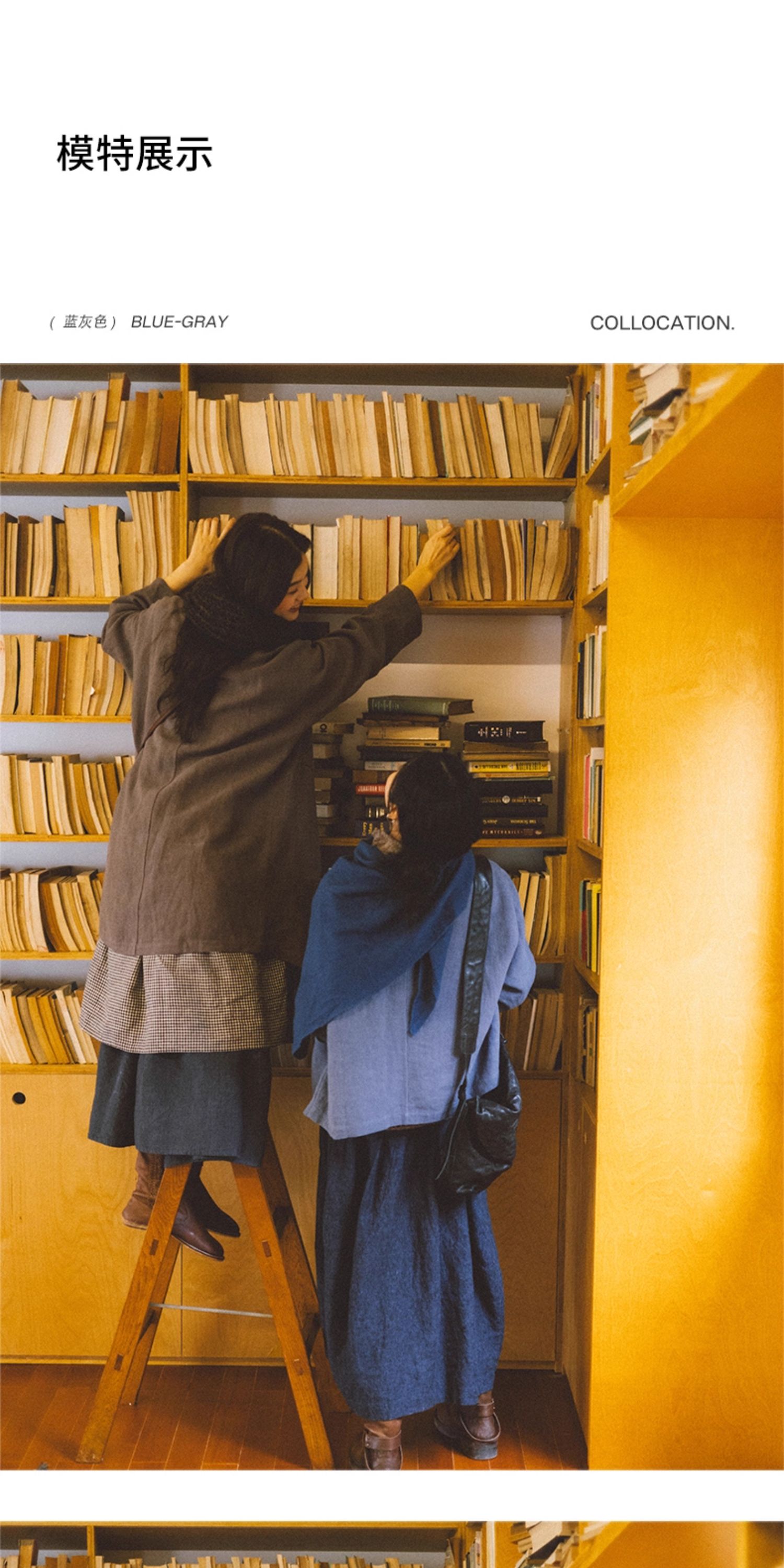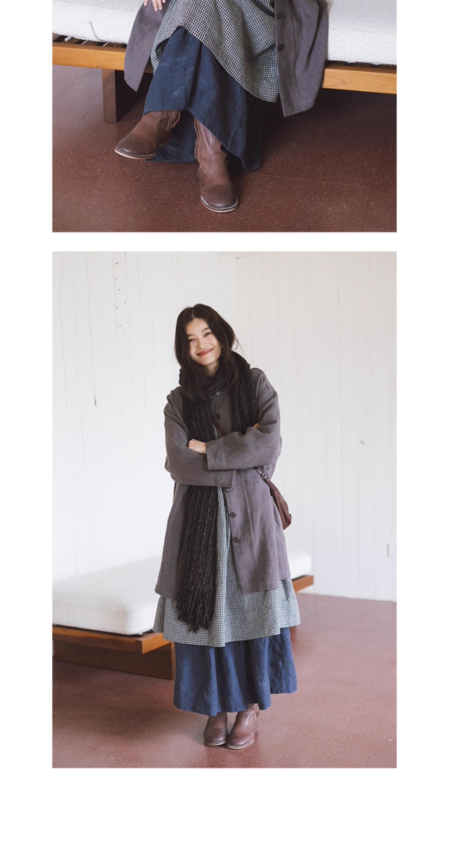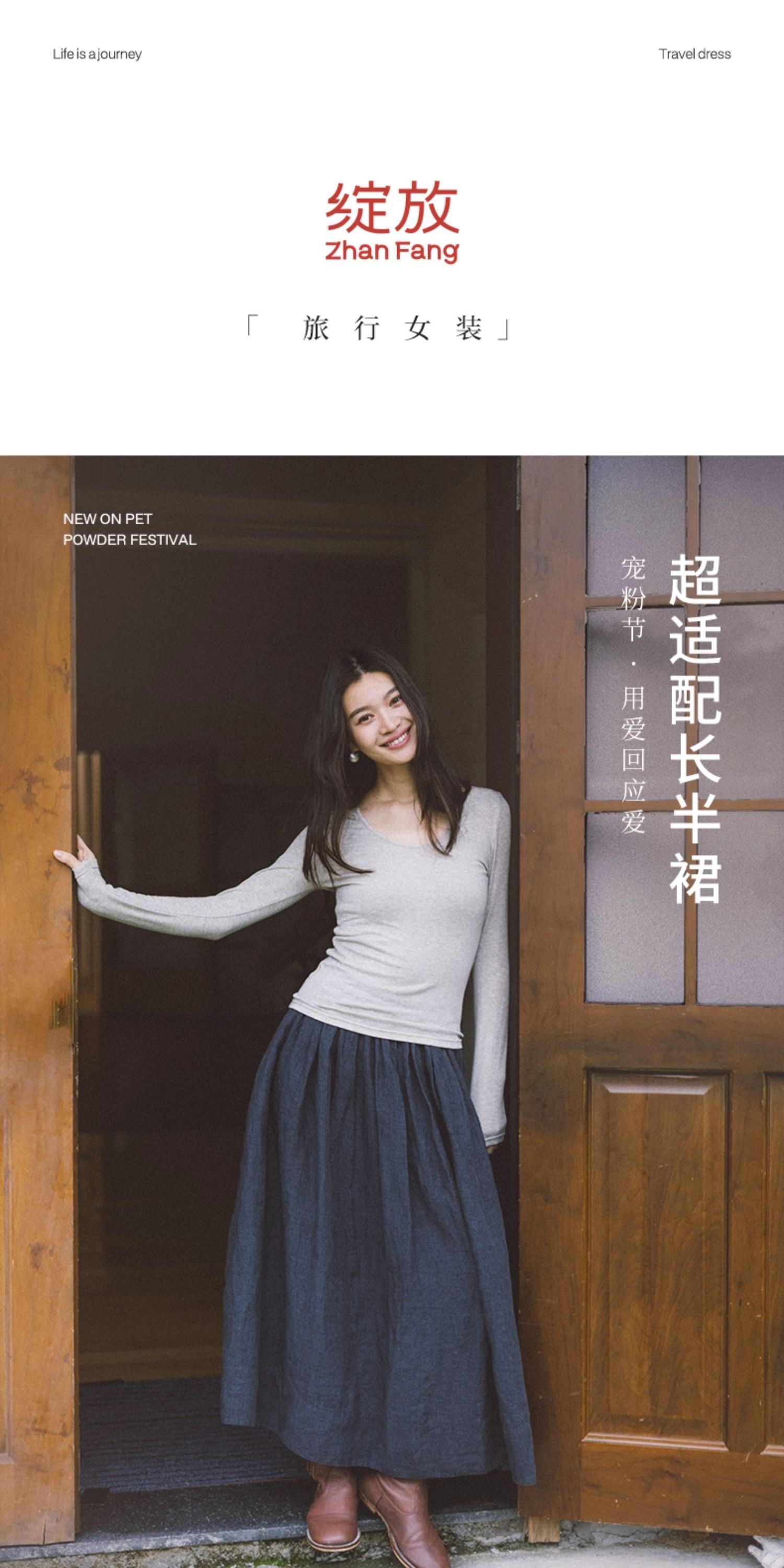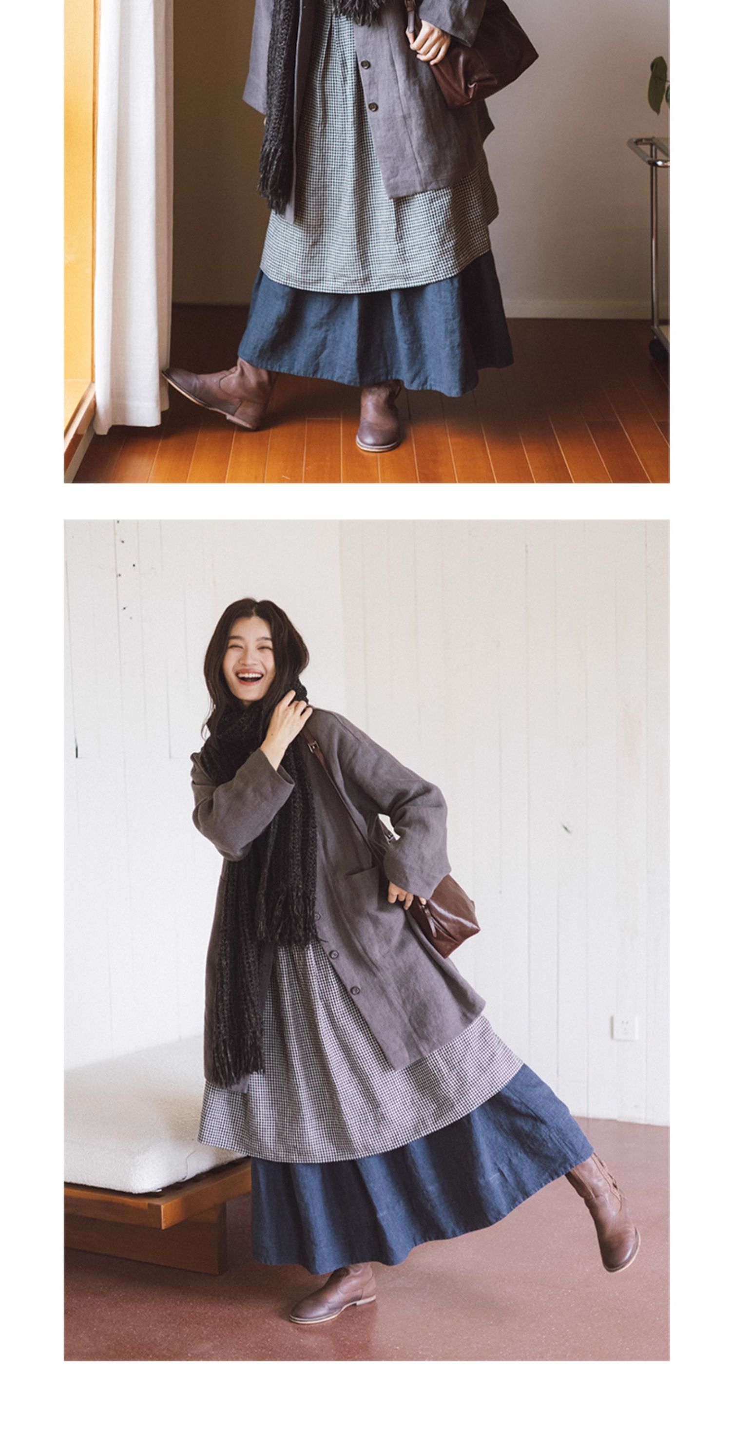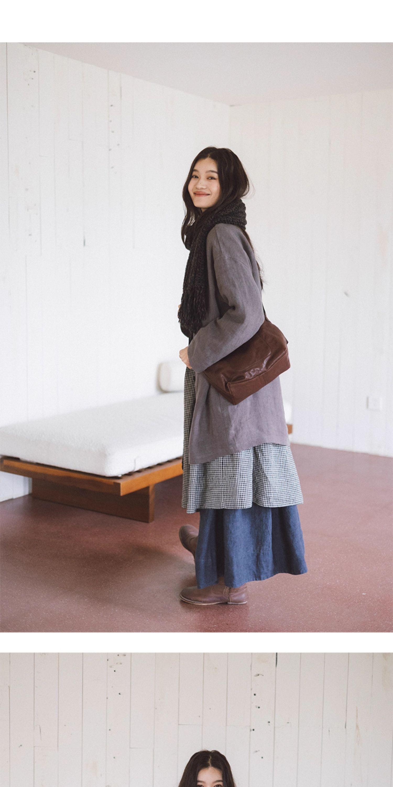 绽放791朵/超适配长半裙·色织亚麻碎褶半身长裙女文艺百搭半身裙