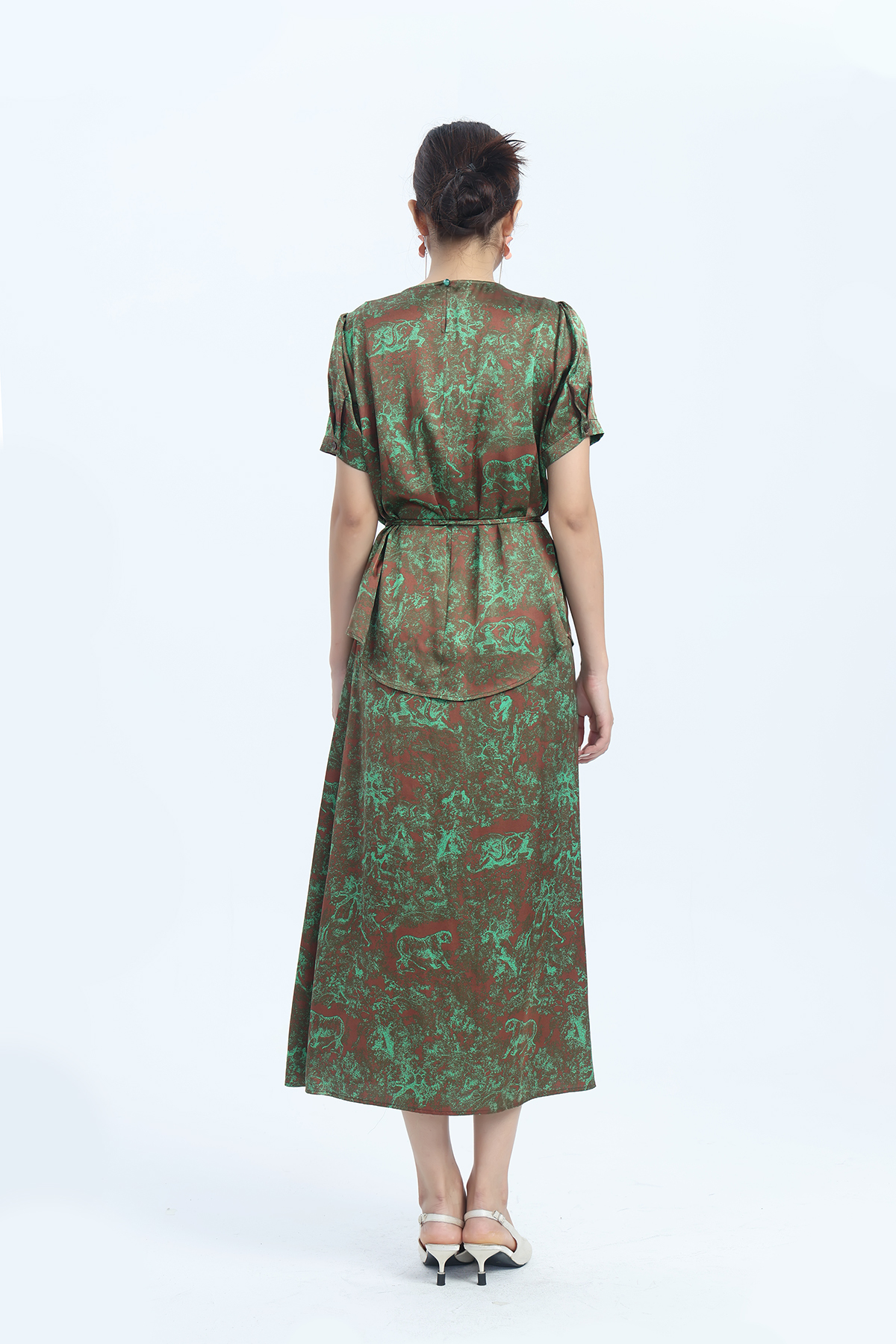 SZ2T50_庭芜绿_T恤_夏季_圆领钥匙孔短袖腰带收腰不规则下摆_高级女装_BERNIEELEN 伯妮斯茵