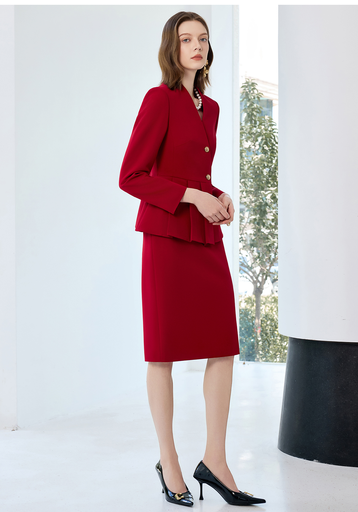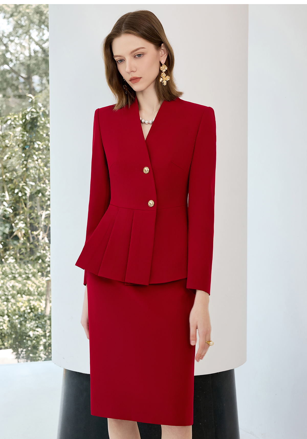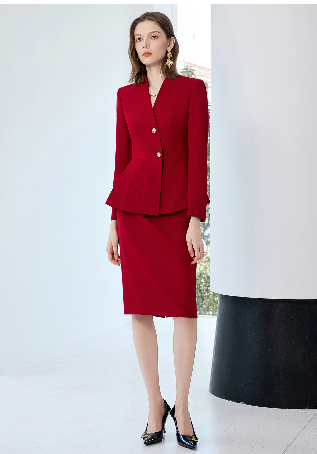 艾尚臣红色西装套裙女秋上班通勤穿搭套装高端职业气质案场工作服