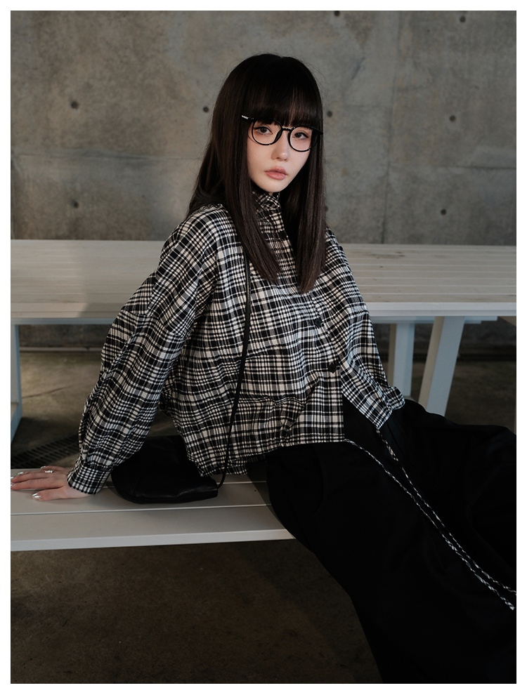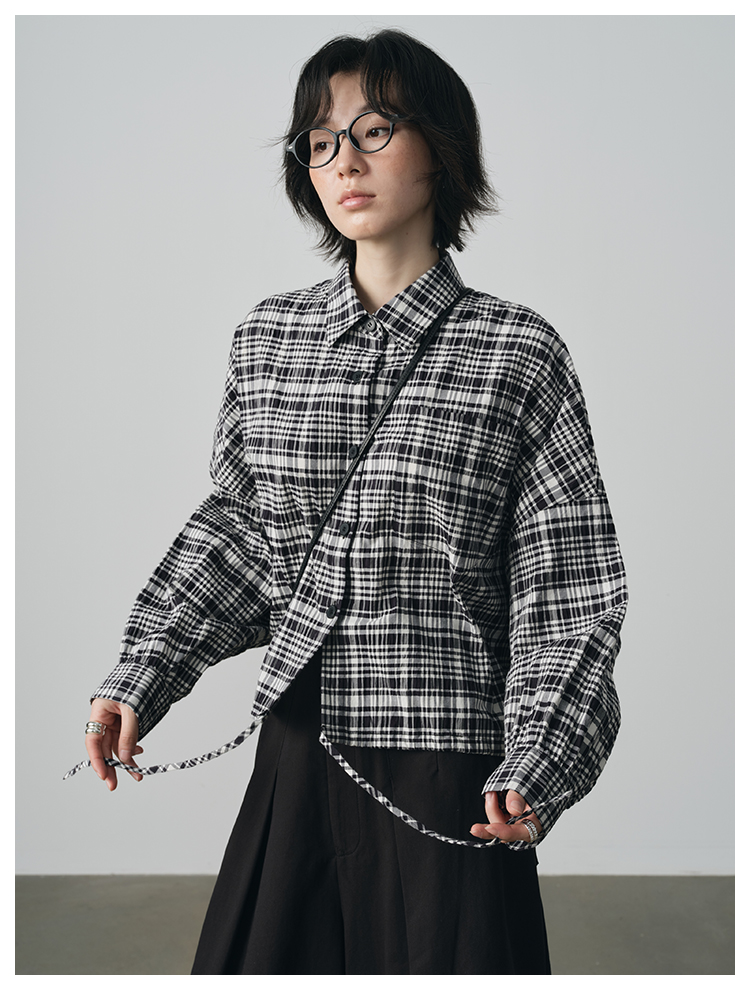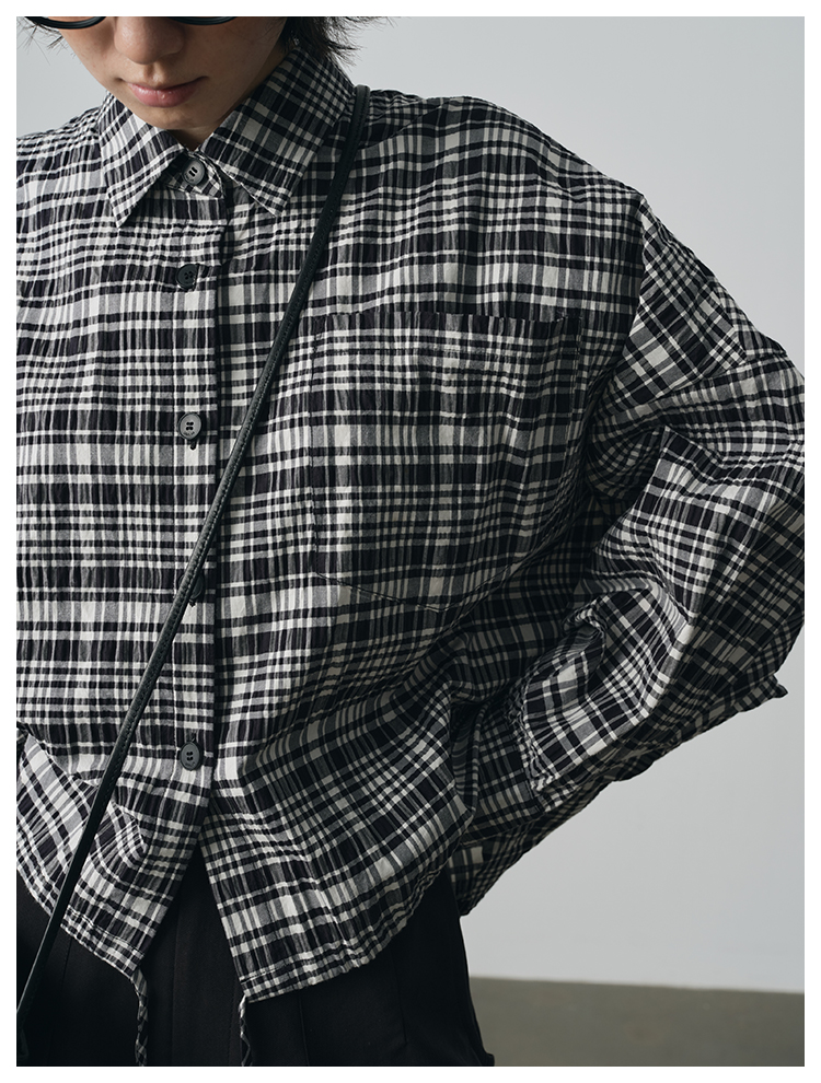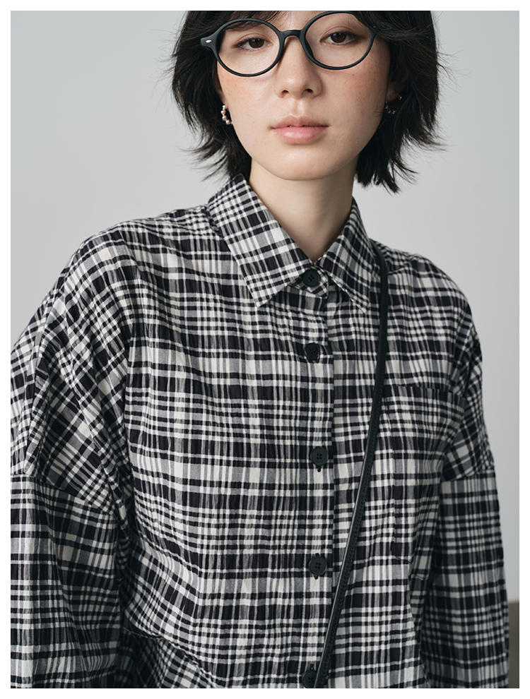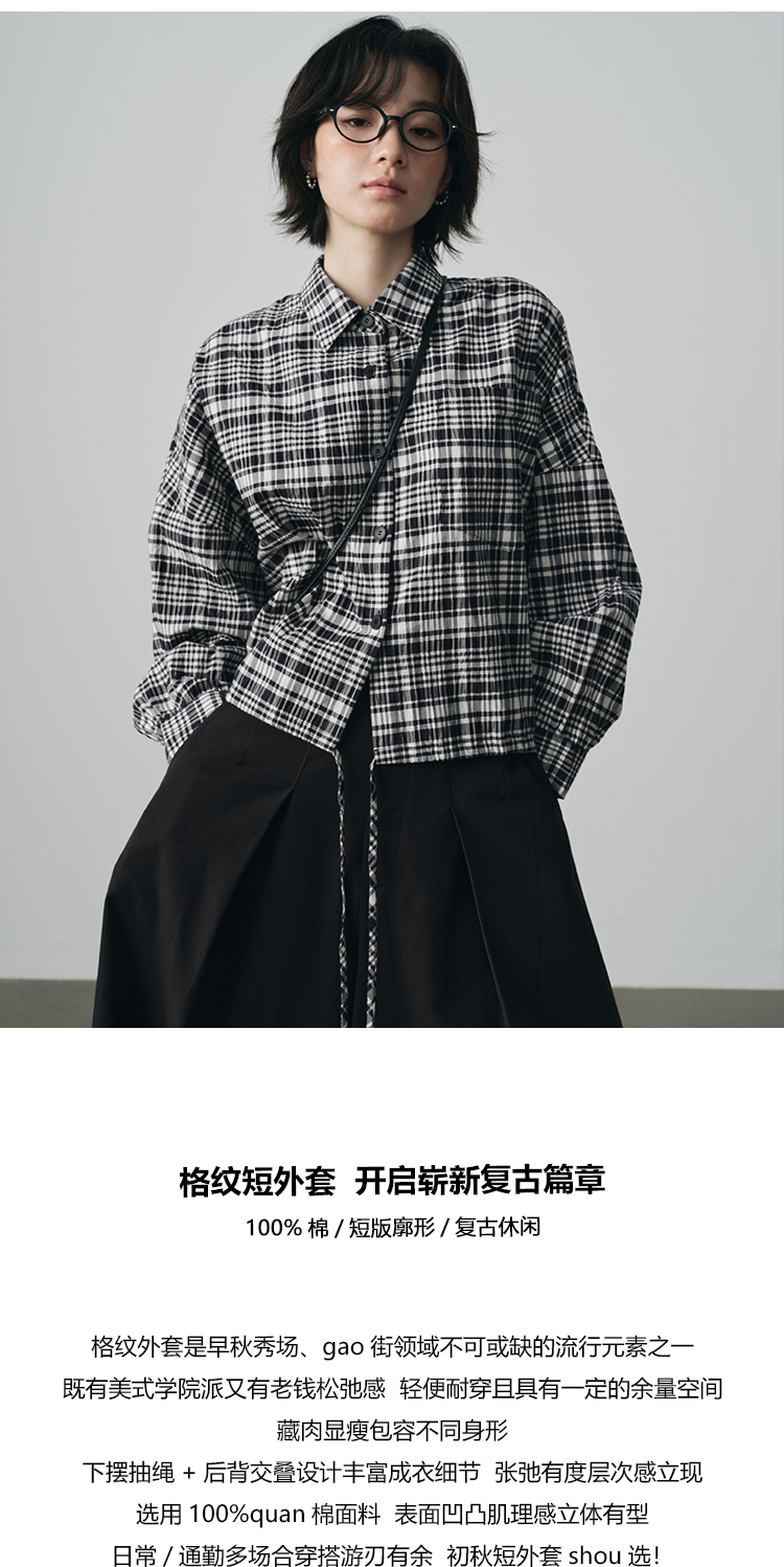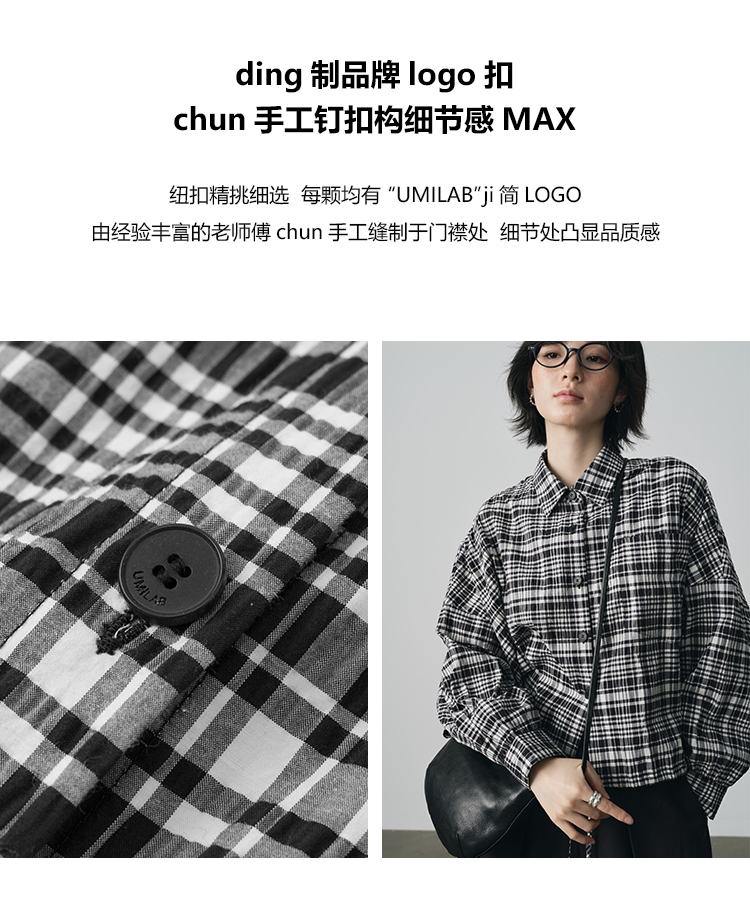 UMILAB【知秋】100%棉盐缩肌理感立体抗皱宽松短款格纹外套H1213H