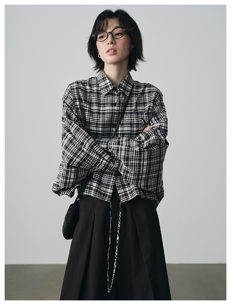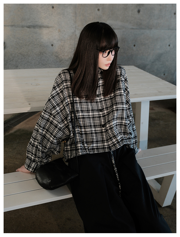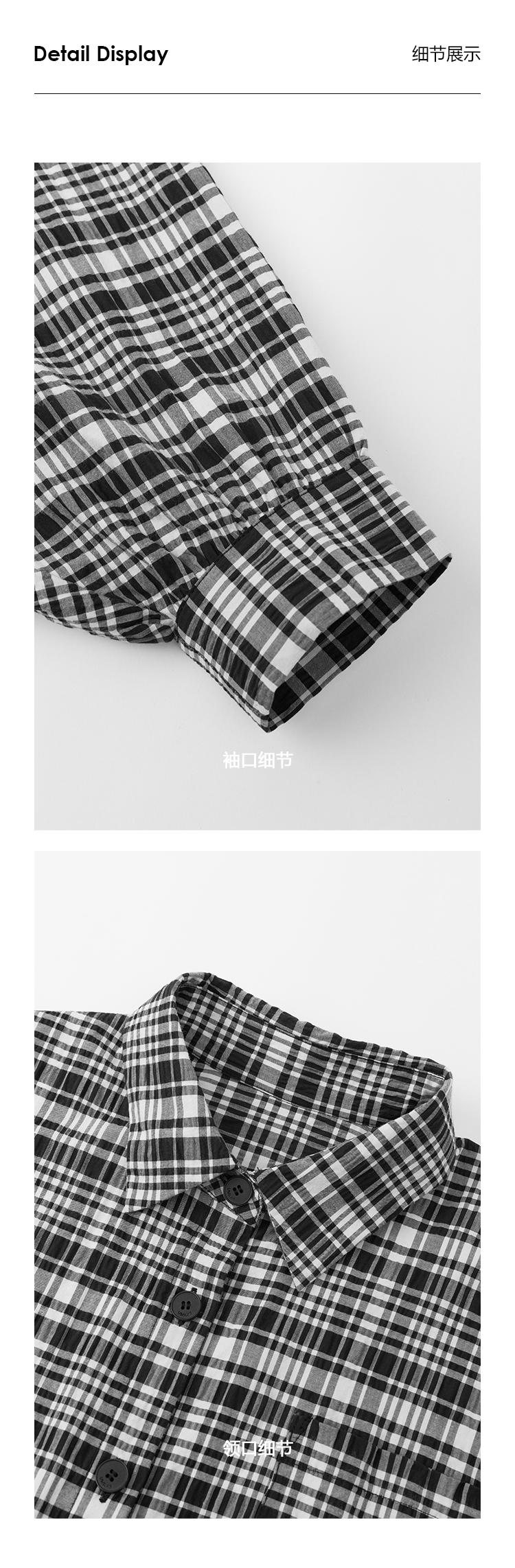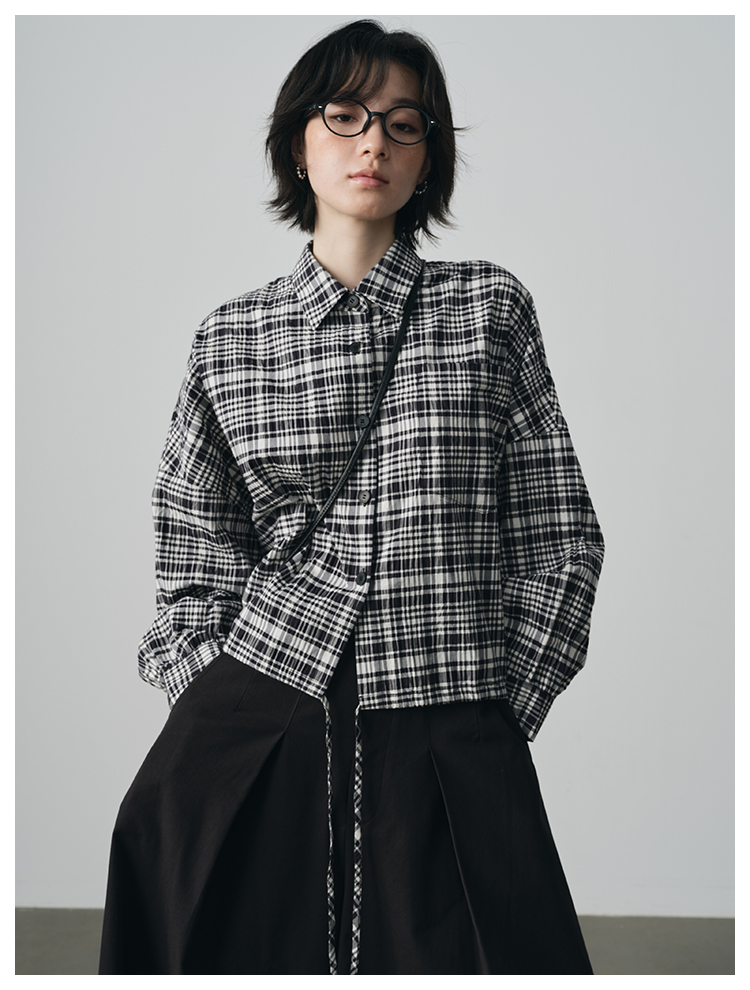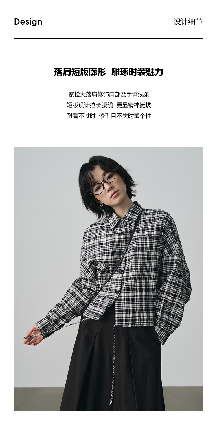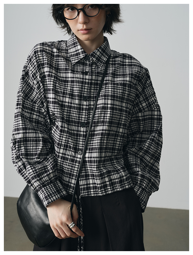 UMILAB【知秋】100%棉盐缩肌理感立体抗皱宽松短款格纹外套H1213H