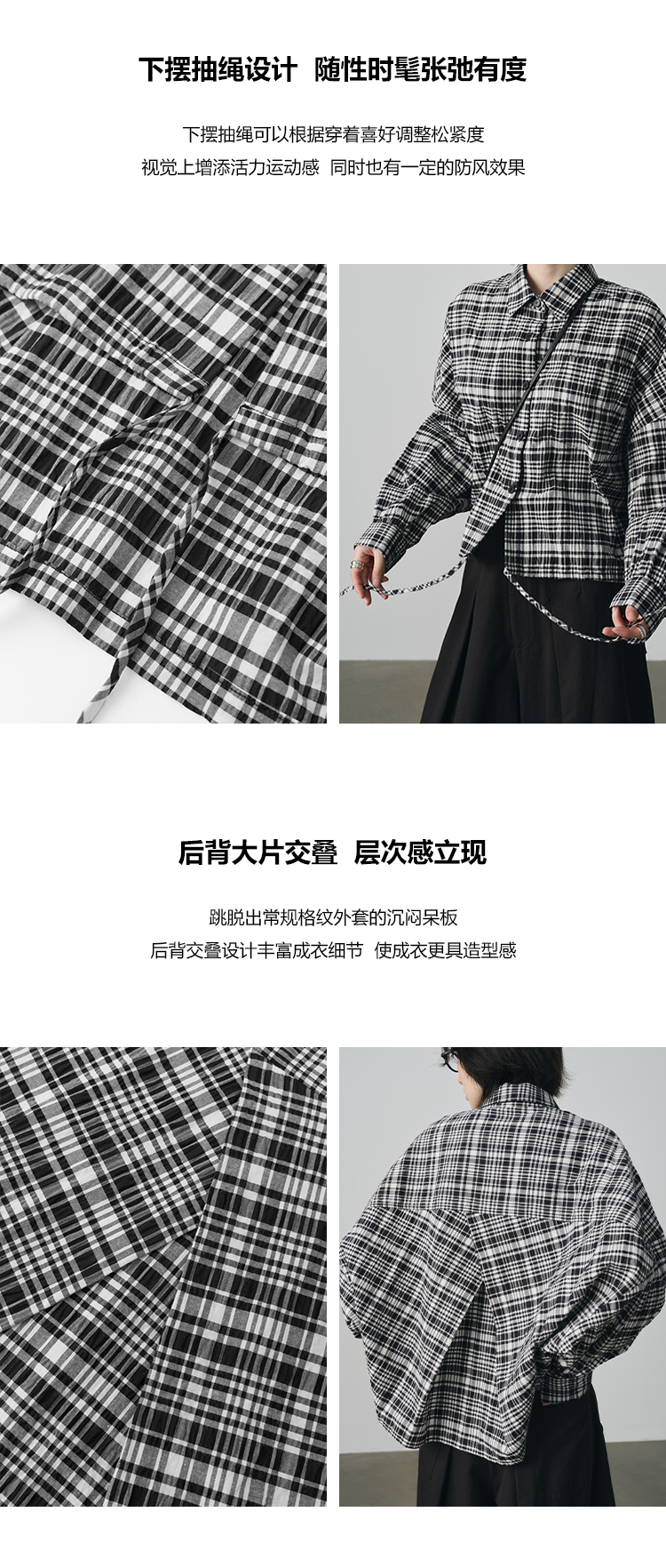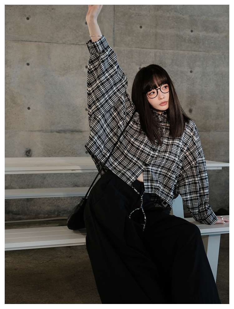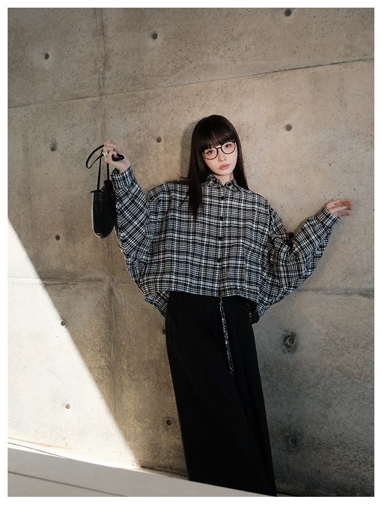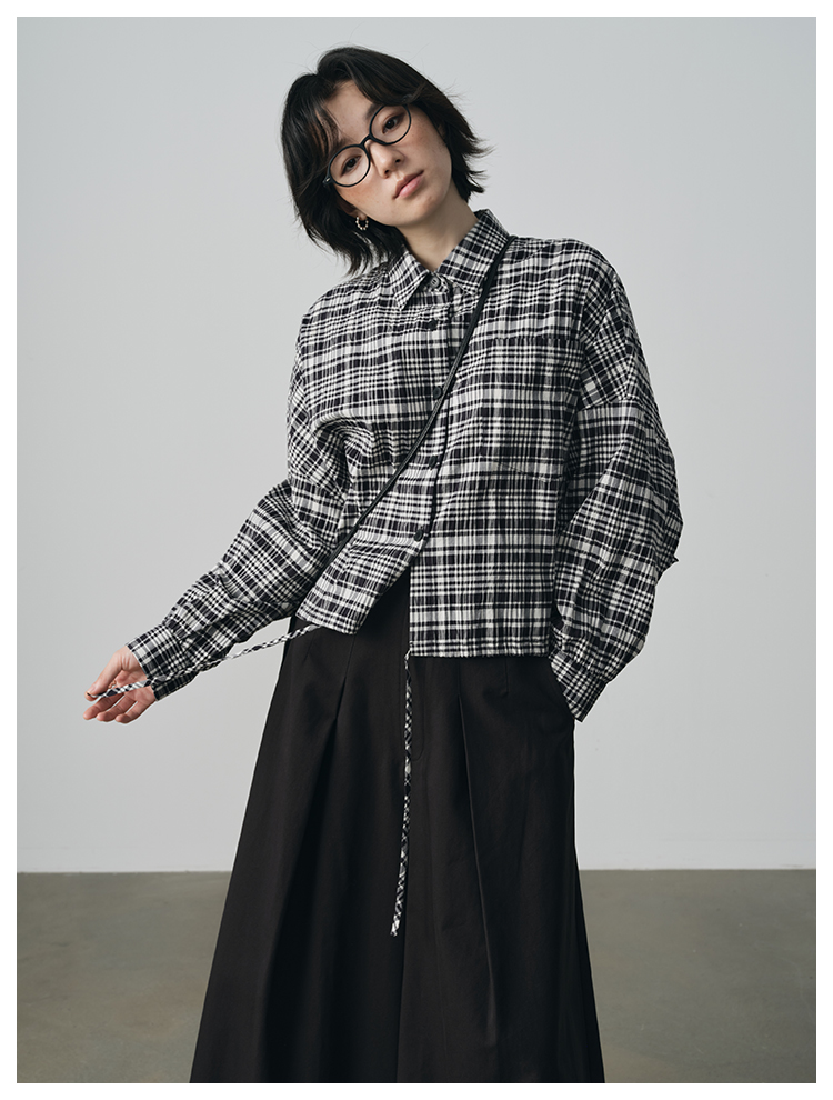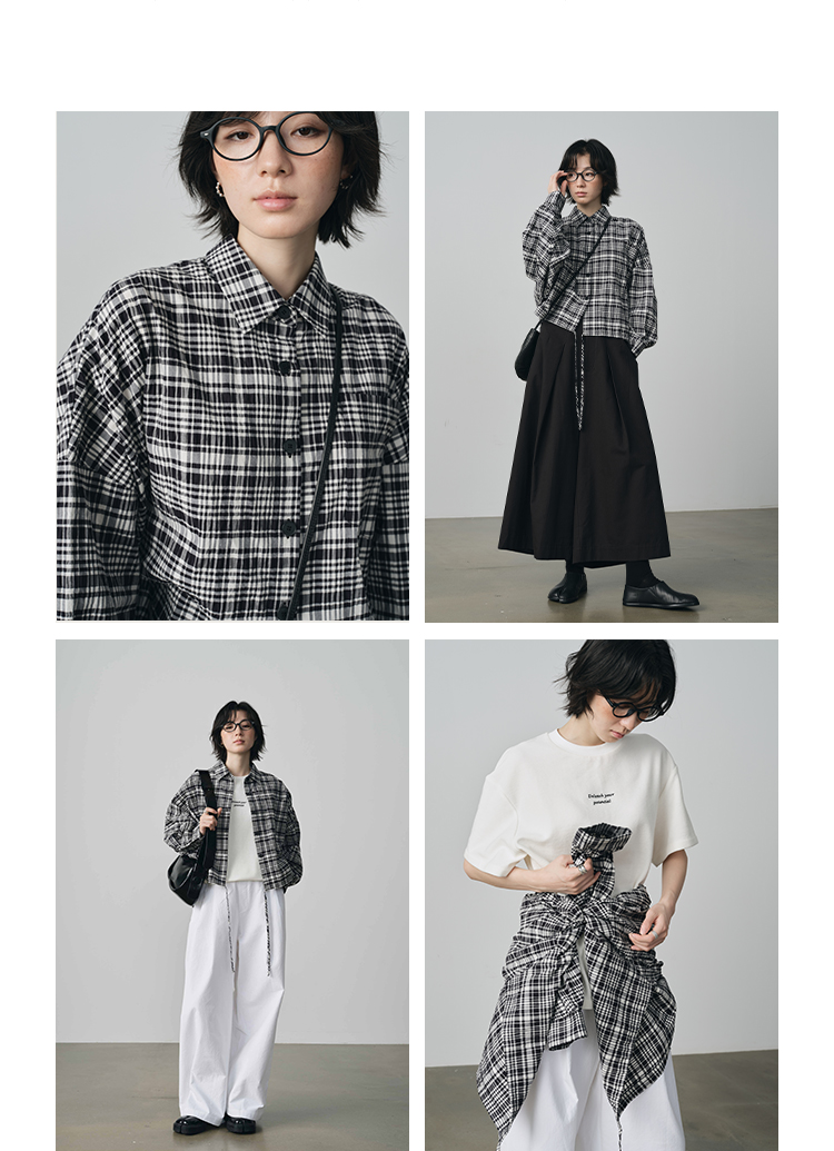 UMILAB【知秋】100%棉盐缩肌理感立体抗皱宽松短款格纹外套H1213H