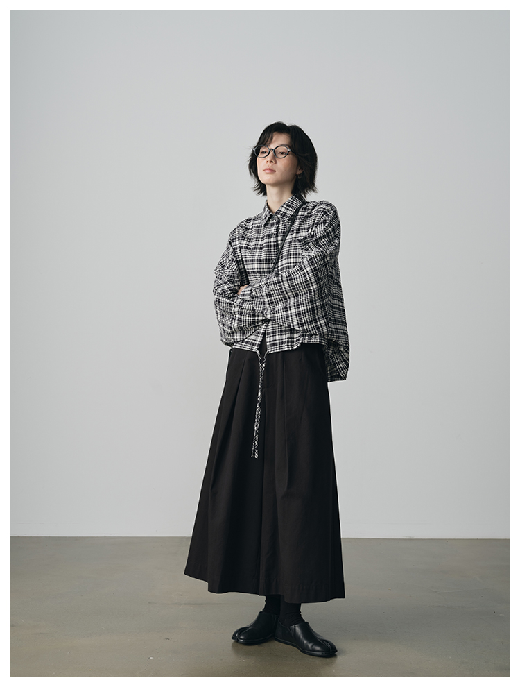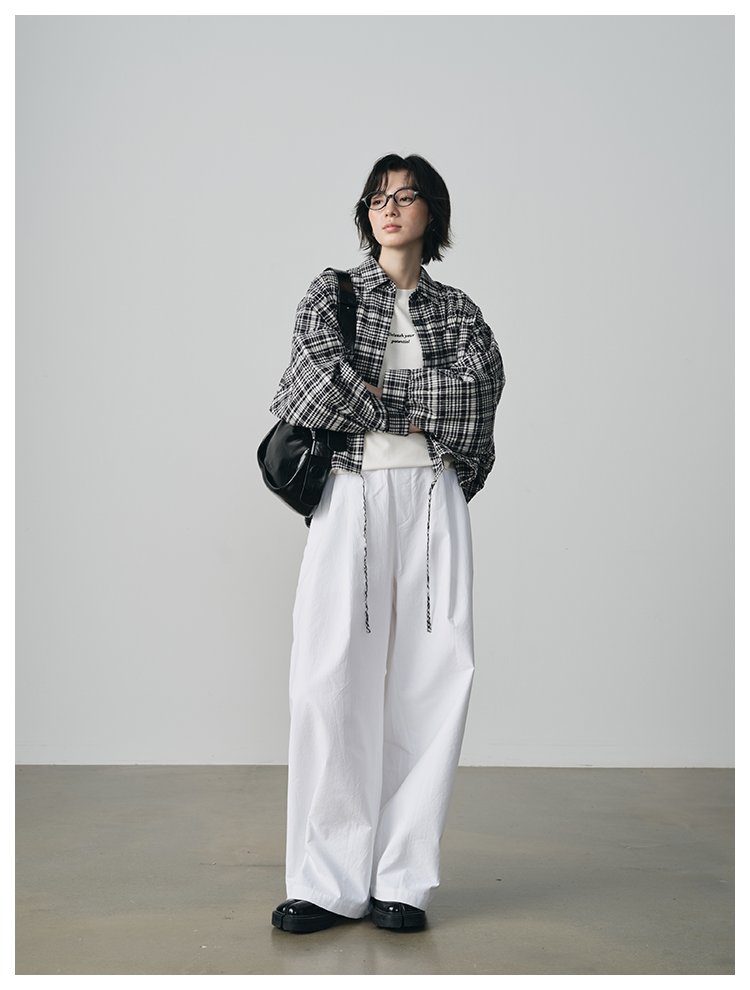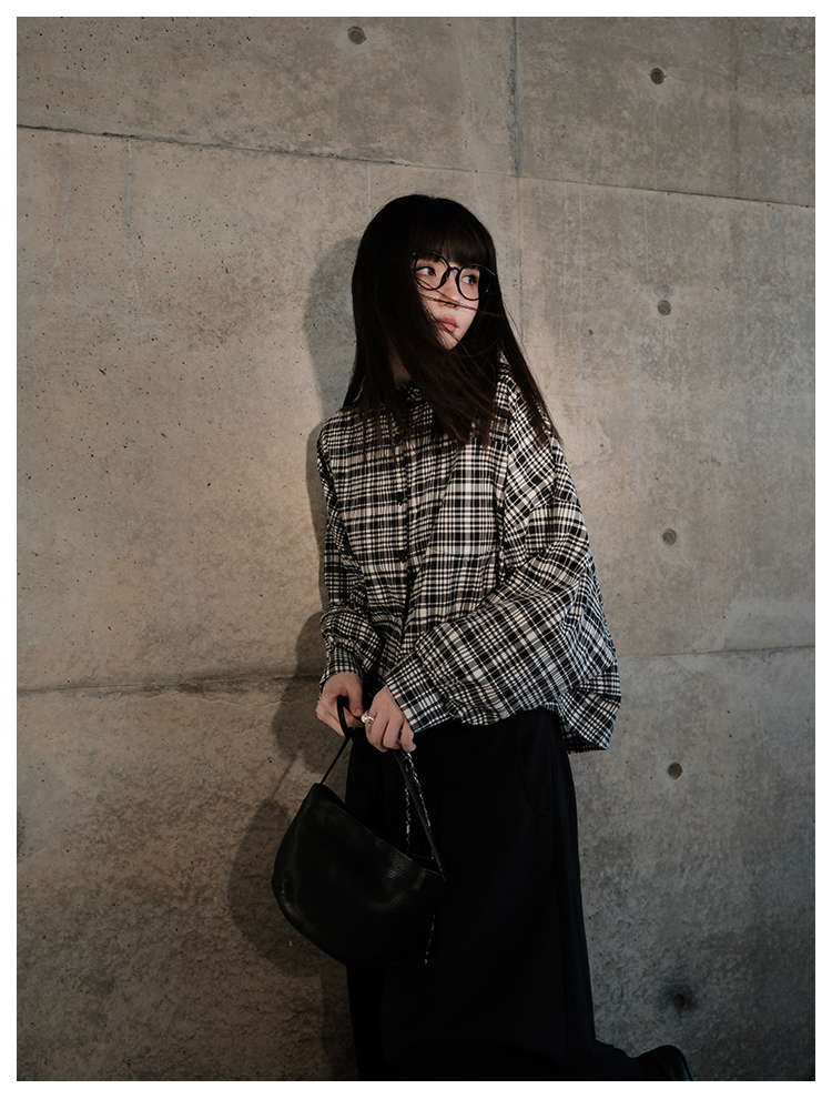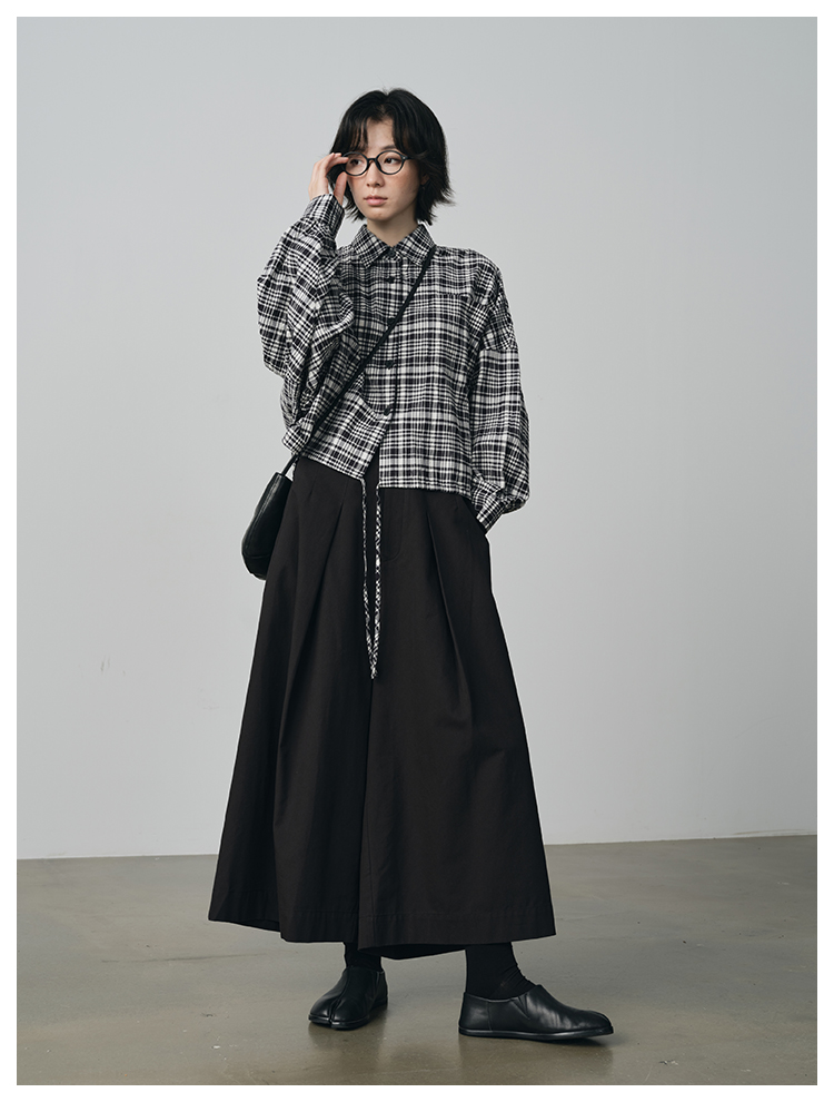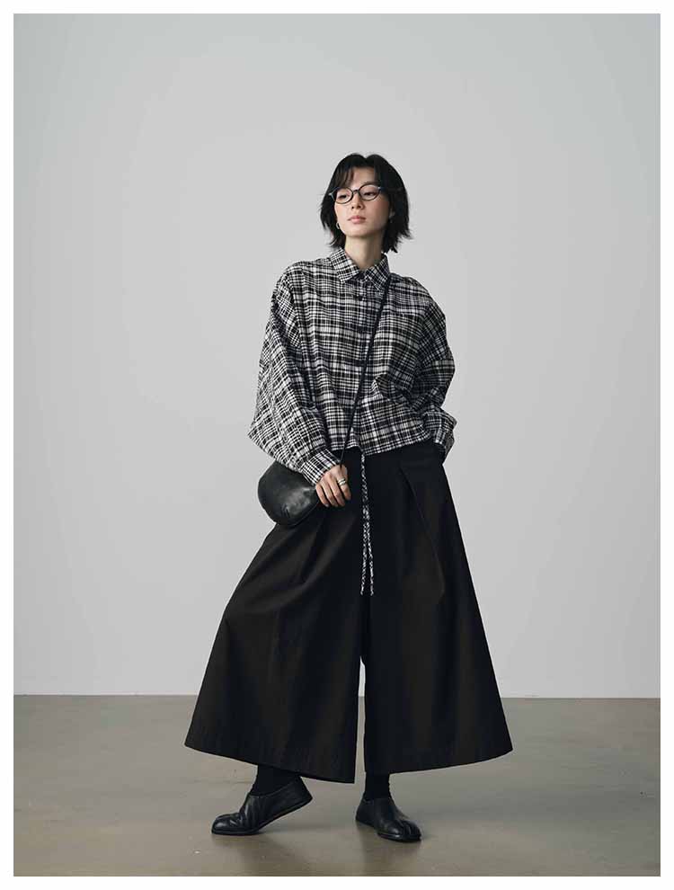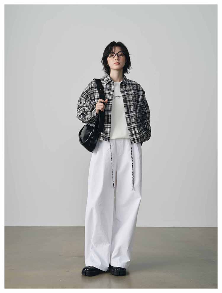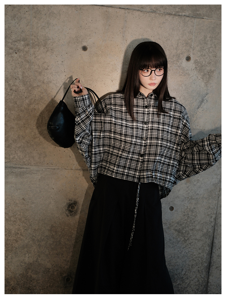 UMILAB【知秋】100%棉盐缩肌理感立体抗皱宽松短款格纹外套H1213H