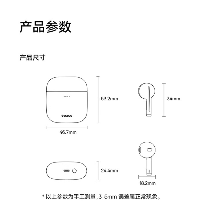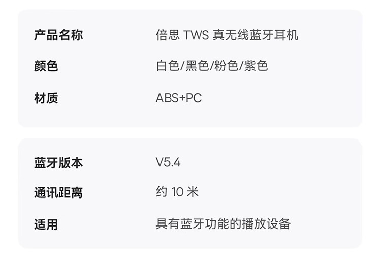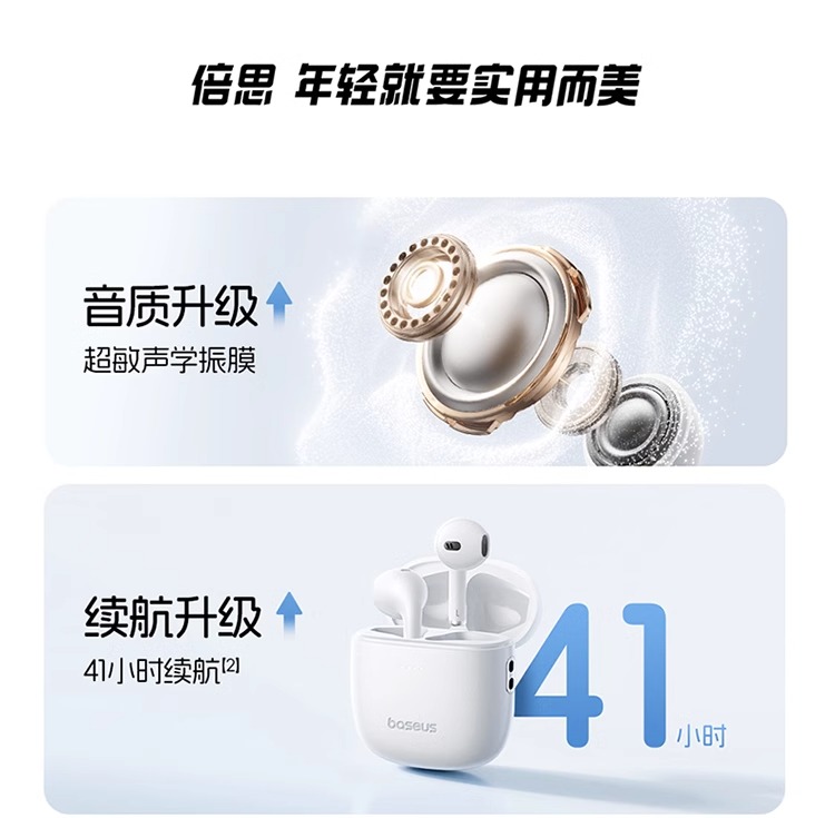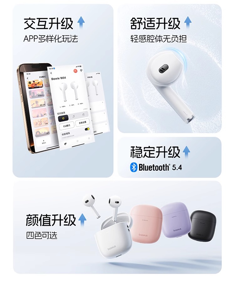 倍思 Bowie系列 W04 2025真无线蓝牙耳机 半入耳运动适用苹果华为小米