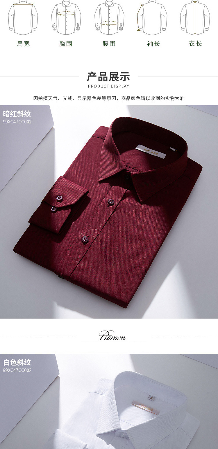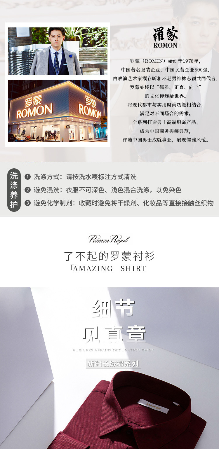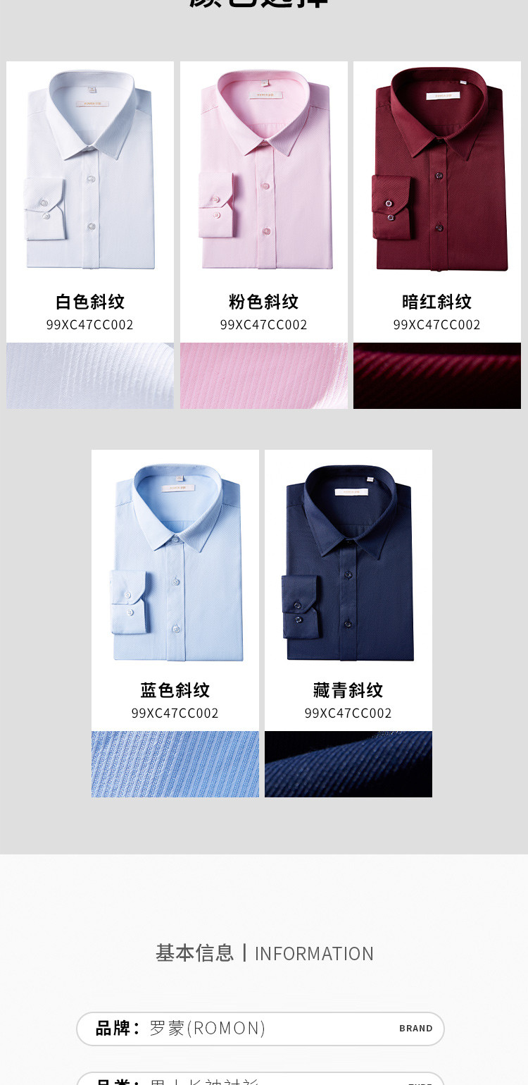【专柜定制款】罗蒙春夏男装长袖衬衫男士正装商务通勤百搭棉质衬衣男