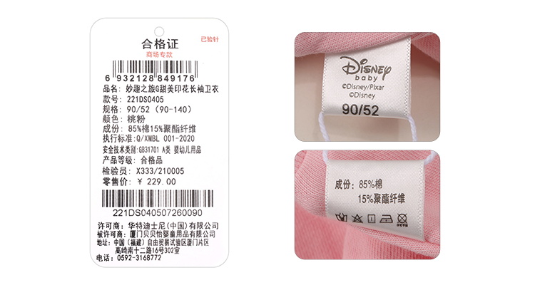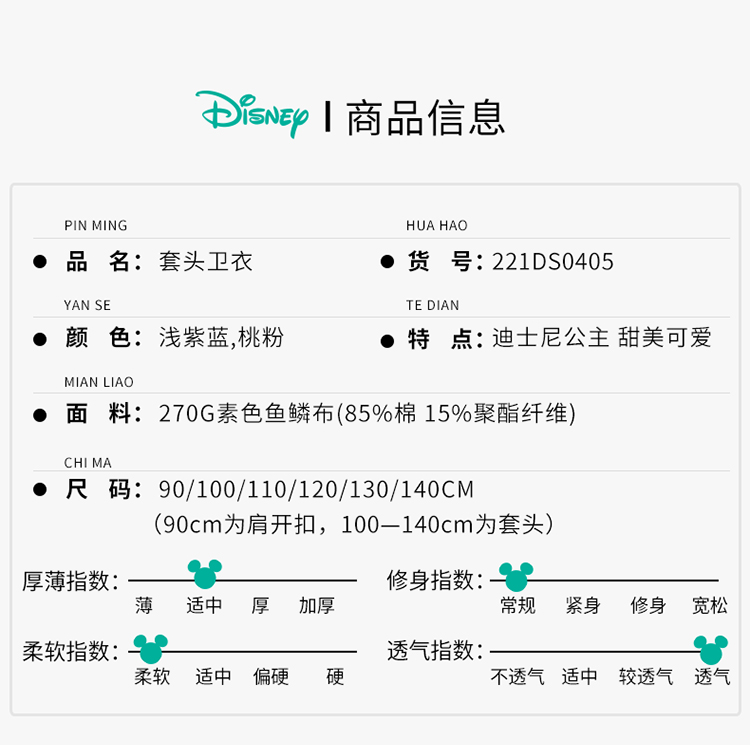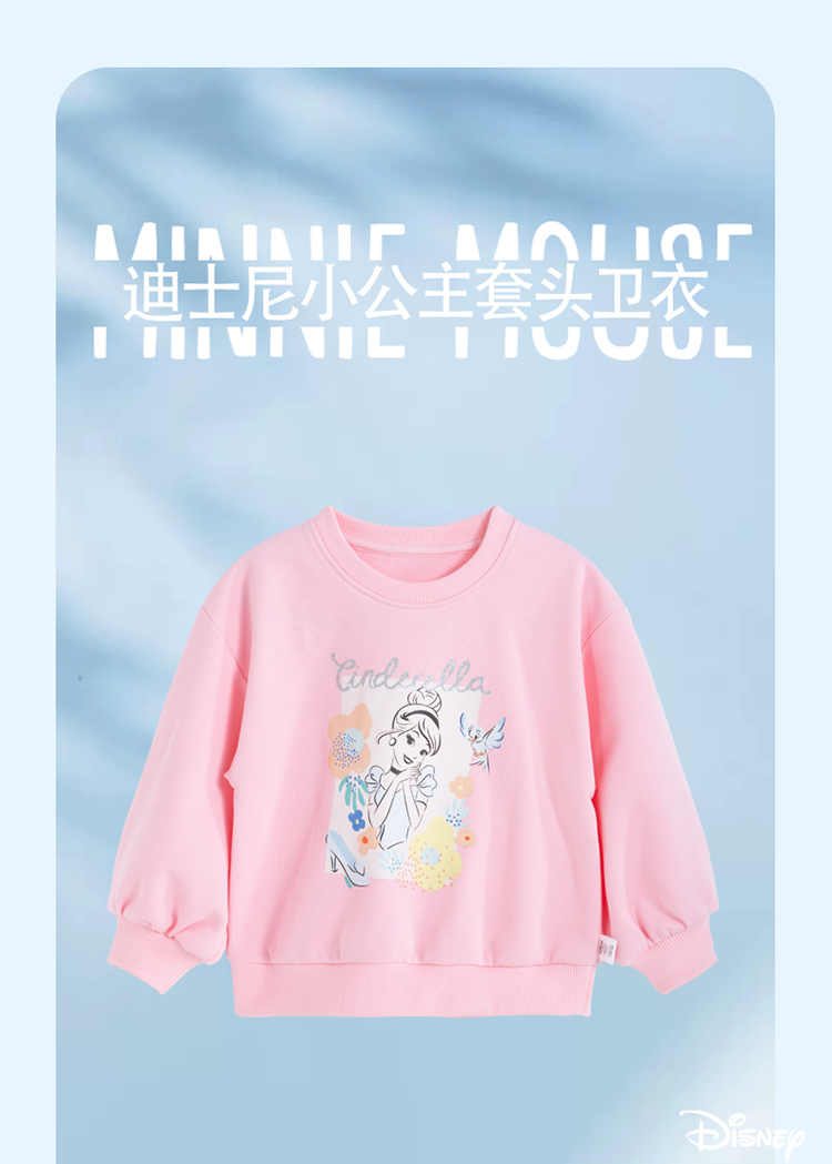 【商场同款】迪士尼童装女童套头卫衣春秋款中小童小公主卡通印花女孩上衣221DS0405