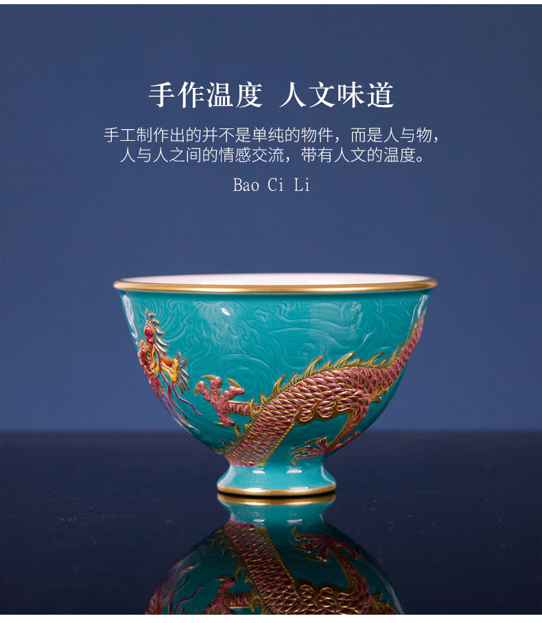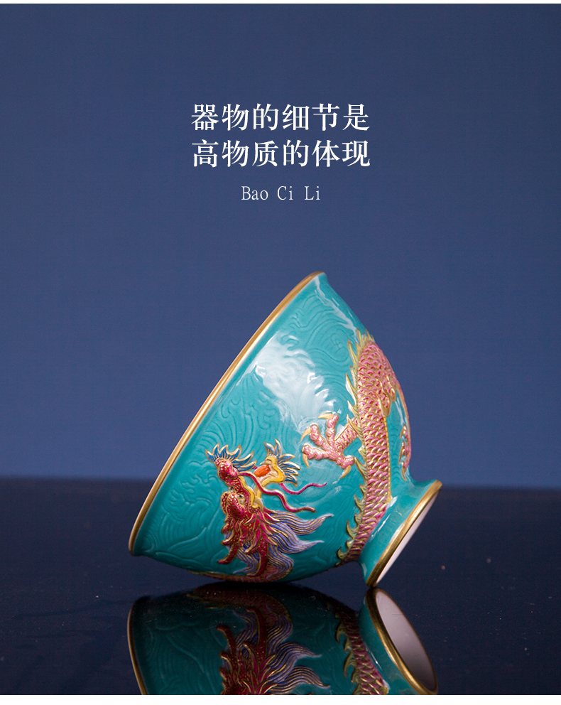 湖水绿雕刻描金海水龙纹杯(北京SKP店首发) 商品图4