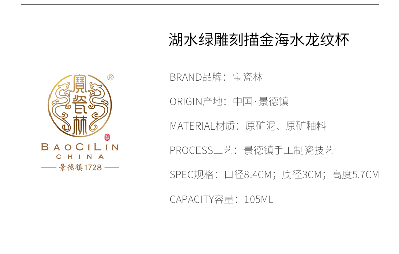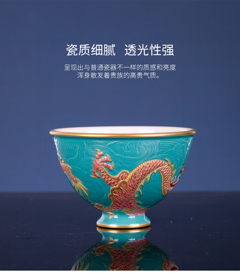 湖水绿雕刻描金海水龙纹杯(北京SKP店首发) 商品图3