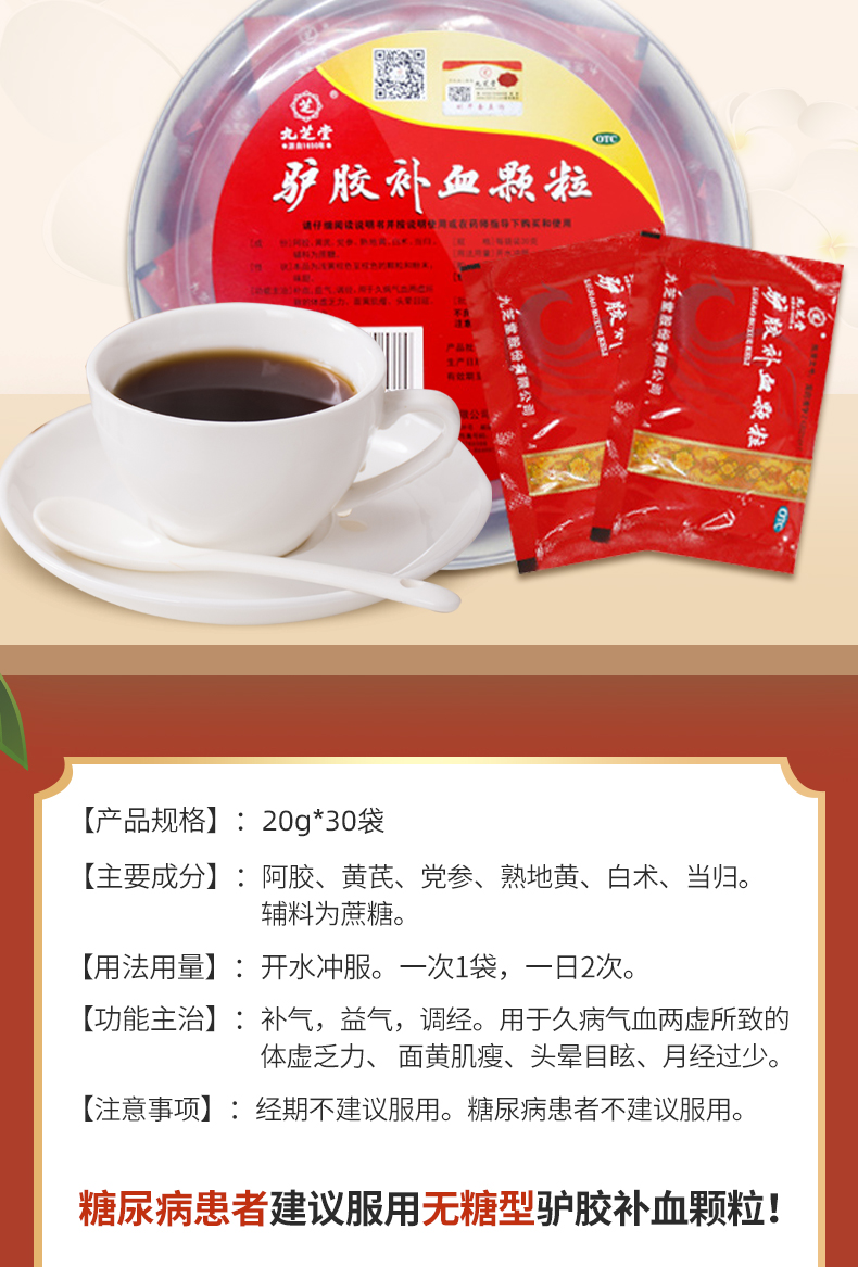 九芝堂驴胶补血颗粒30袋阿胶女人补气血双补气虚血亏调经贫血调理