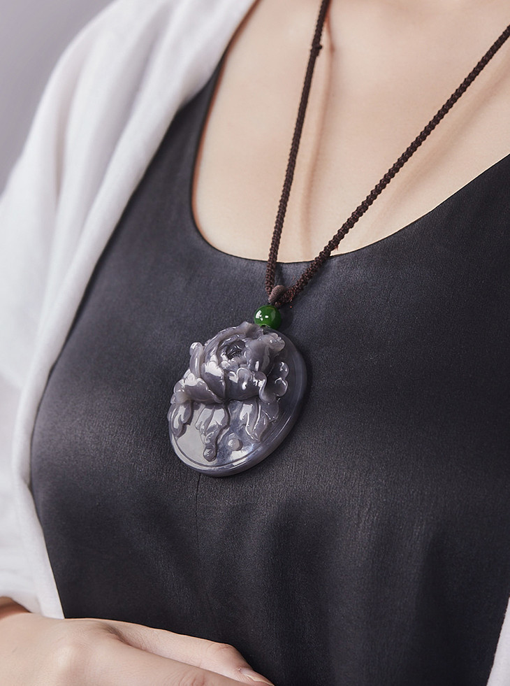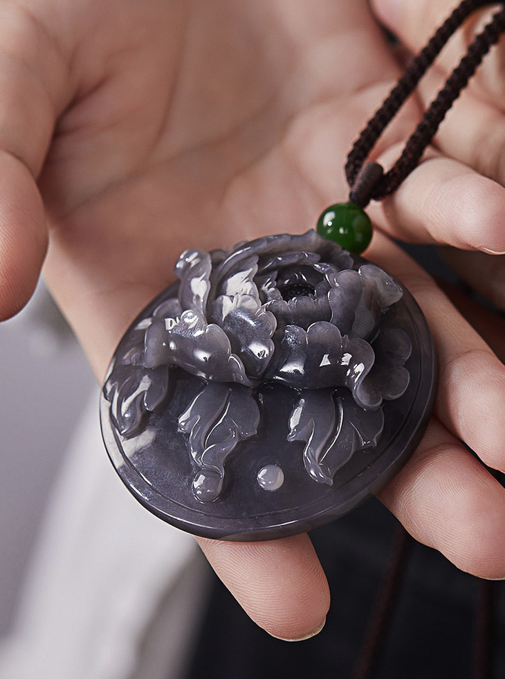 这款挂件选的是深烟紫料,随光线而变化,浅淡时似青烟,浓郁时若云雾。