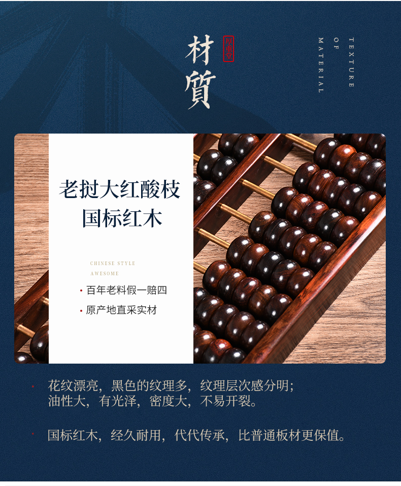 大红酸枝老式送礼算盘红木摆件19档长款