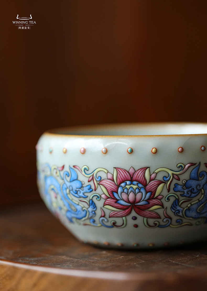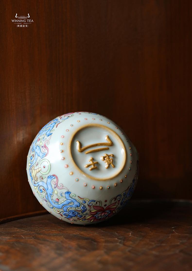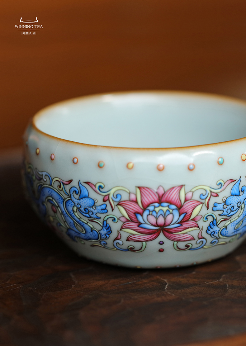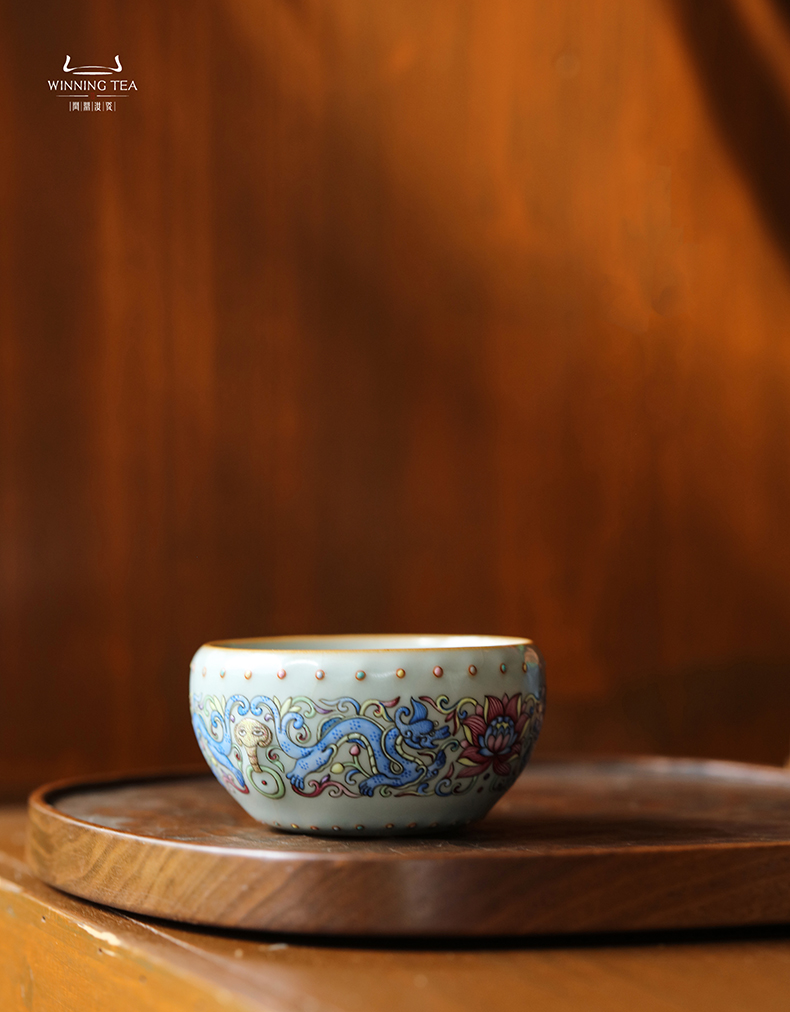 问鼎汝瓷天青壬寅战鼓杯(珐琅彩富贵螭龙)