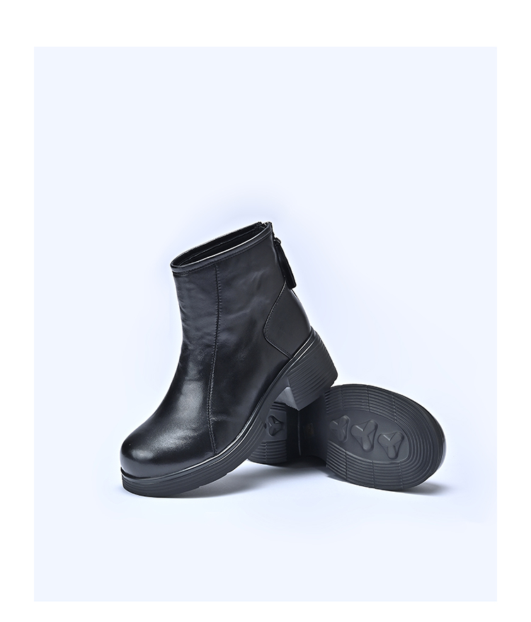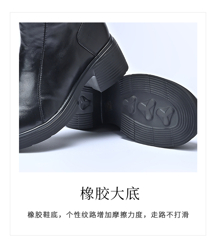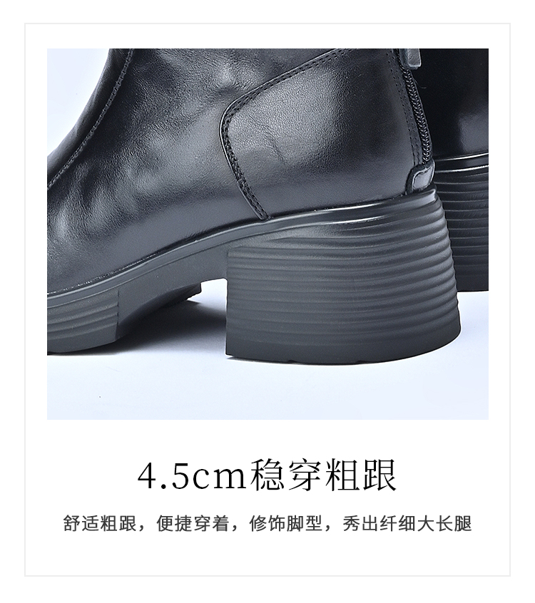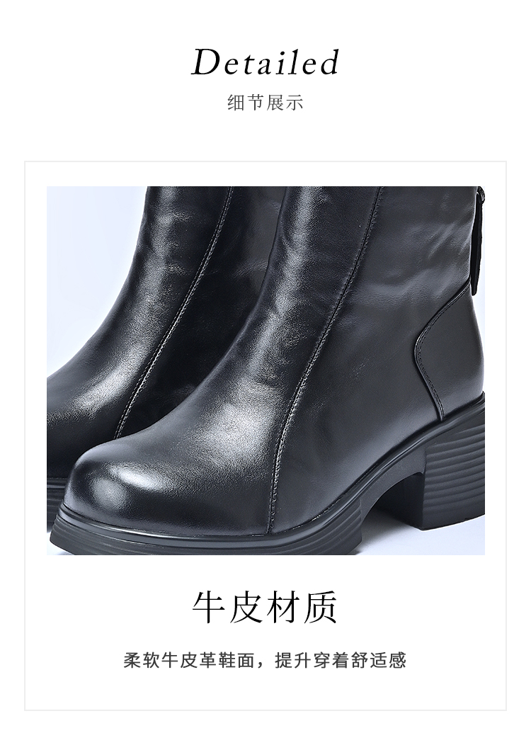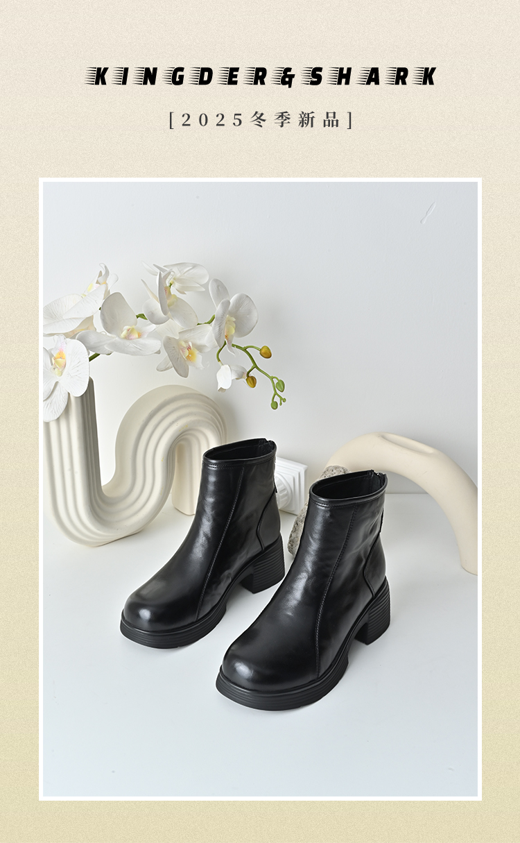 经典鲨2025年冬专柜新品牛皮革加绒加厚圆头中粗跟马丁靴女KW333-558121