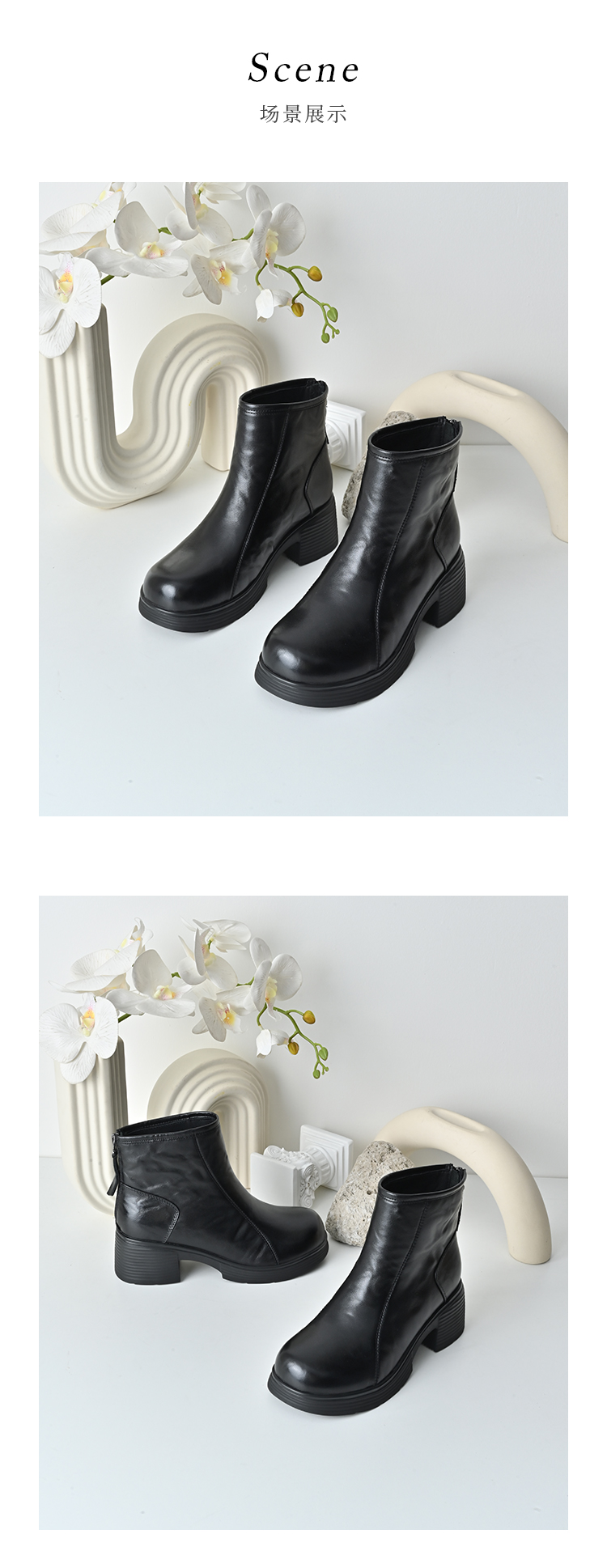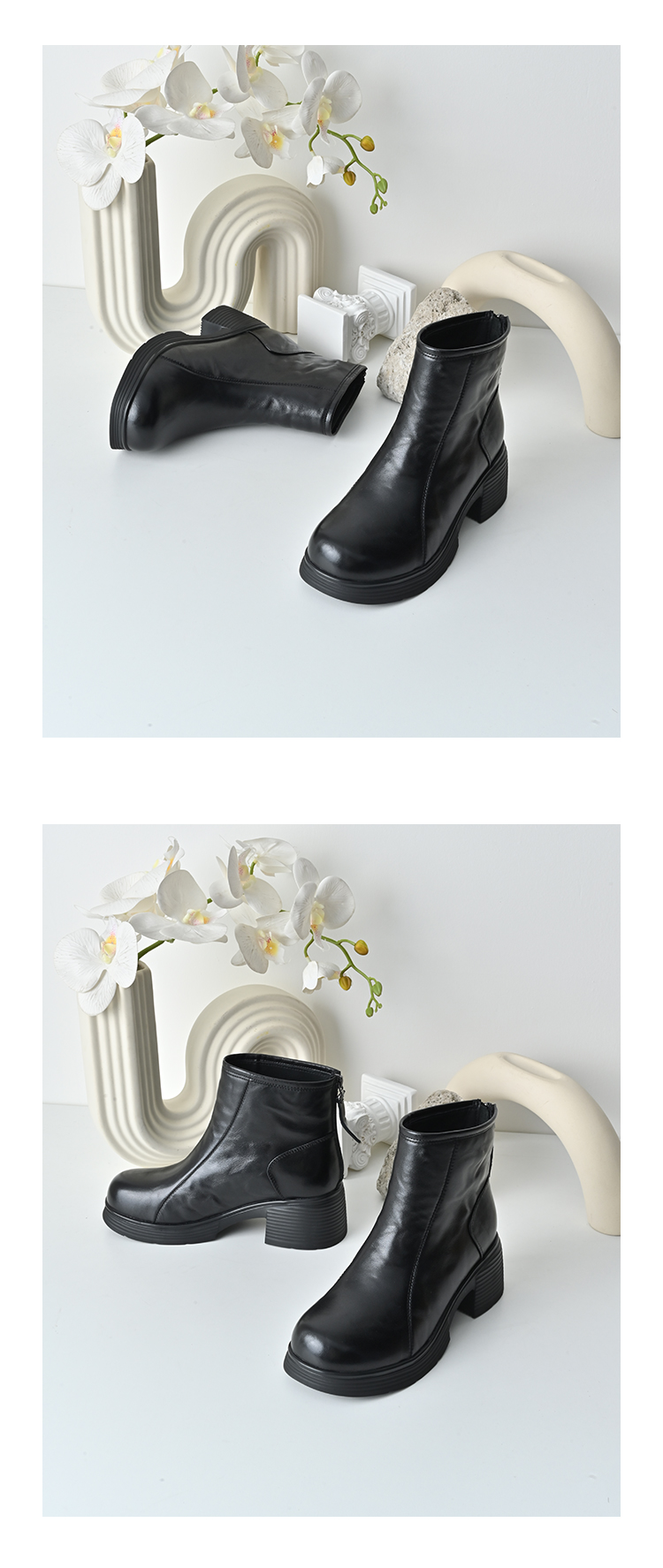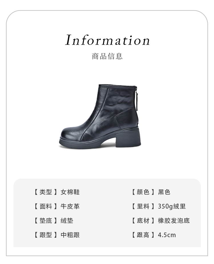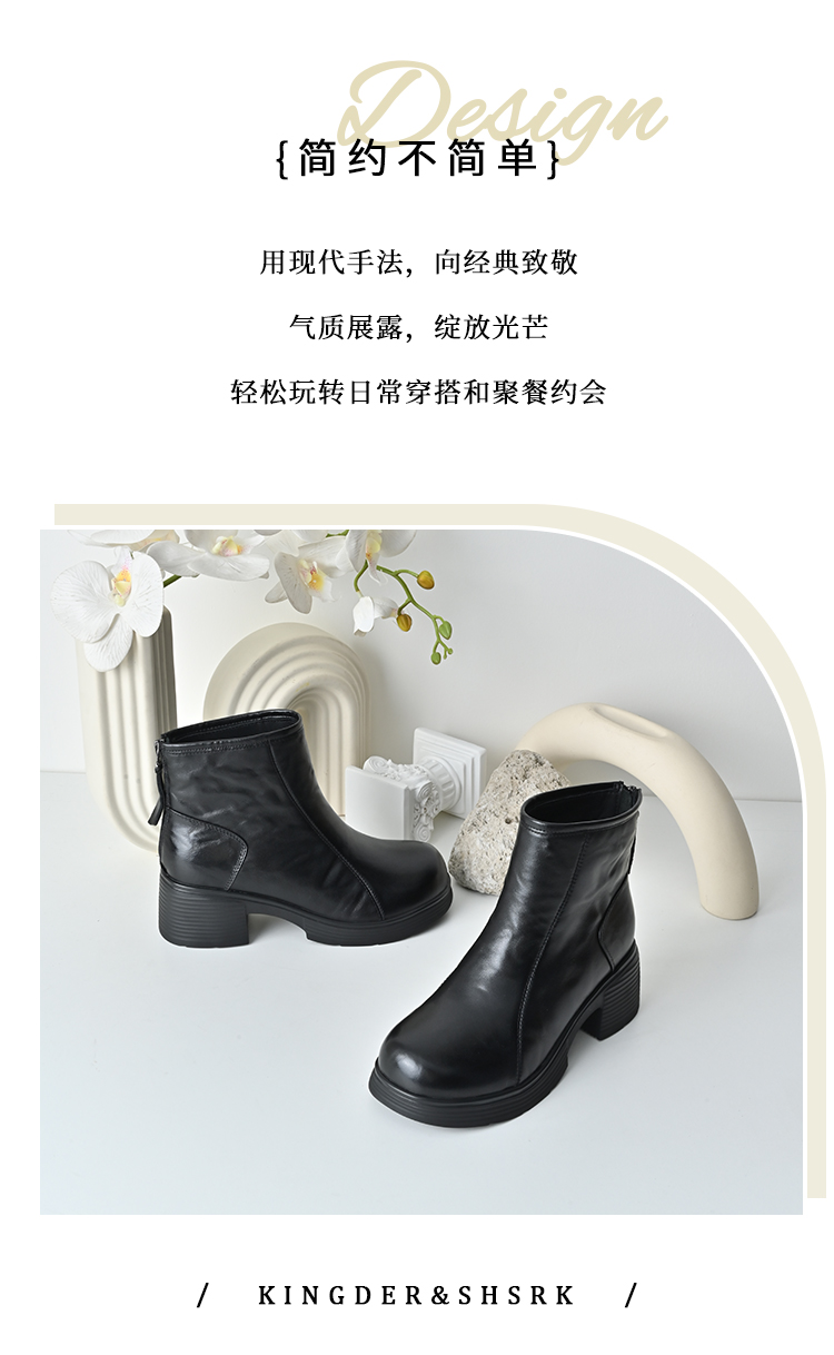 经典鲨2025年冬专柜新品牛皮革加绒加厚圆头中粗跟马丁靴女KW333-558121