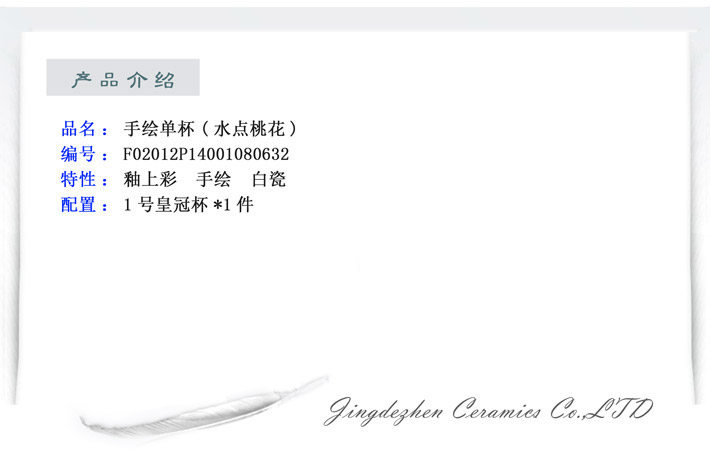 景德镇 陶瓷 国瓷红叶 水点桃花单杯